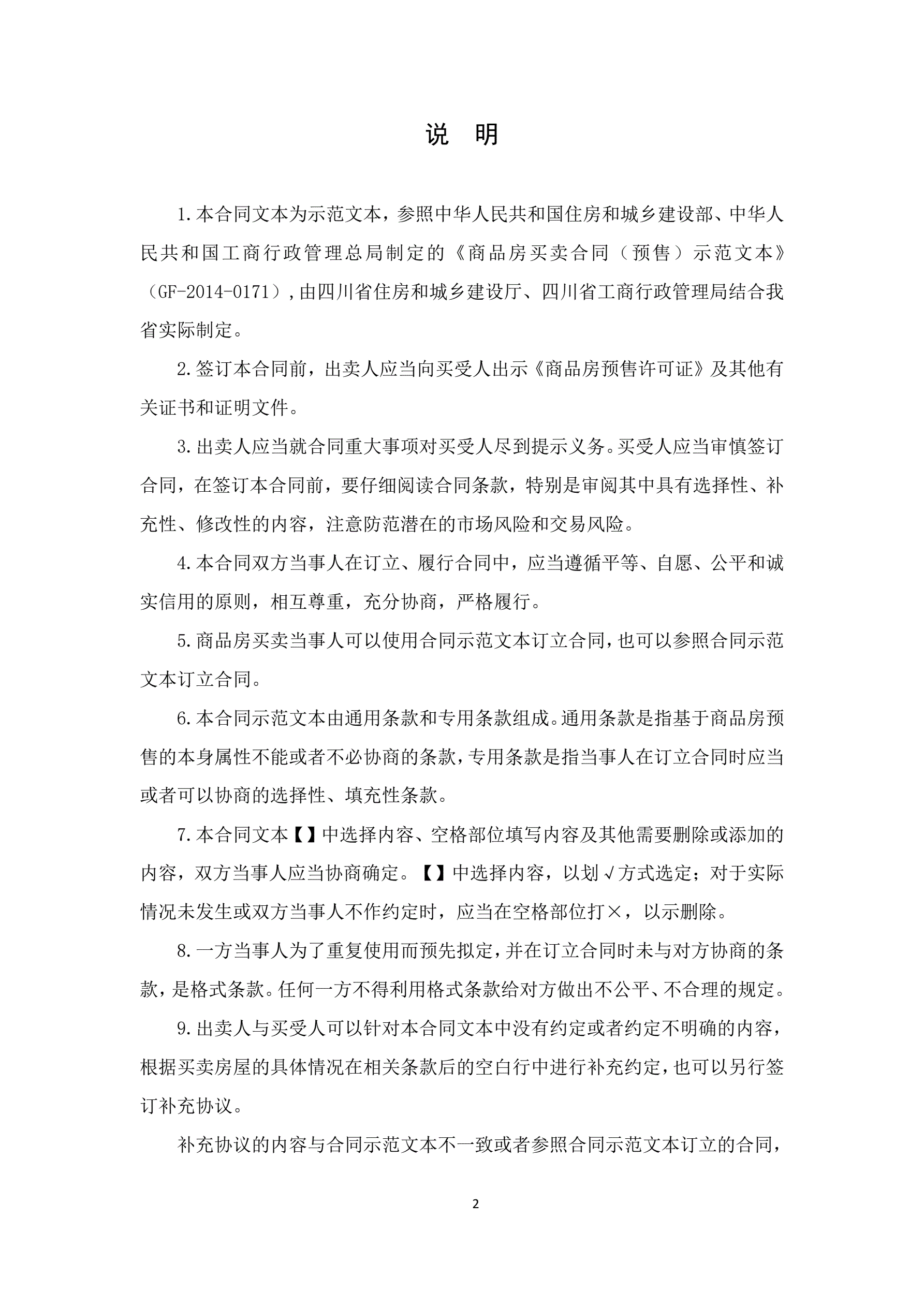 >四川省商品房买卖合同(预售)示范文本(CH-2015-01)