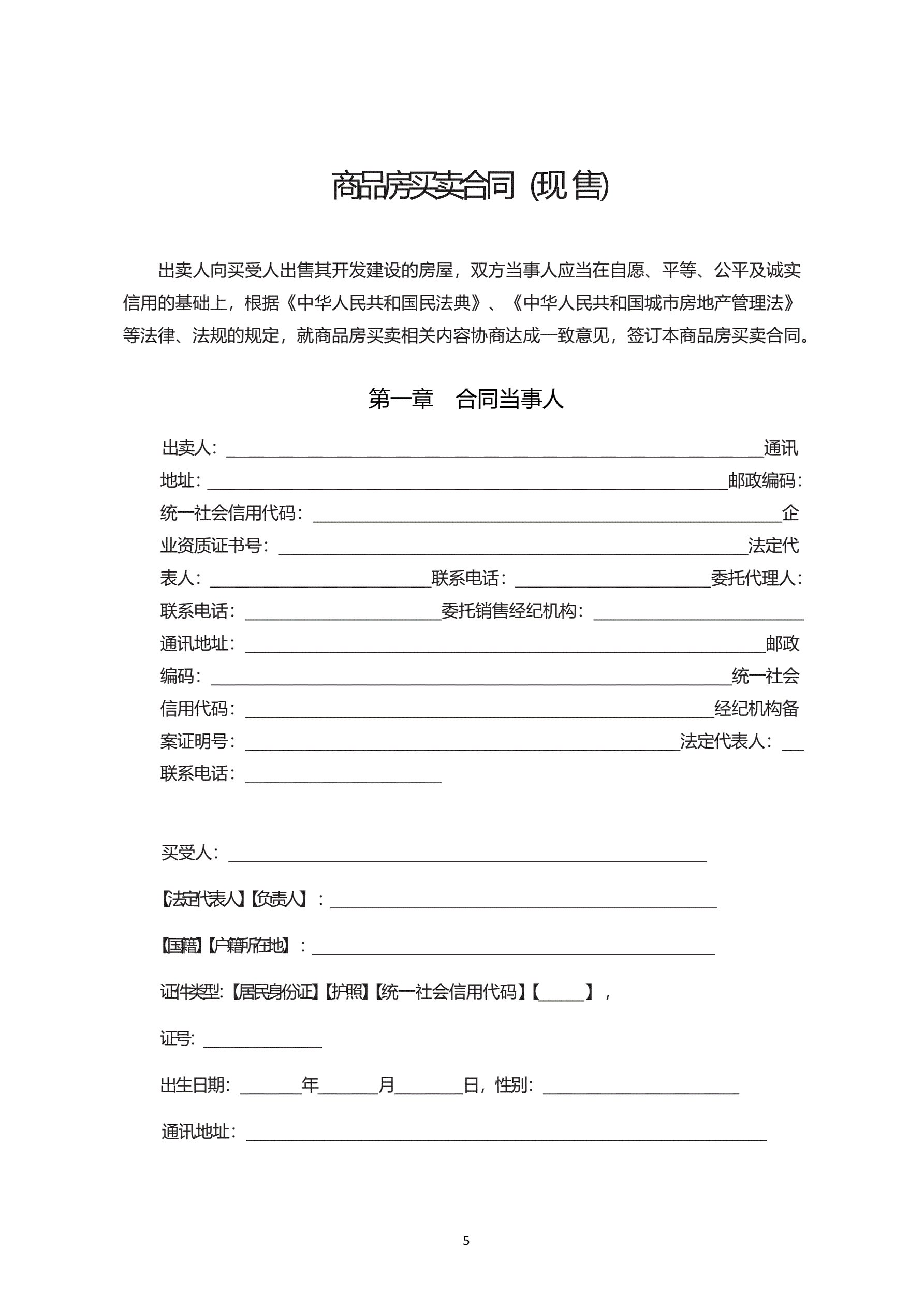 内蒙古自治区商品房买卖合同(现售)示范文本