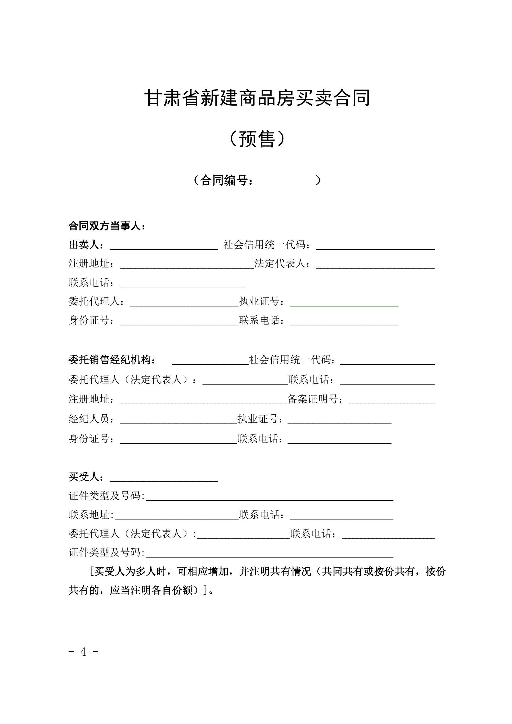 甘肃省商品房买卖合同(预售)示范文本-修订