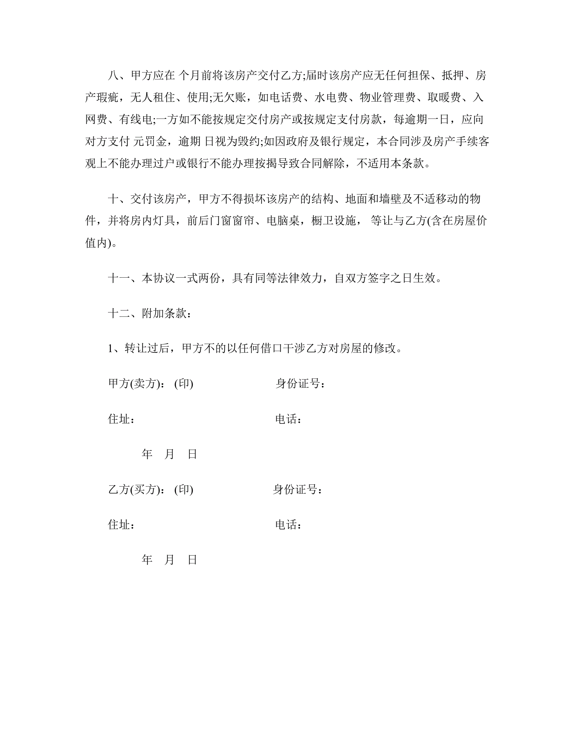 私人房屋买卖合同书