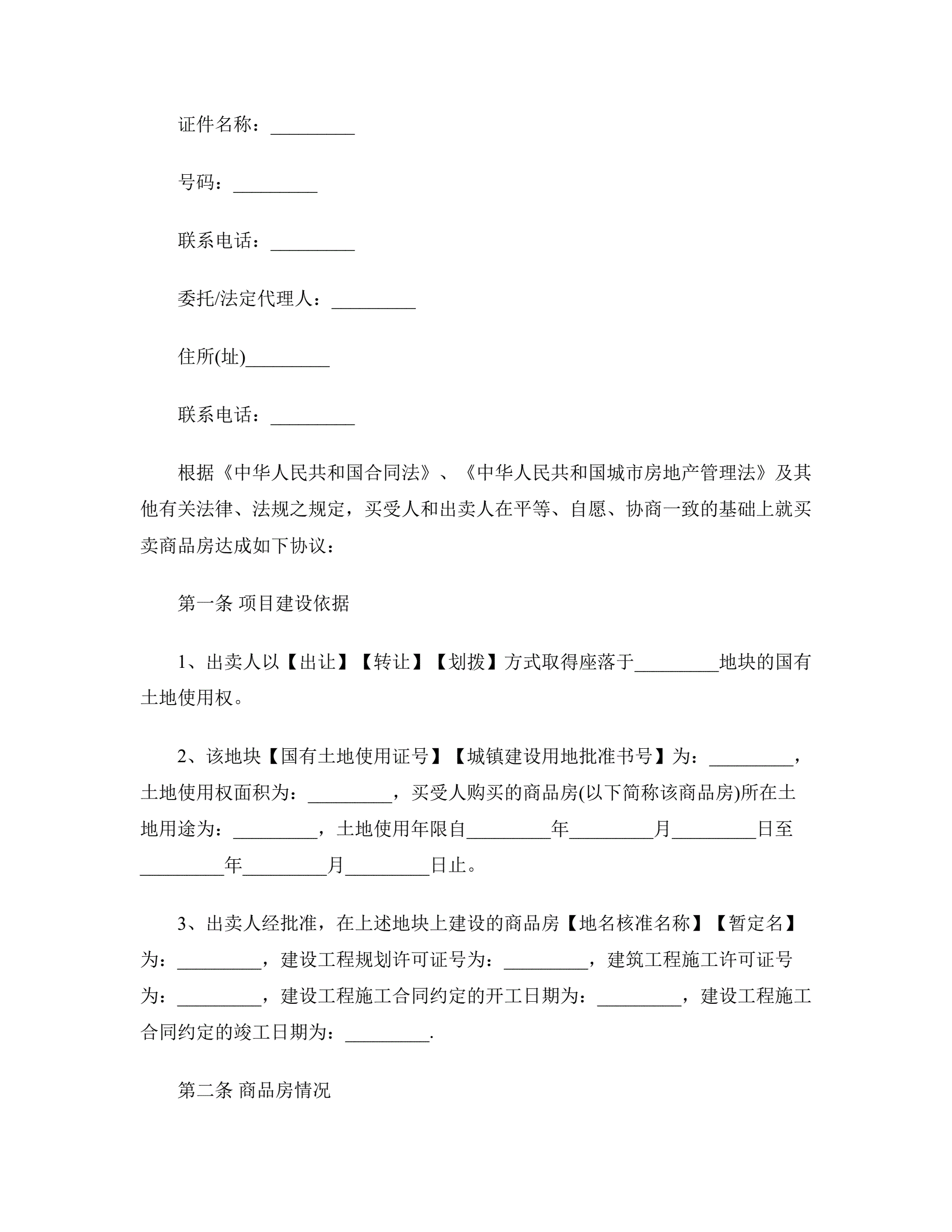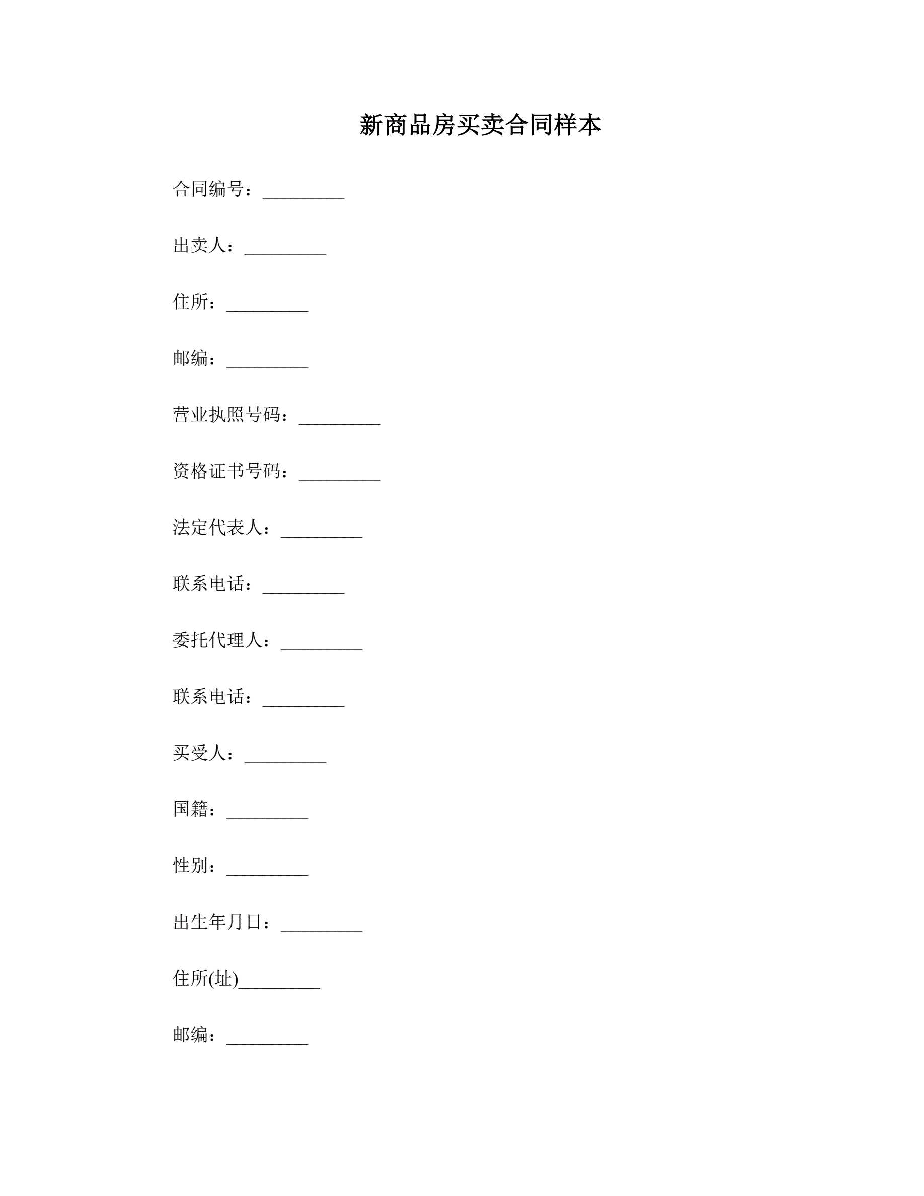 新商品房买卖合同样本