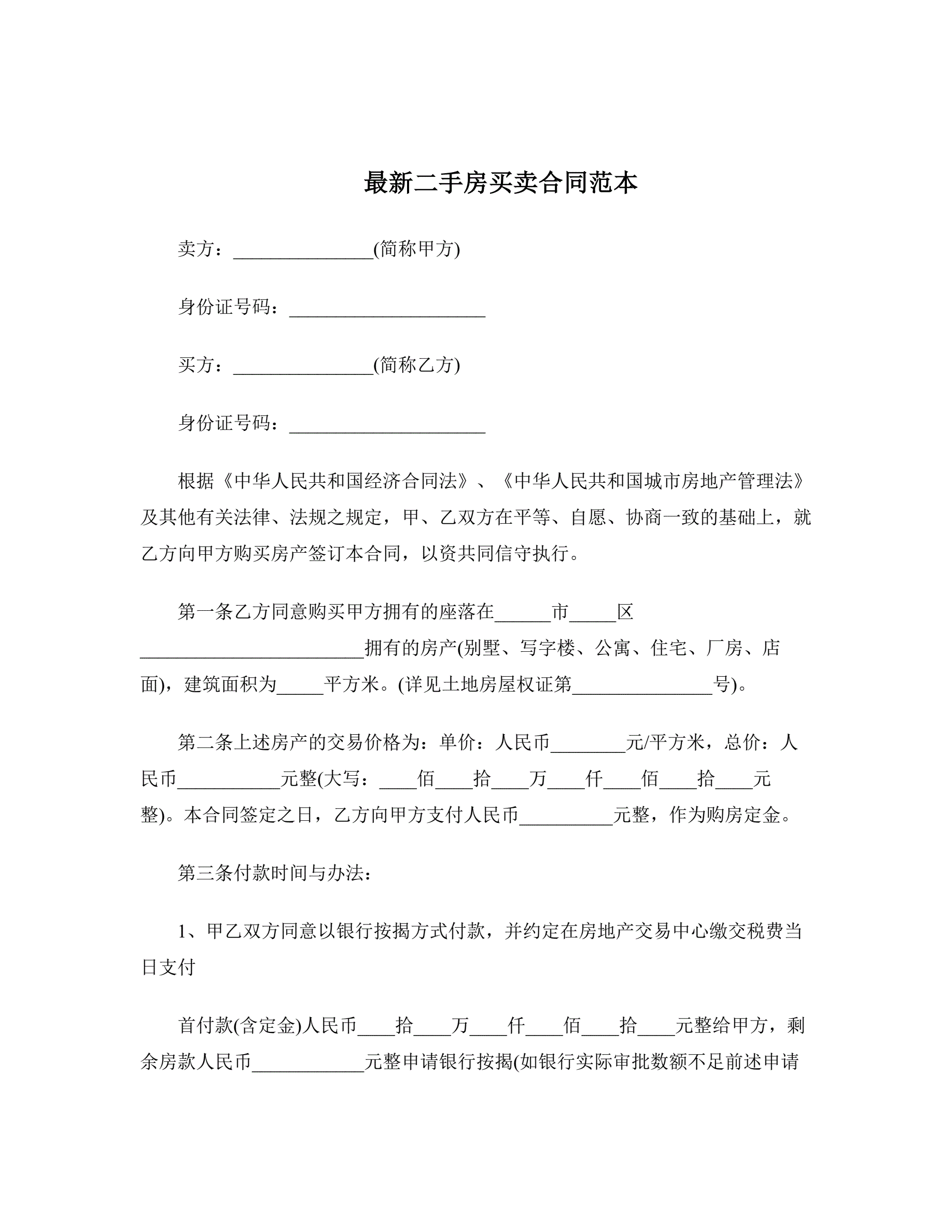 >最新二手房买卖合同