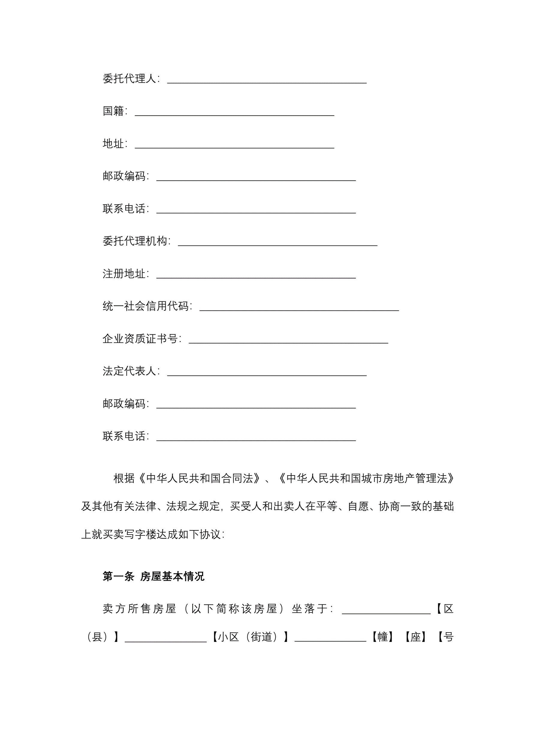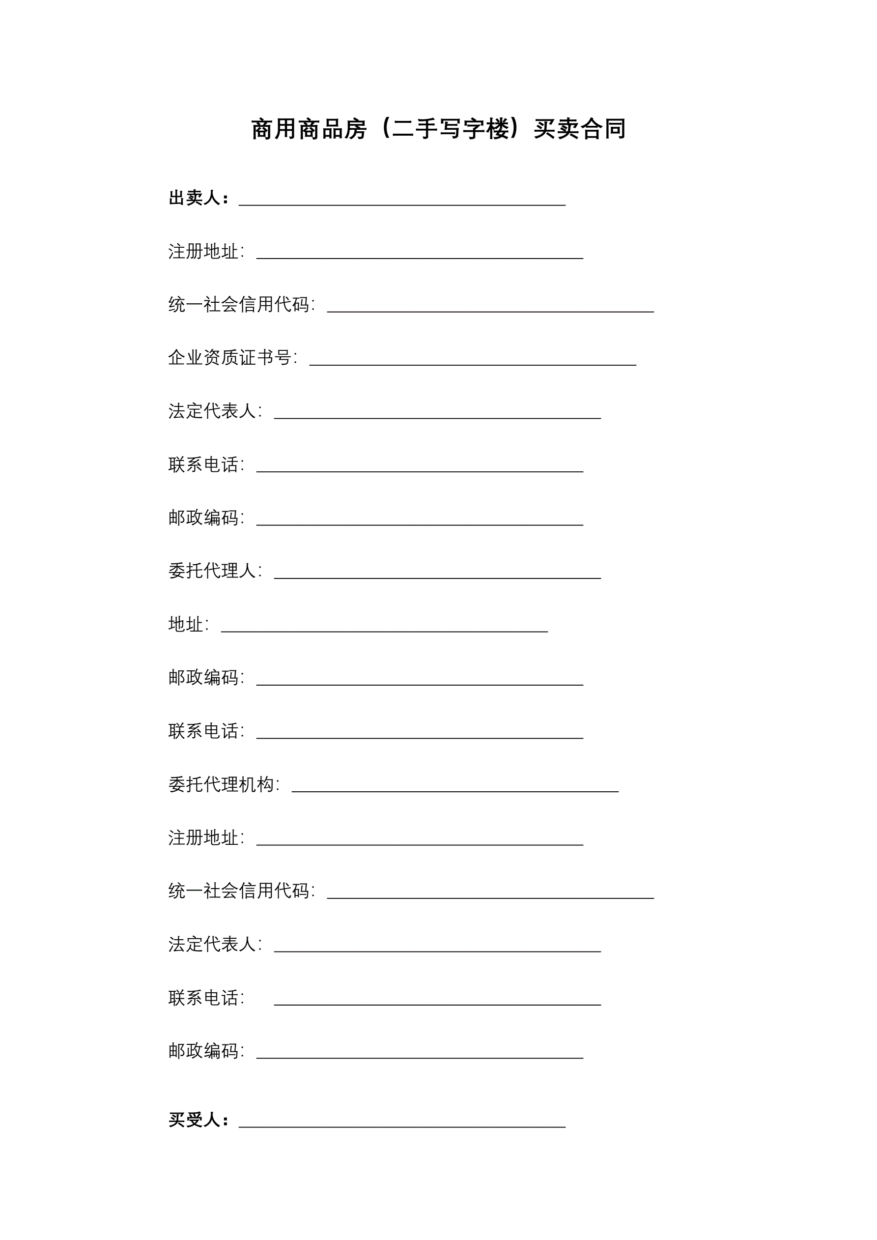 >商用商品房(二手写字楼)买卖合同
