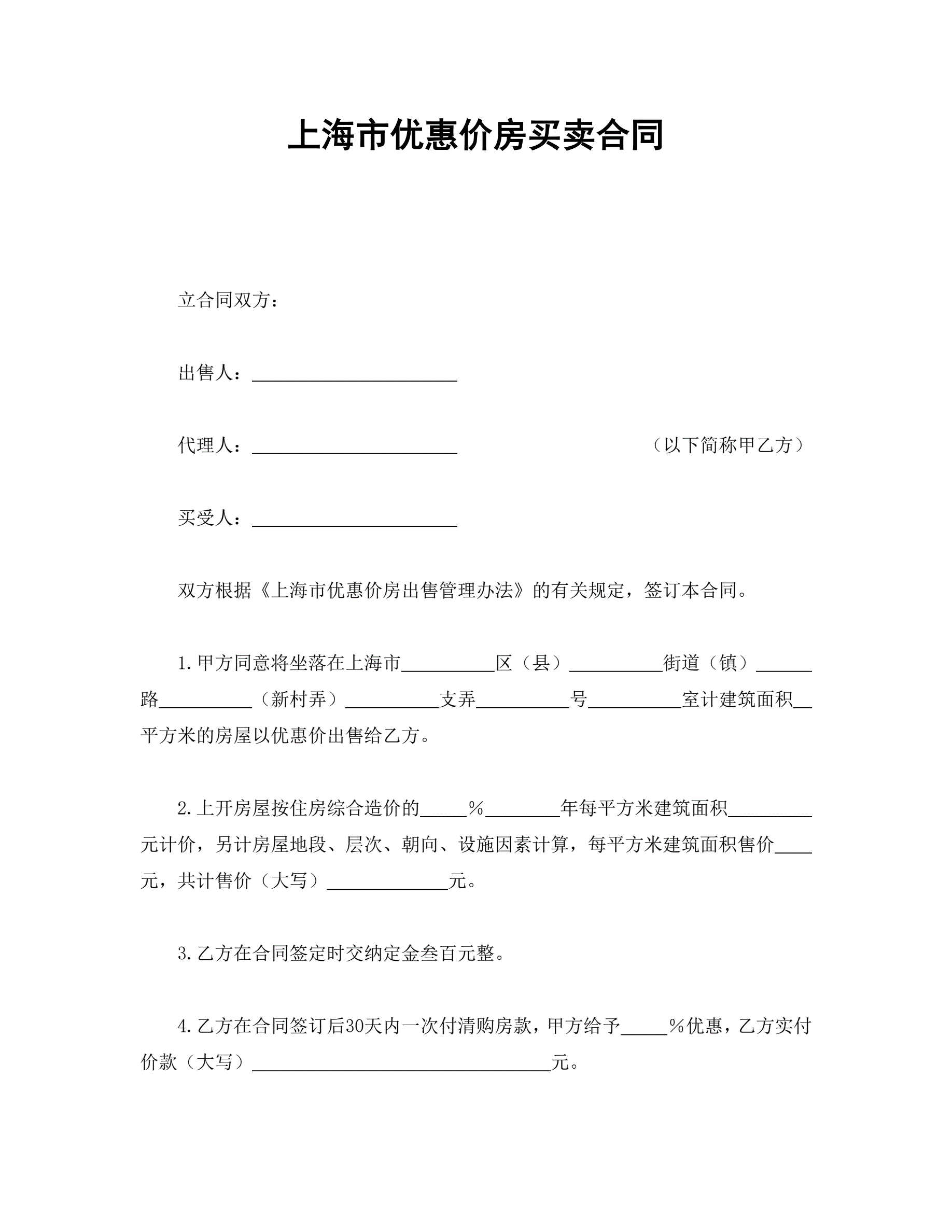 >上海市优惠价房买卖合同