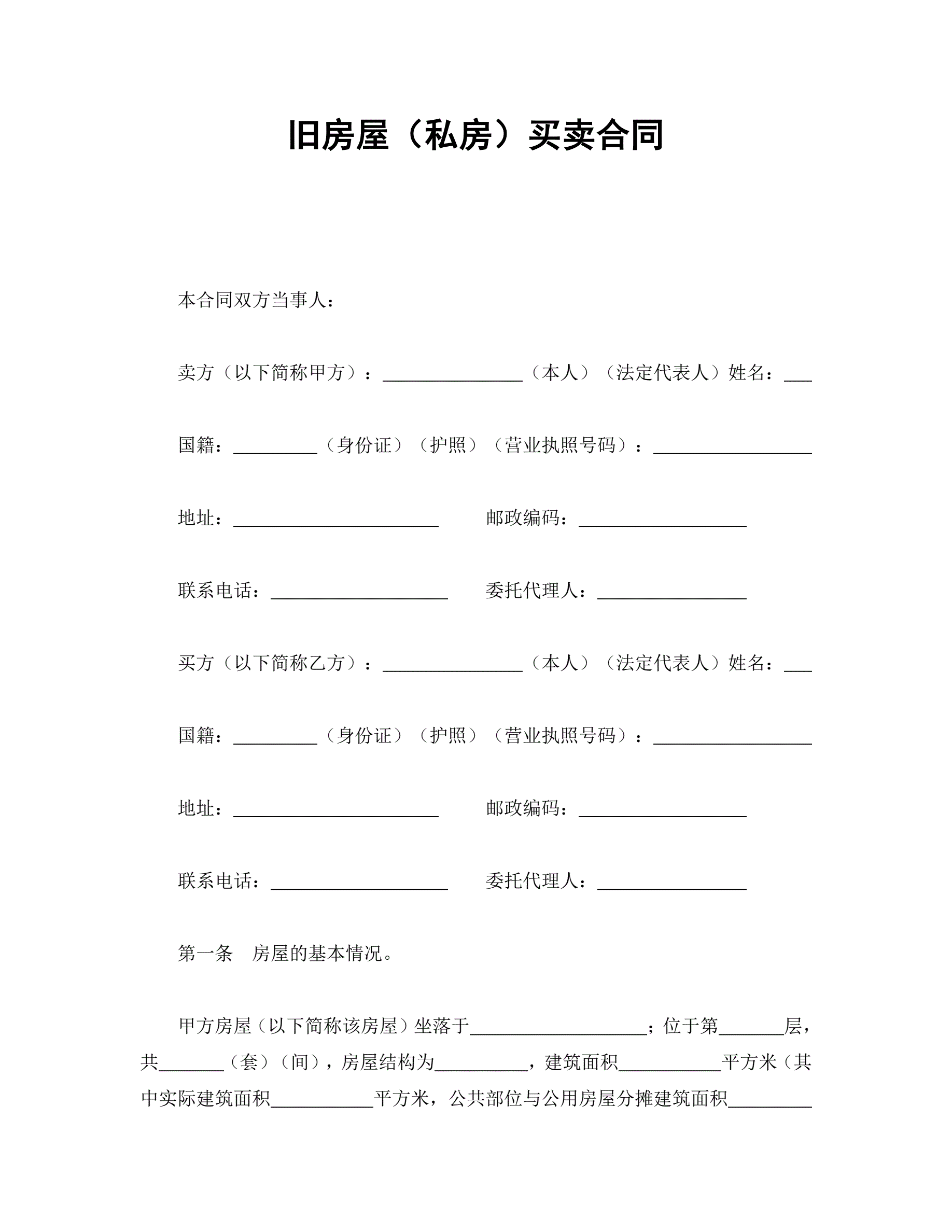 旧房屋(私房)买卖合同