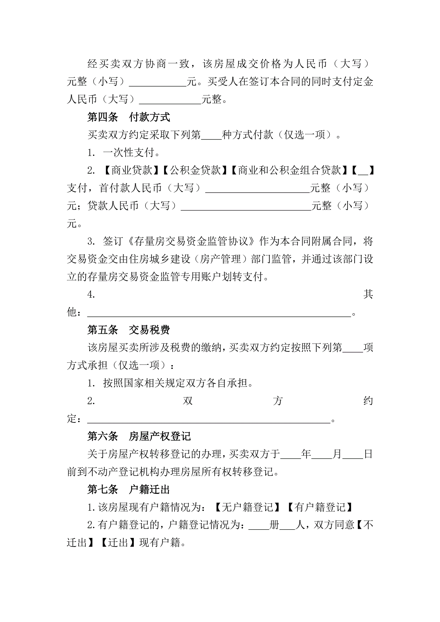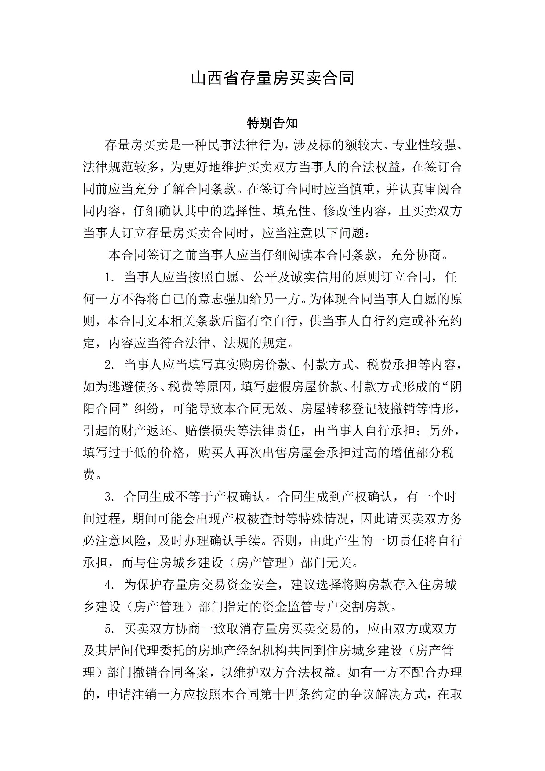 山西省存量房买卖合同示范文本的通知
