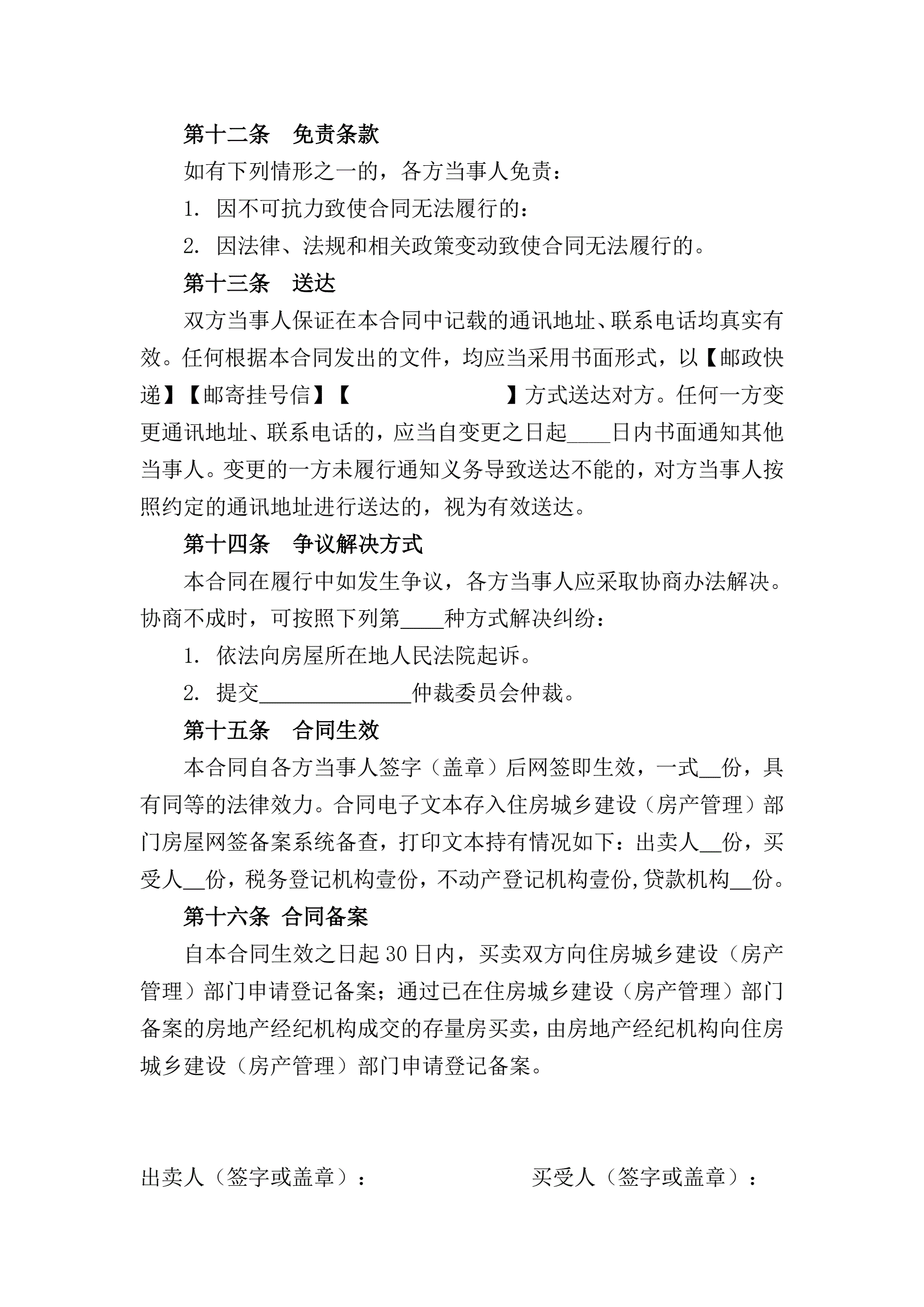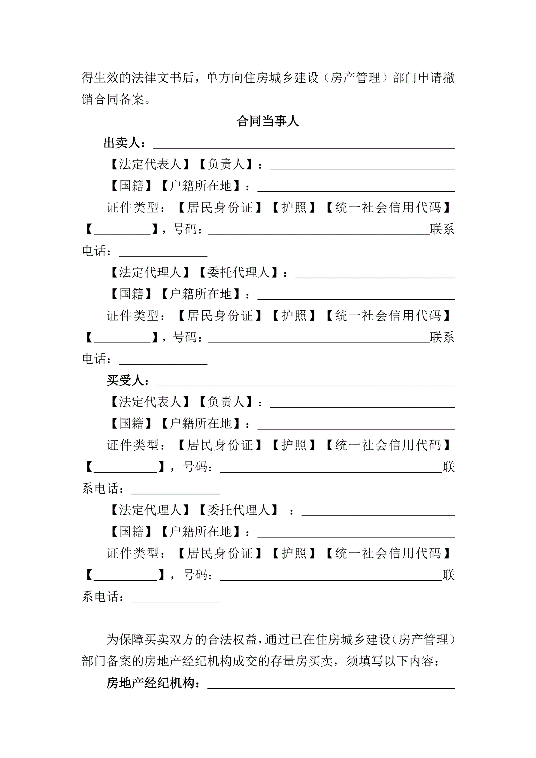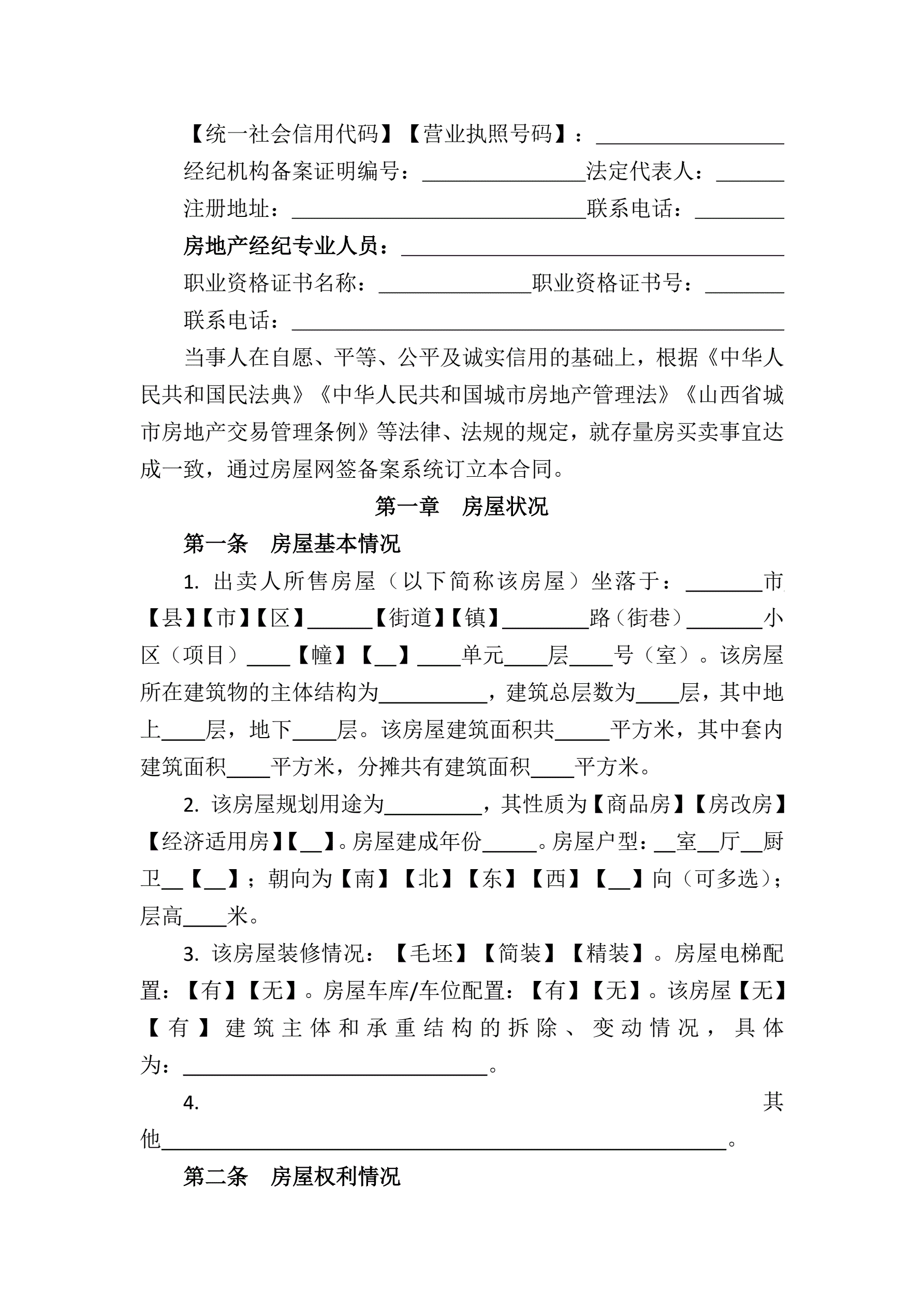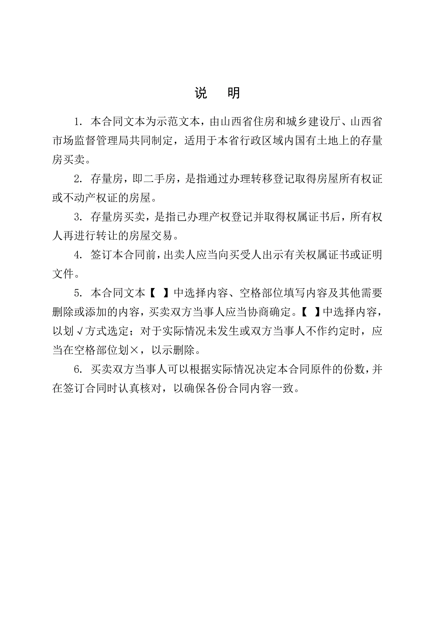 >山西省存量房买卖合同示范文本的通知