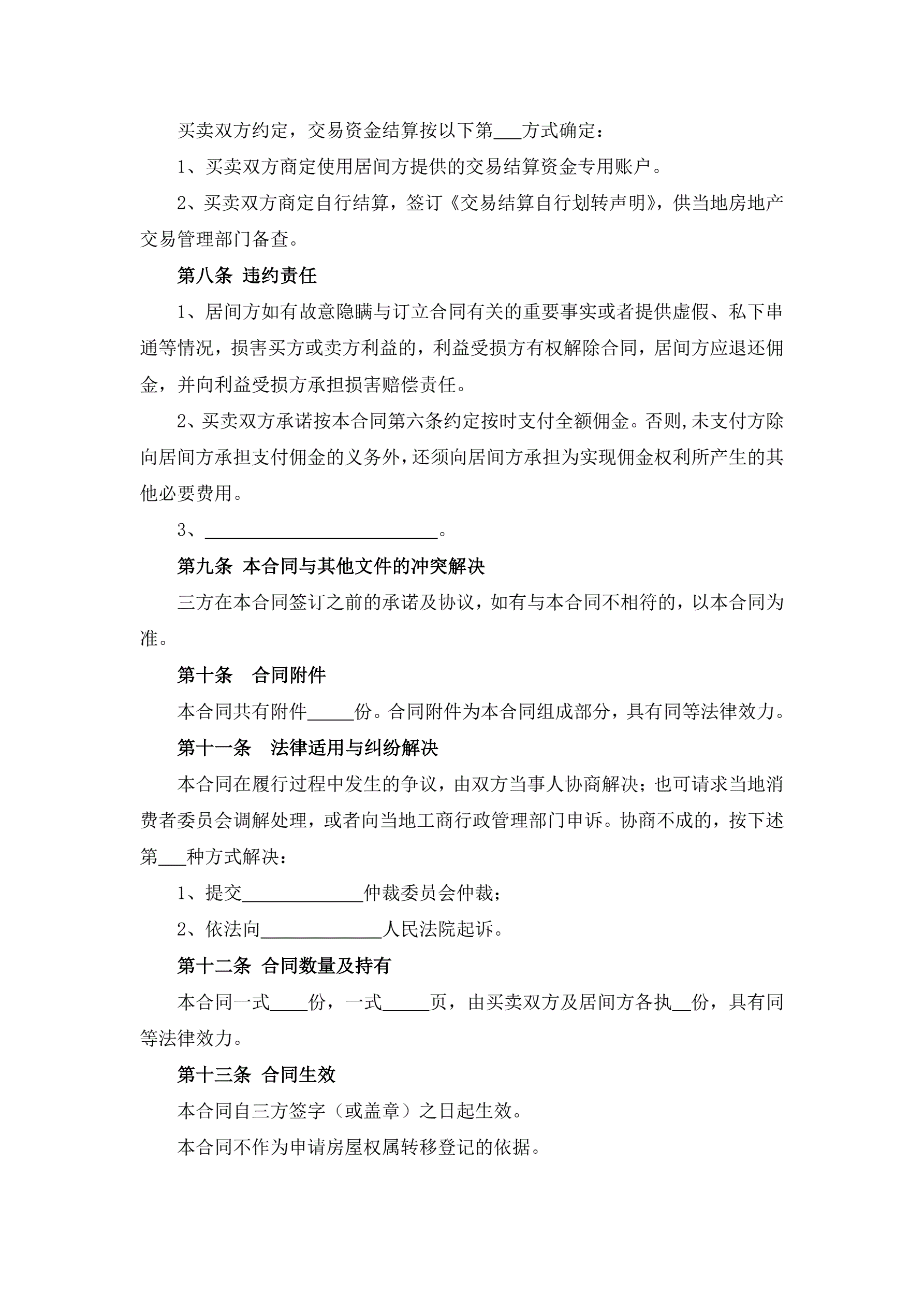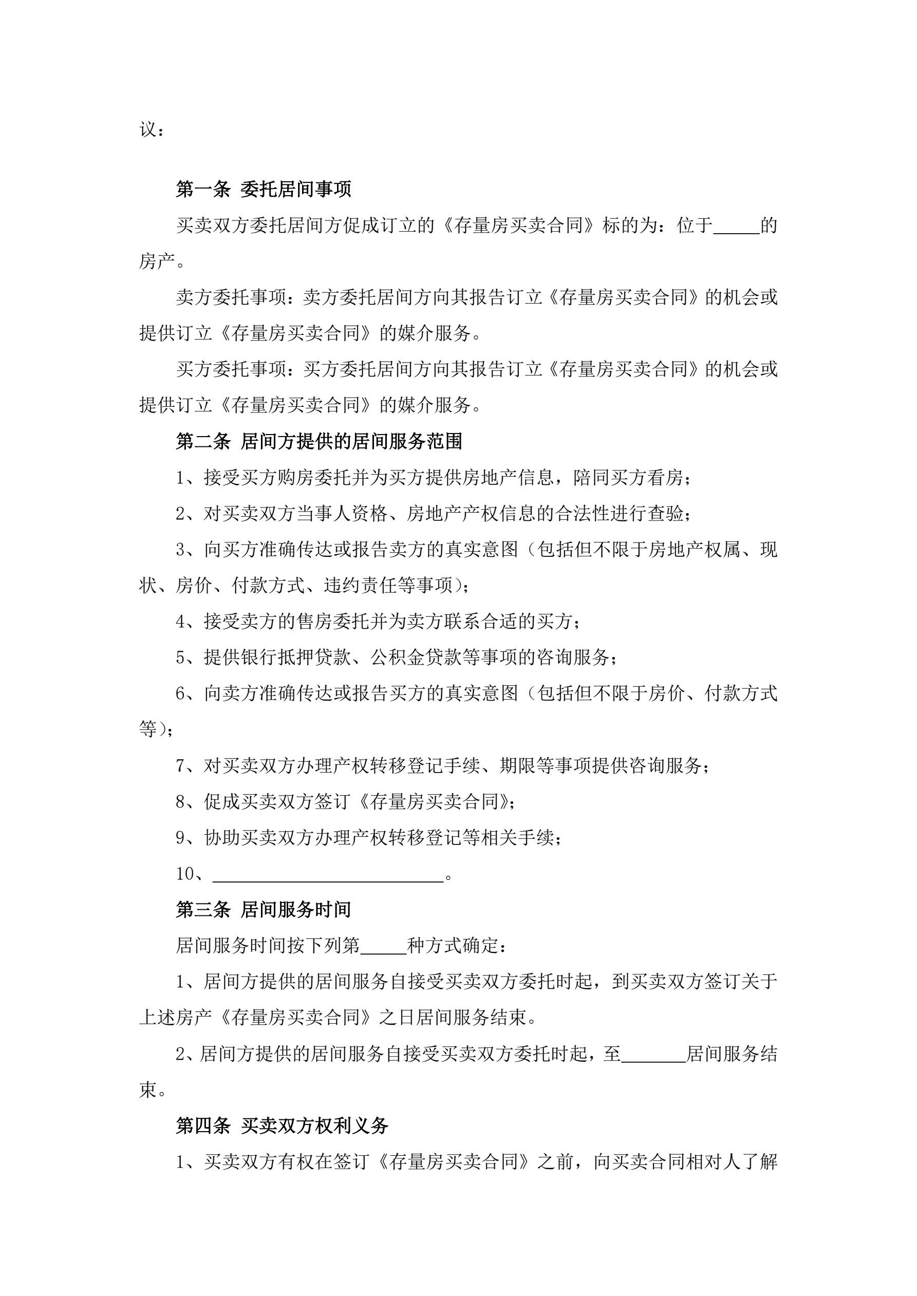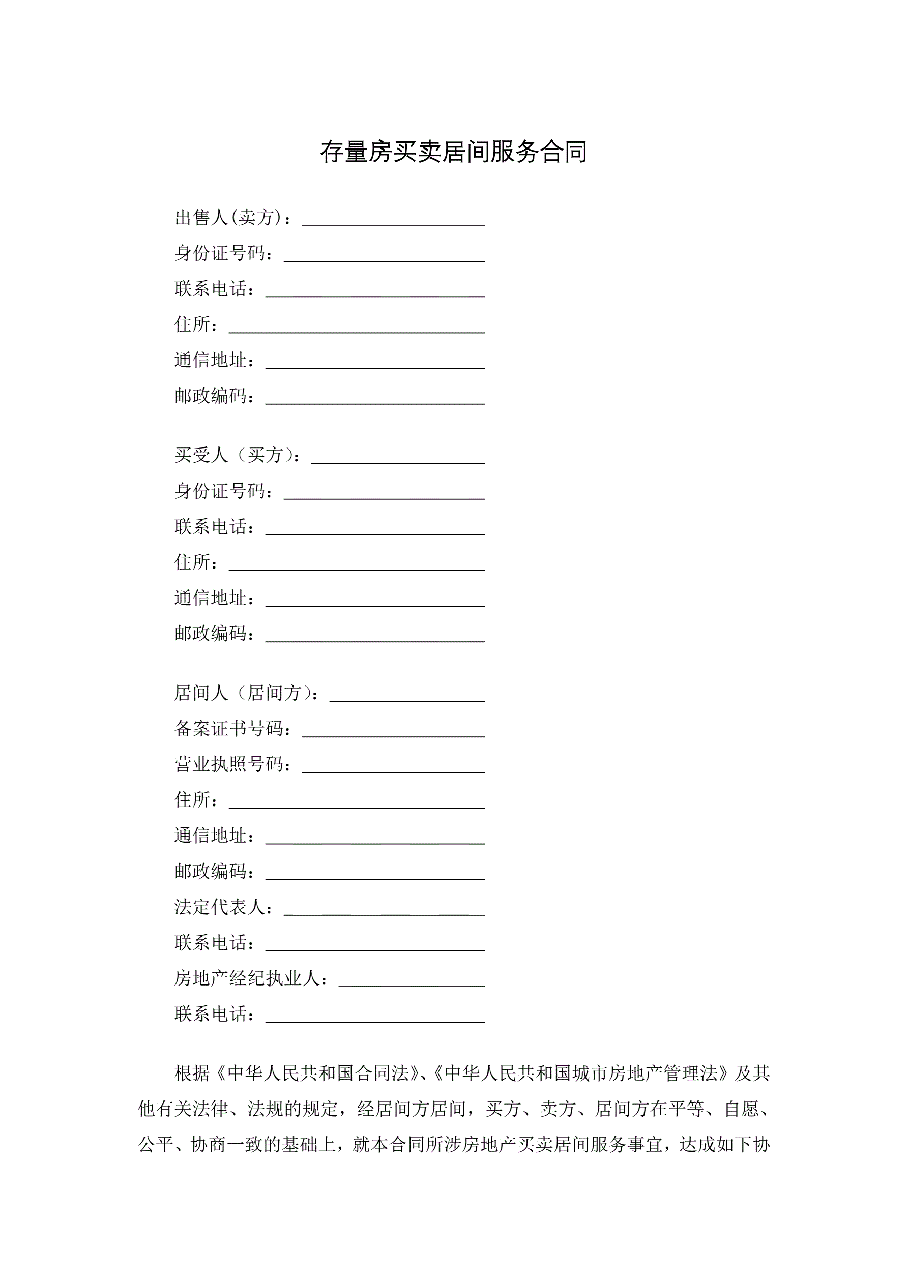 >存量房买卖居间服务合同