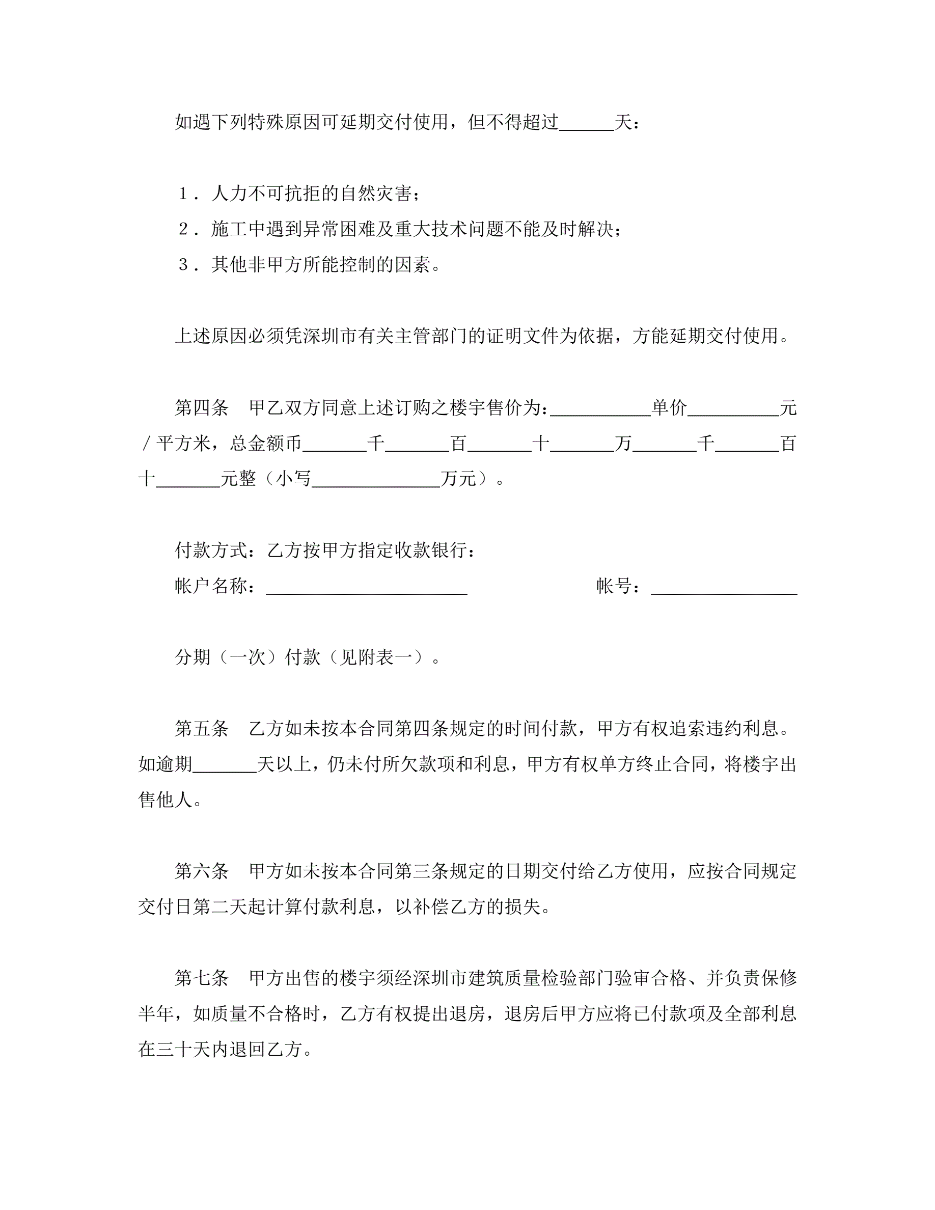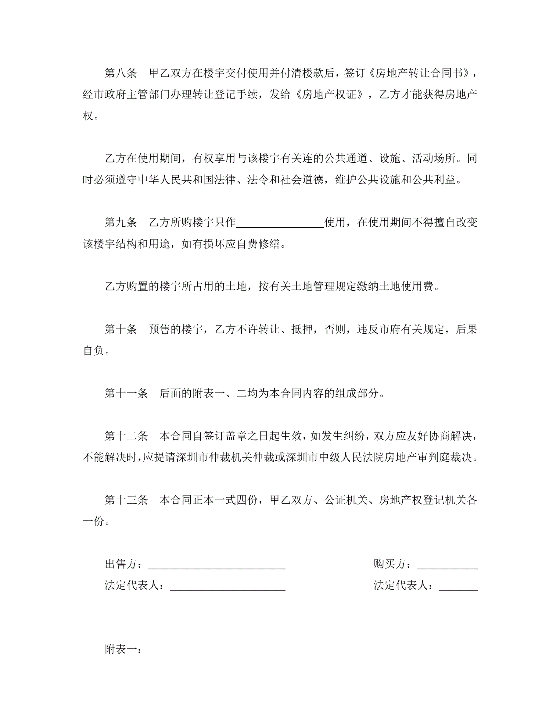 深圳经济特区商品房预售合同书