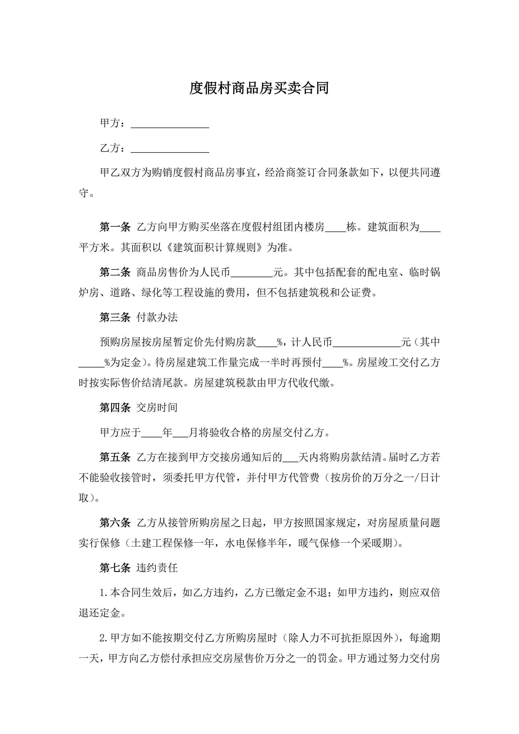 度假村商品房买卖合同
