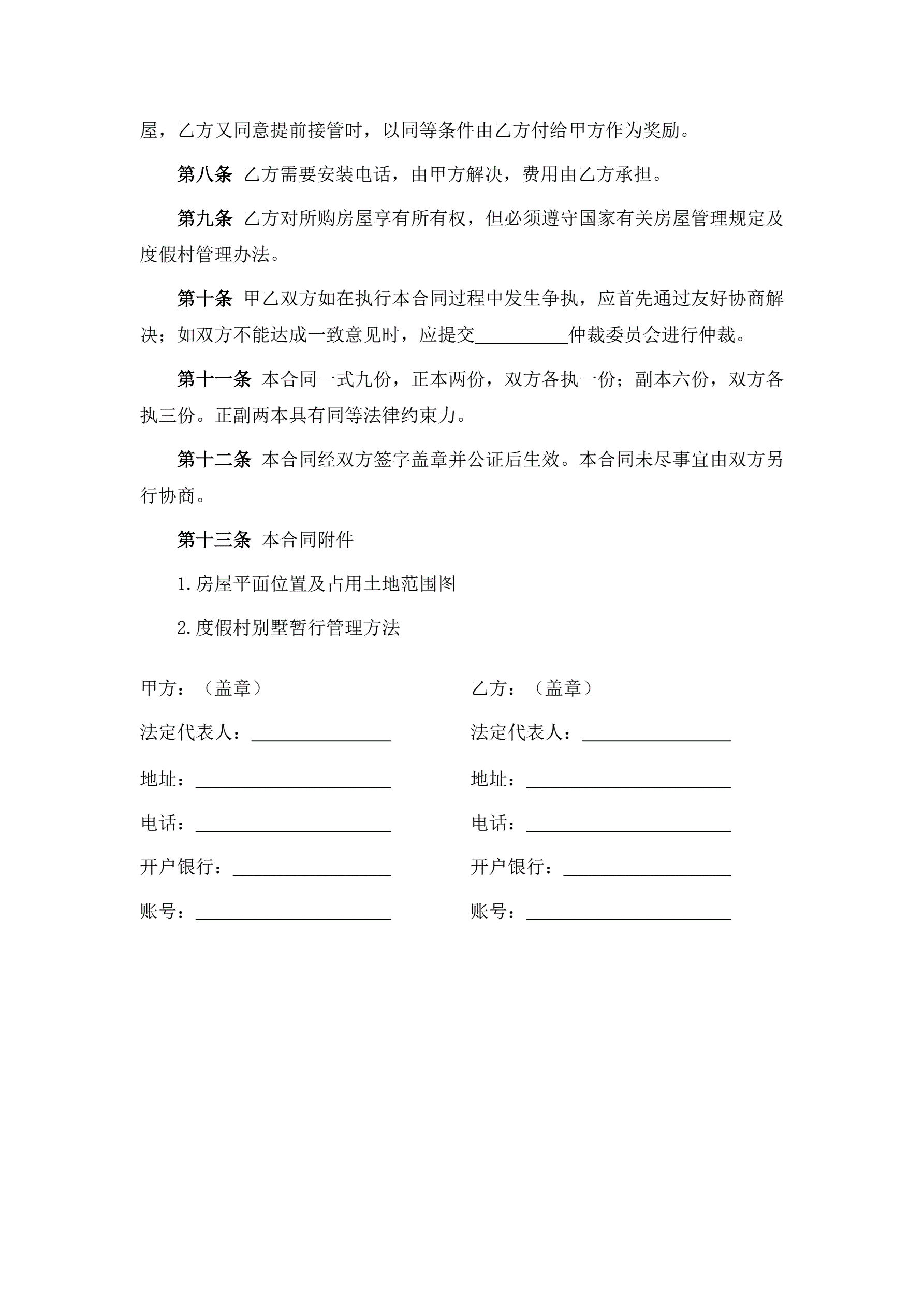 >度假村商品房买卖合同