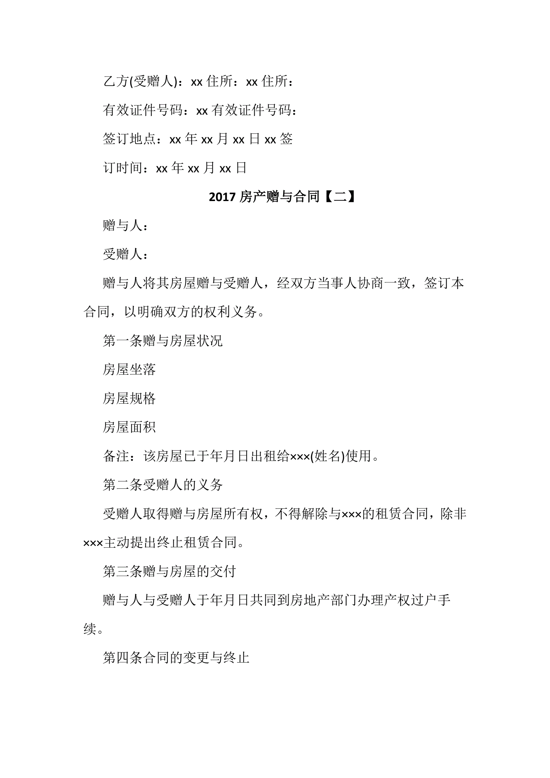 >房产赠与合同样本2份