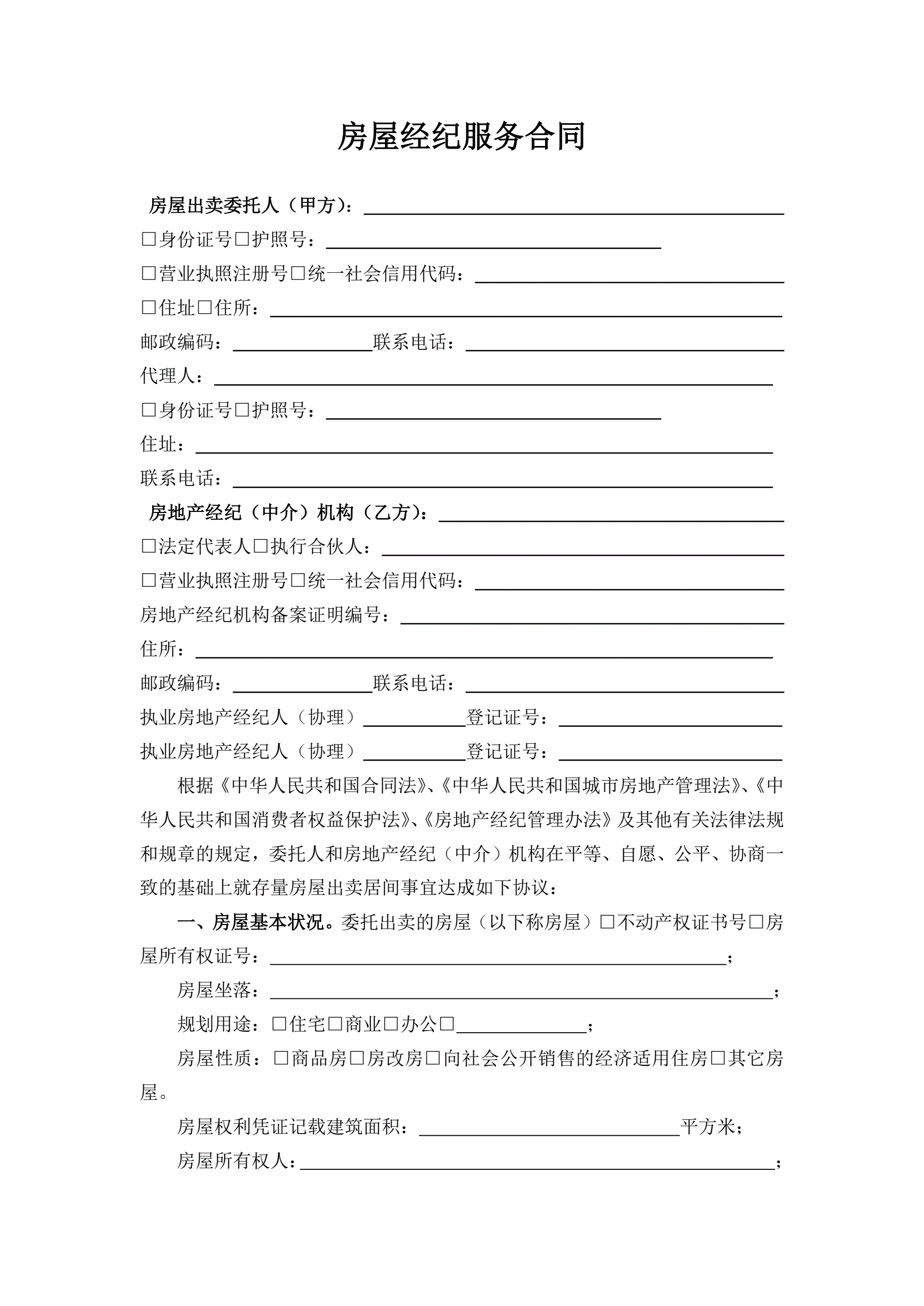 >1江西省房地产(出卖)经纪服务合同