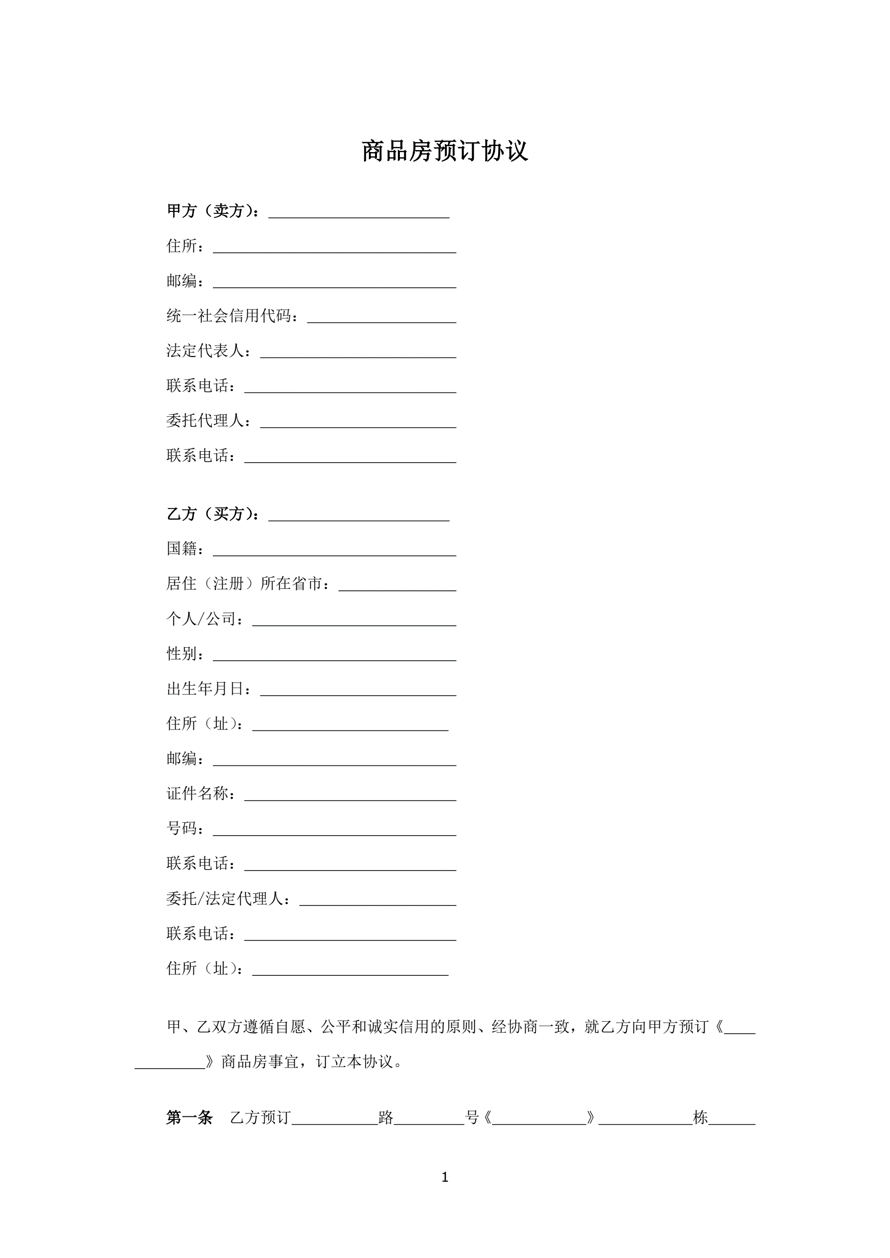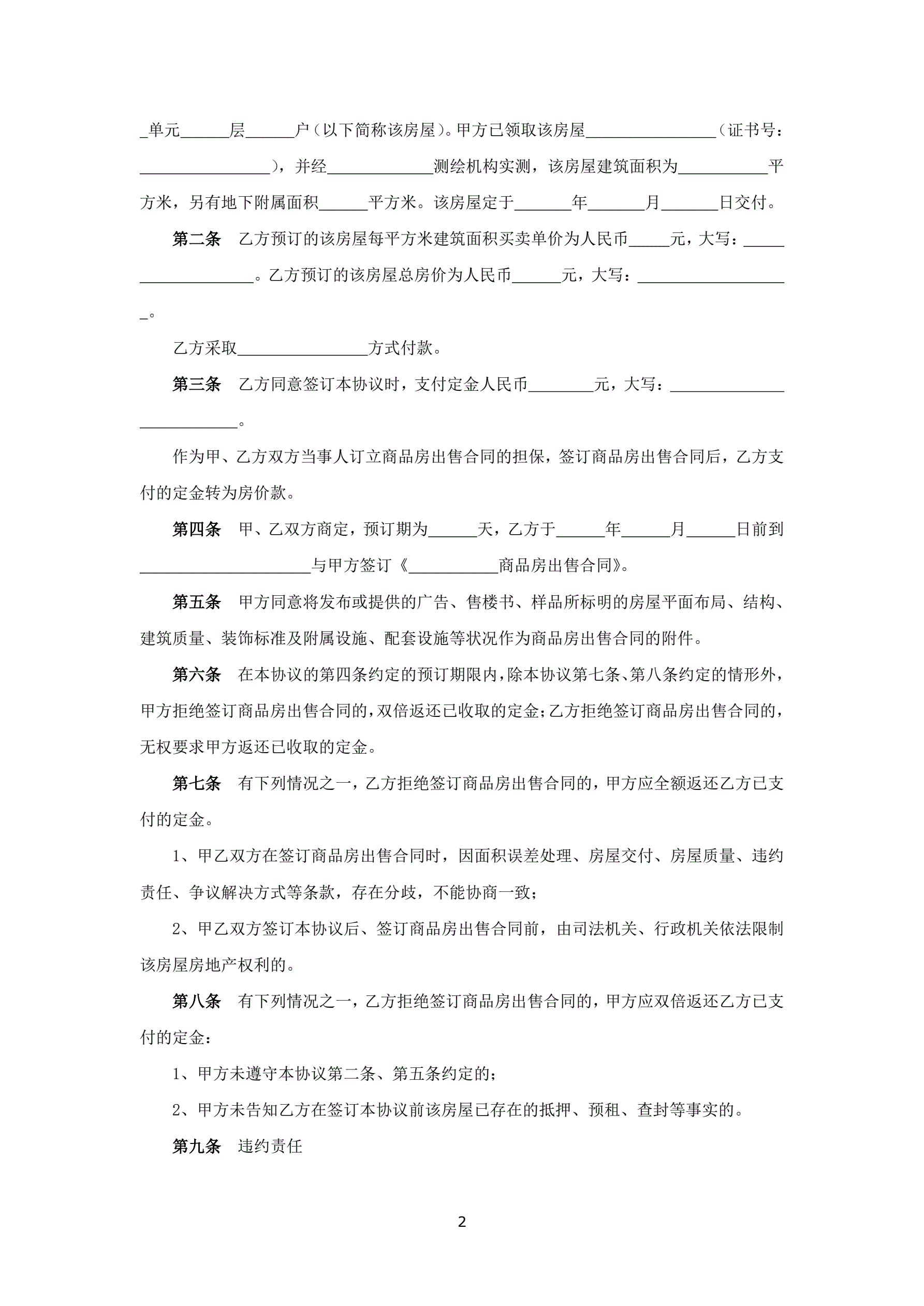 商品房预订协议
