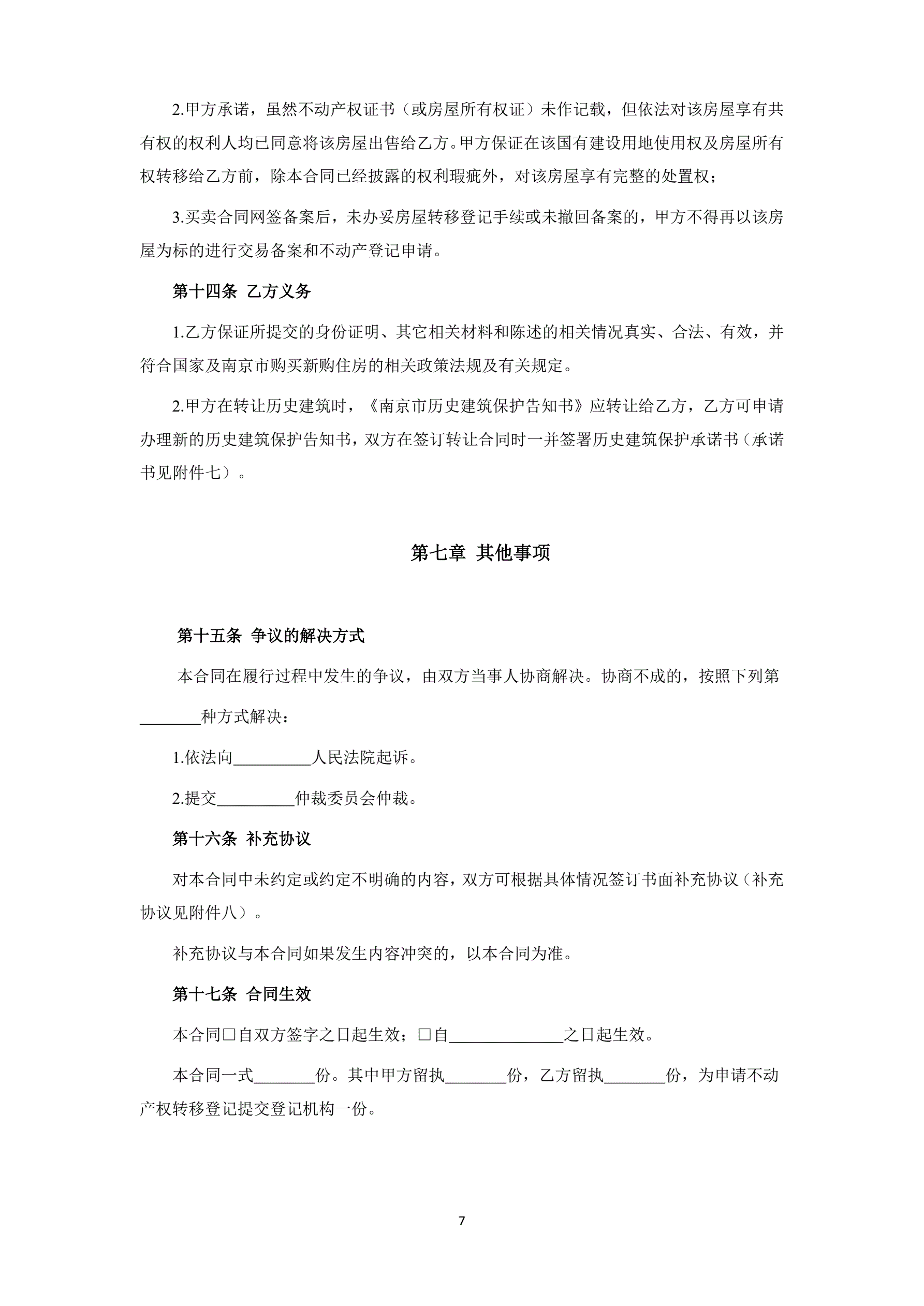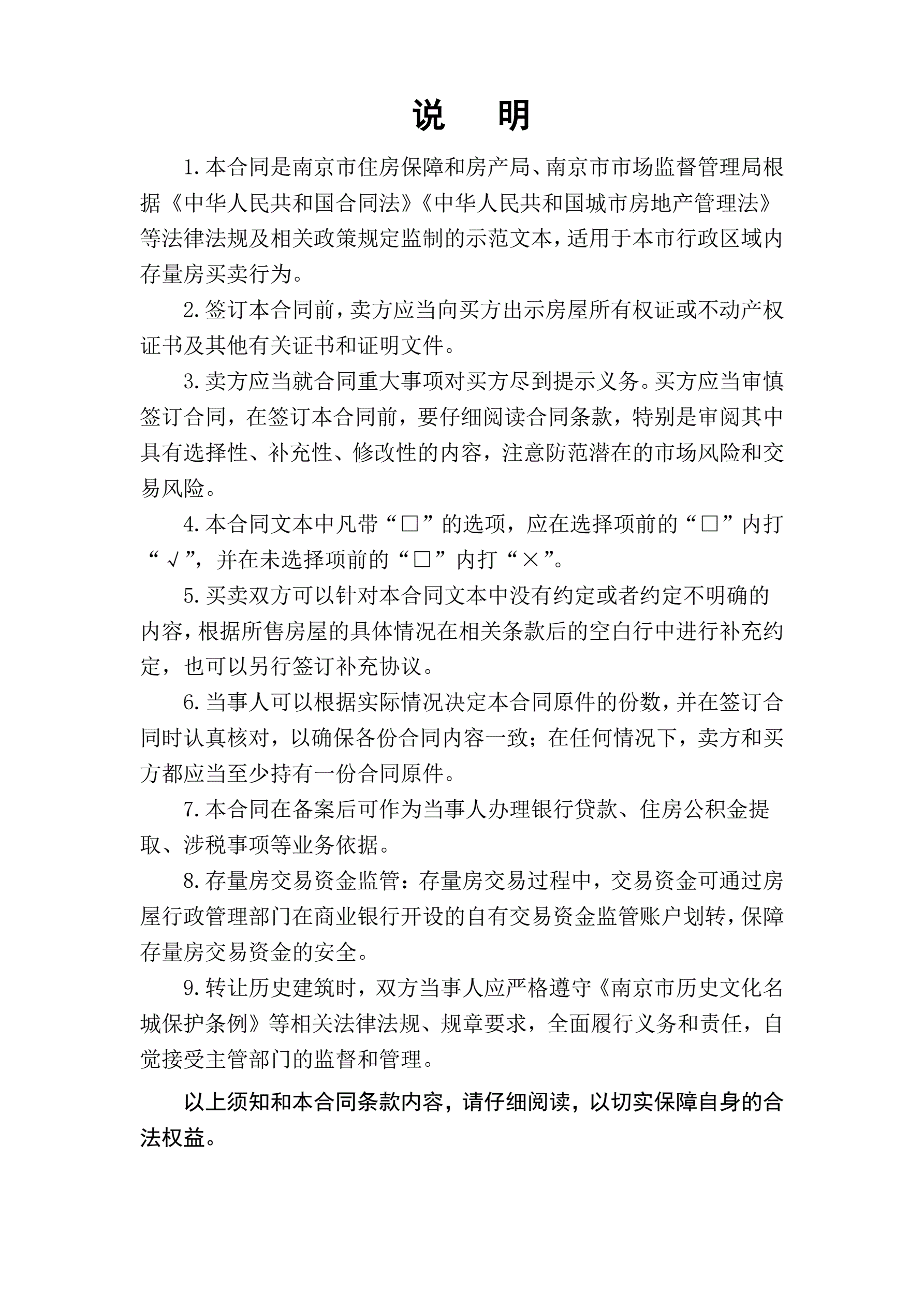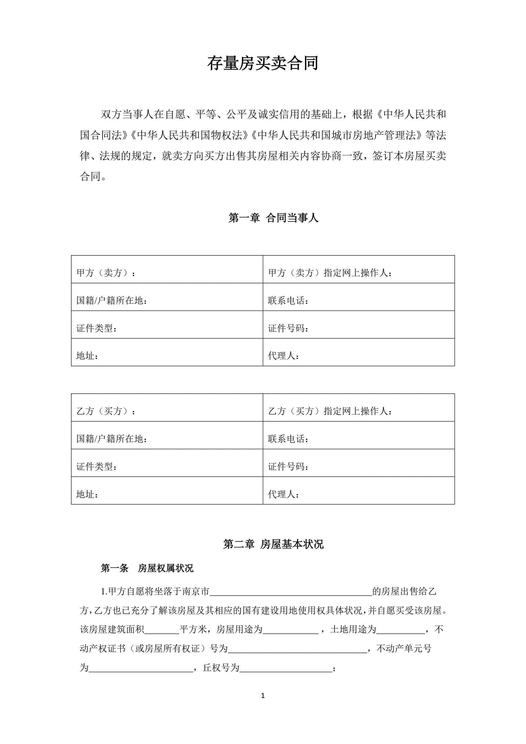 >南京市存量房买卖合同