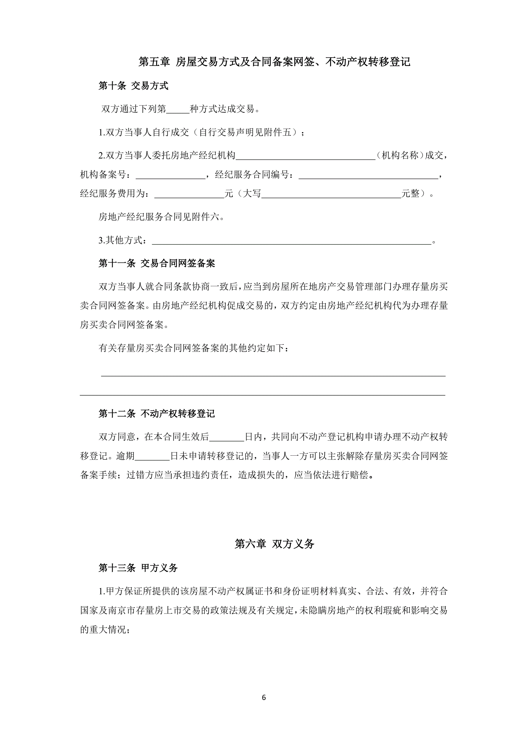 南京市存量房买卖合同