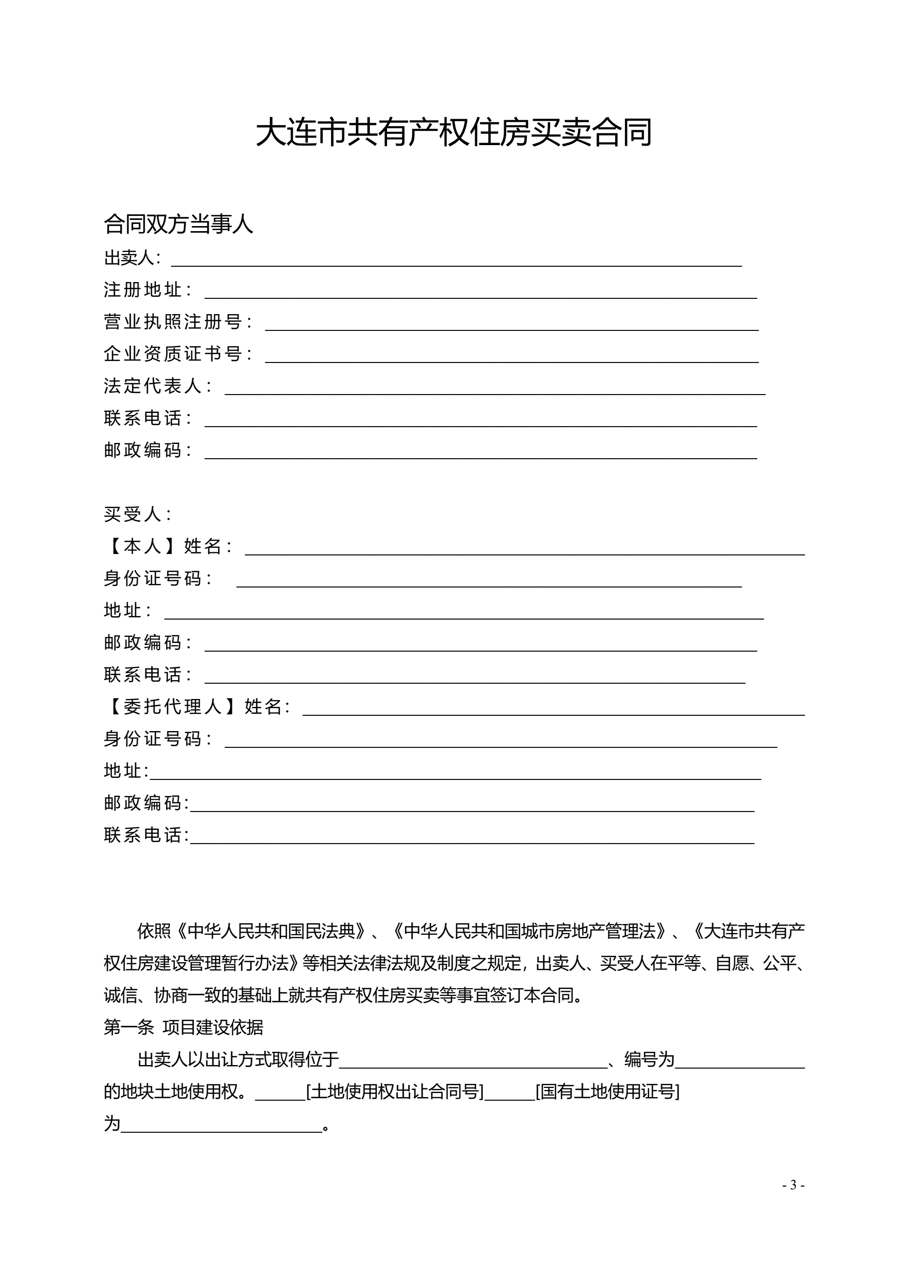 >《大连市共有产权住房买卖合同(范本)》