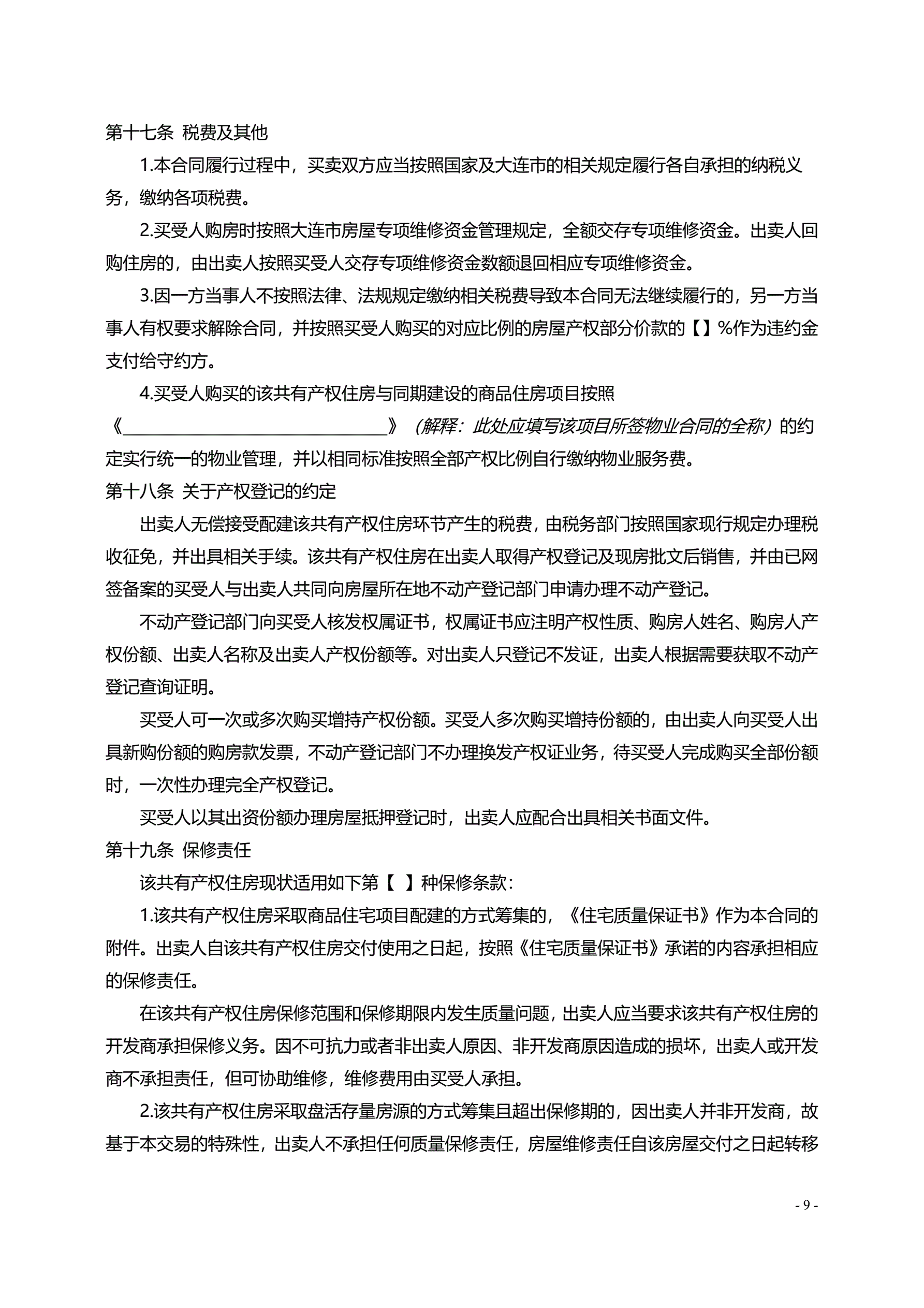 《大连市共有产权住房买卖合同(范本)》