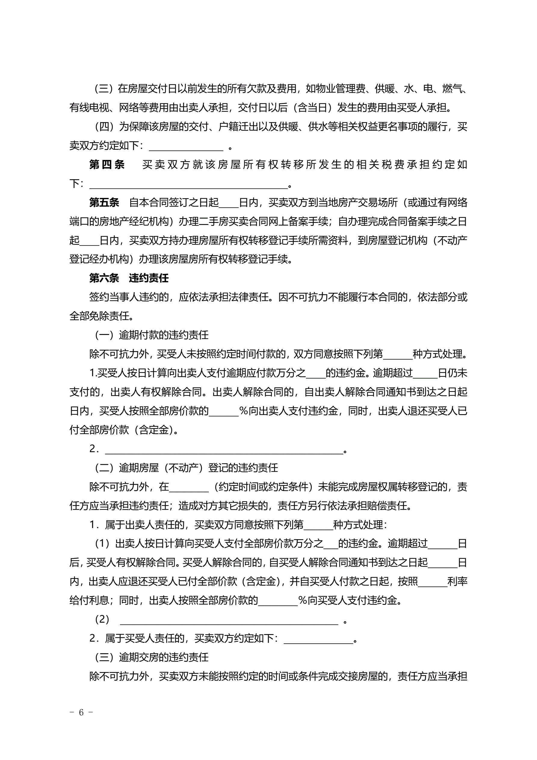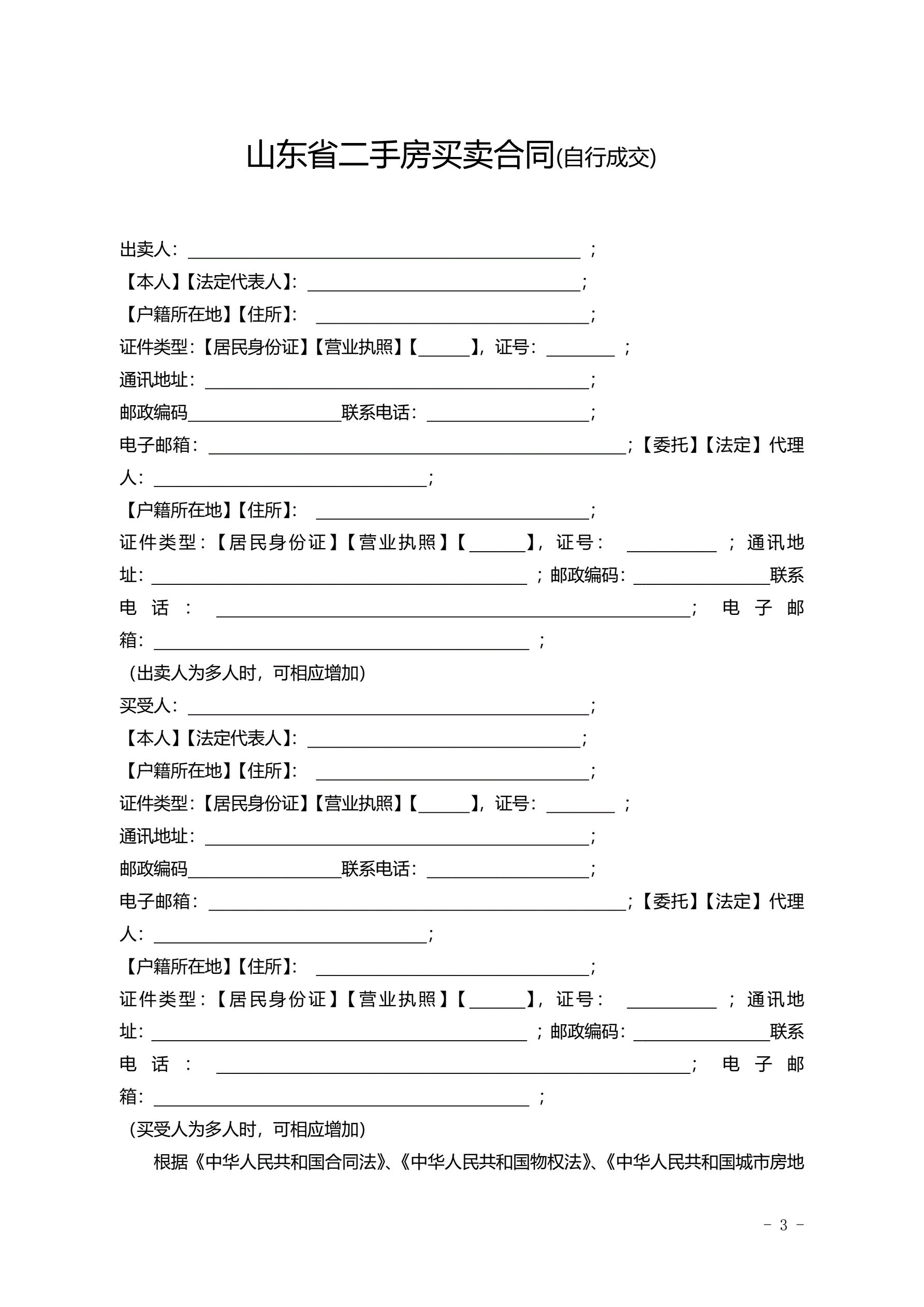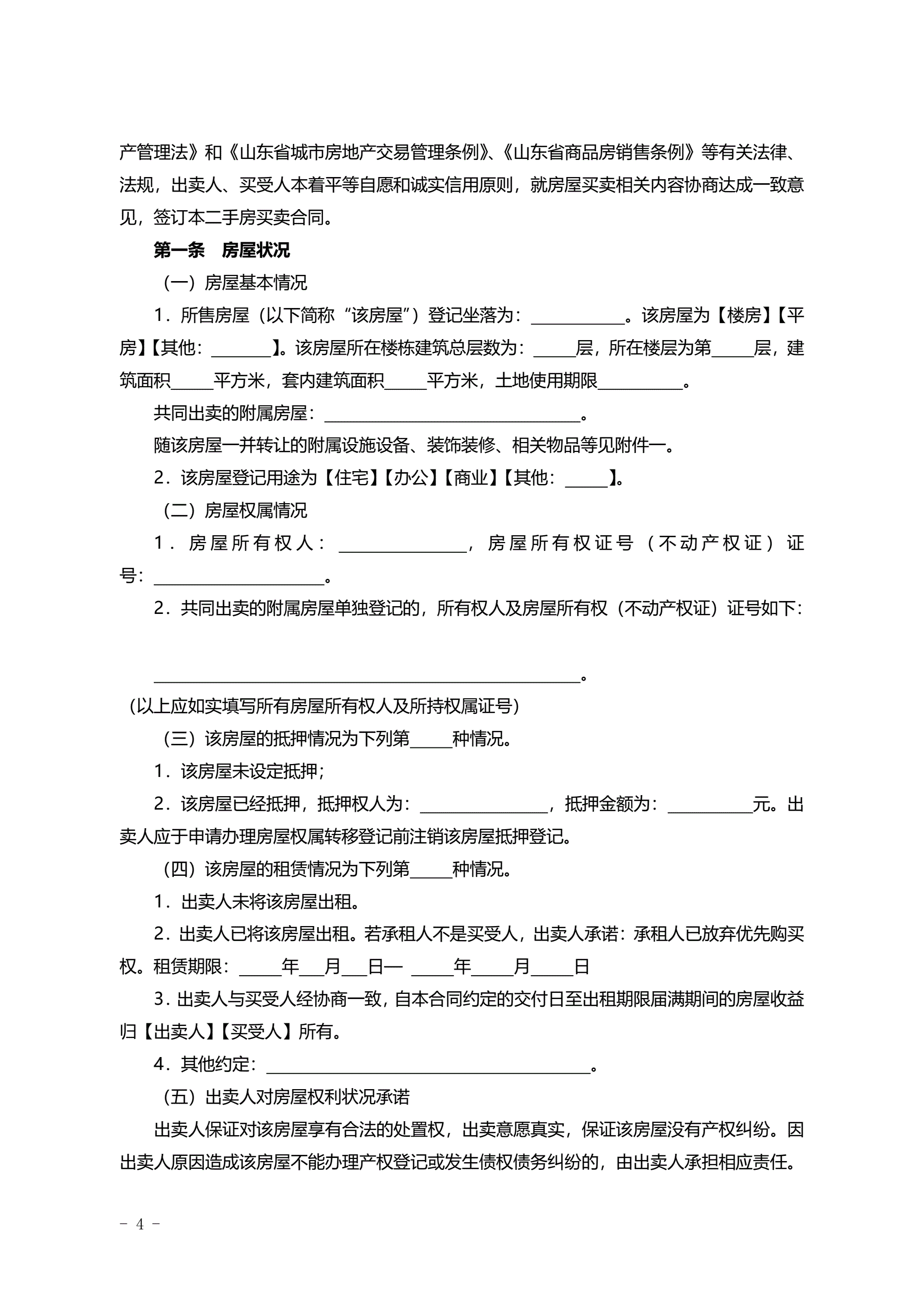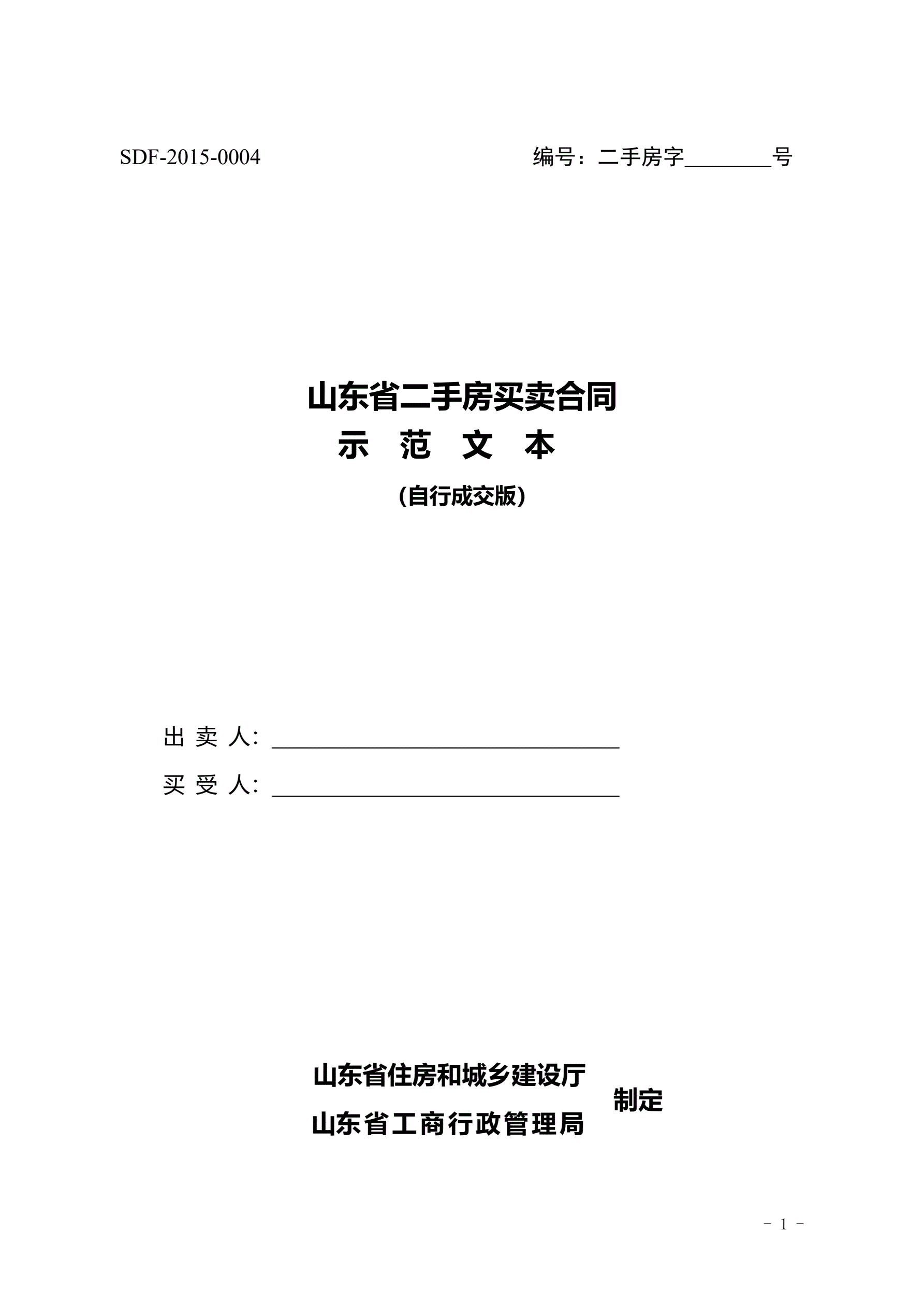 2015SDF-2015-0004《山东省二手房买卖合同示范文本(自行成交版)》