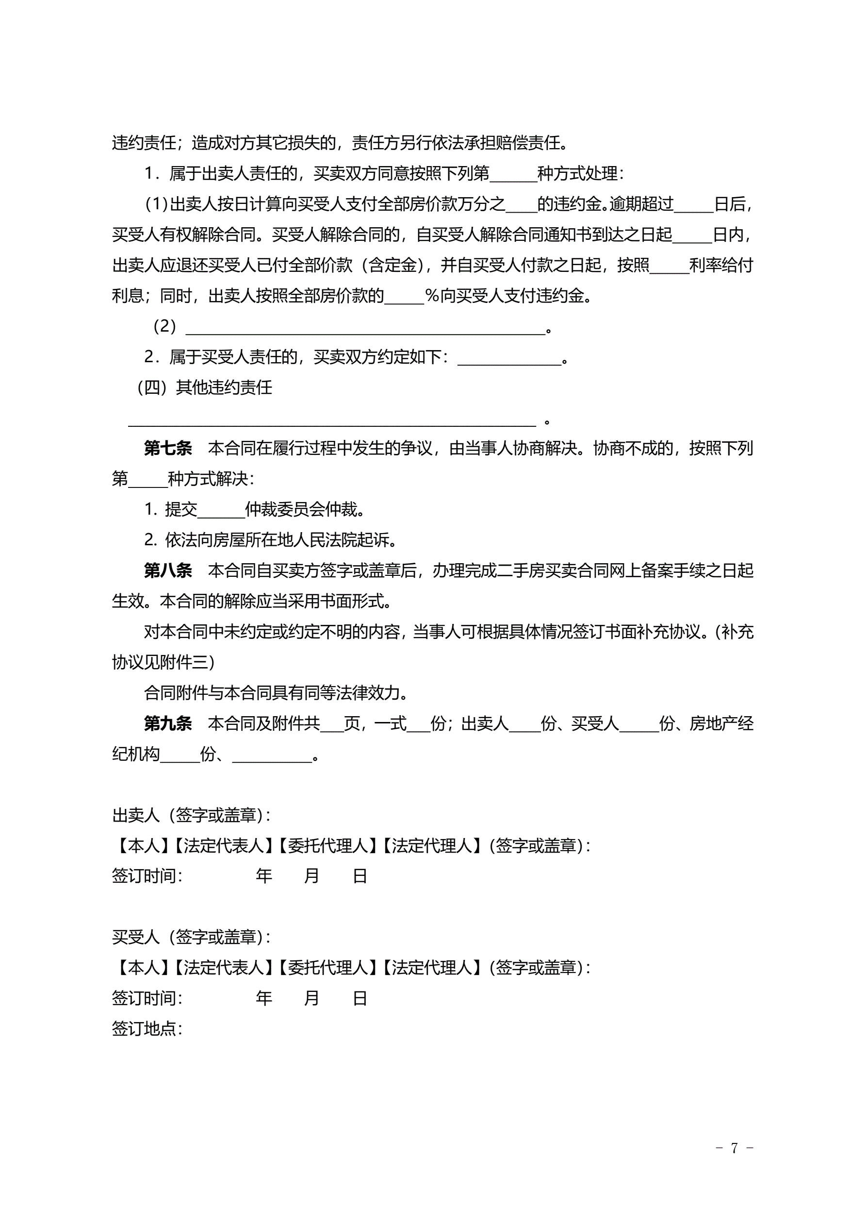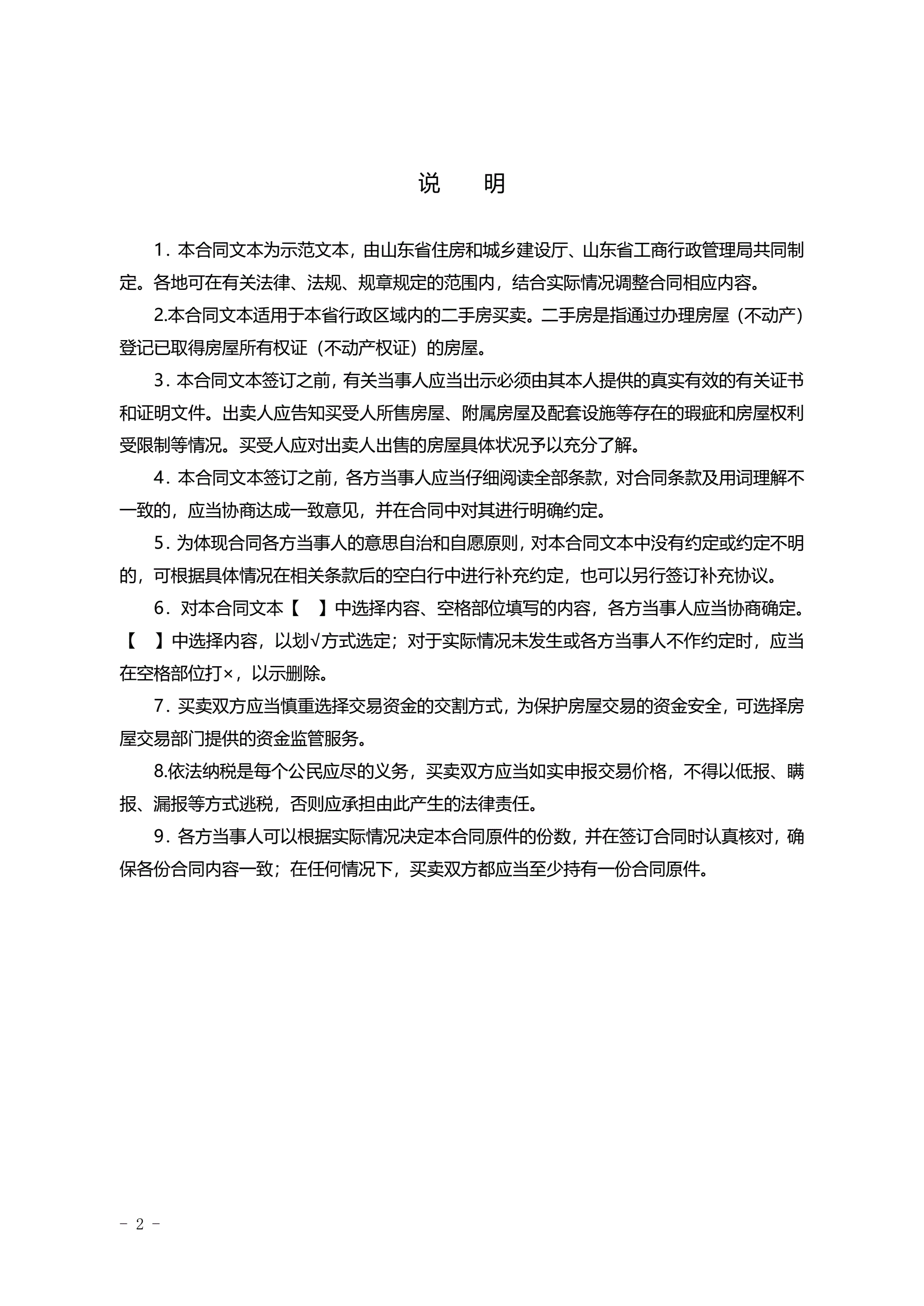 >2015SDF-2015-0004《山东省二手房买卖合同示范文本(自行成交版)》
