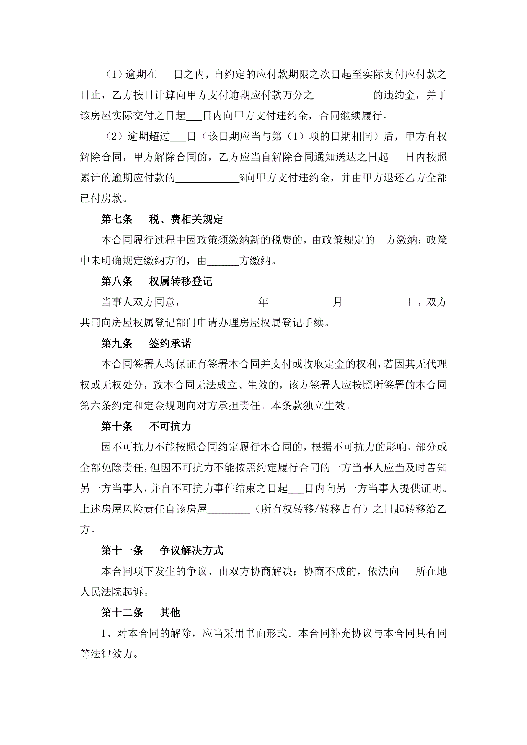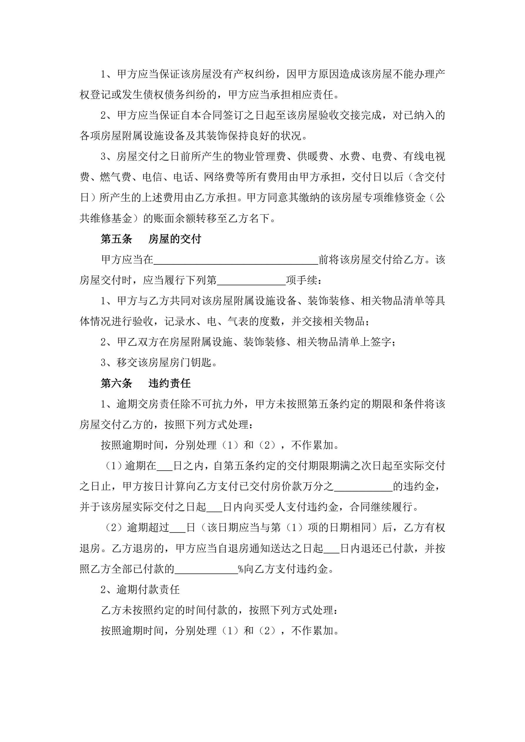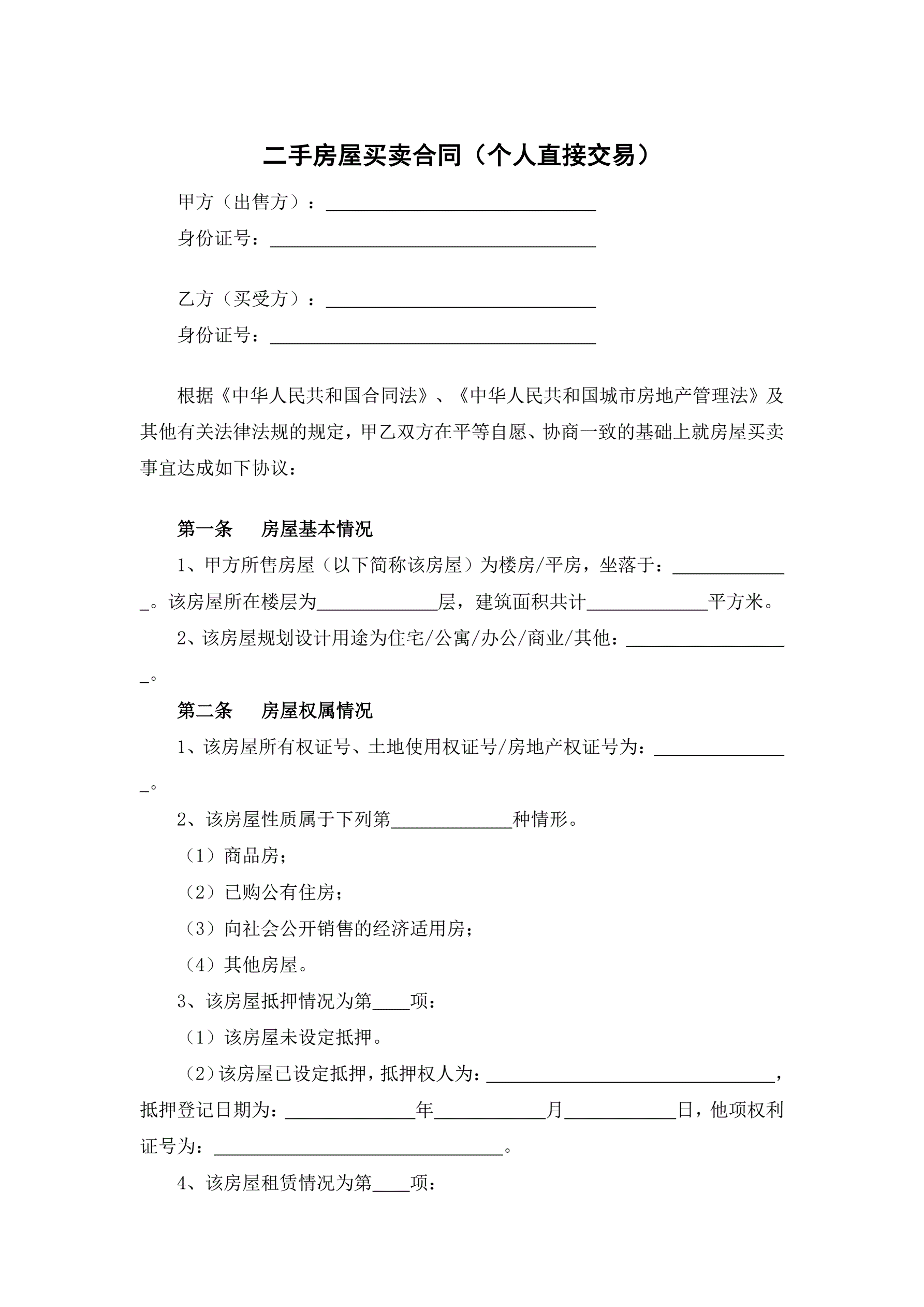 二手房屋买卖合同