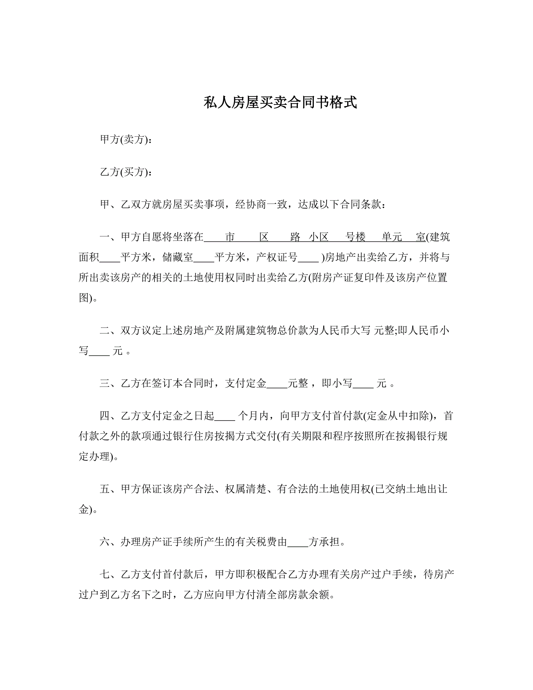 合同名称:私人房屋买卖合同书