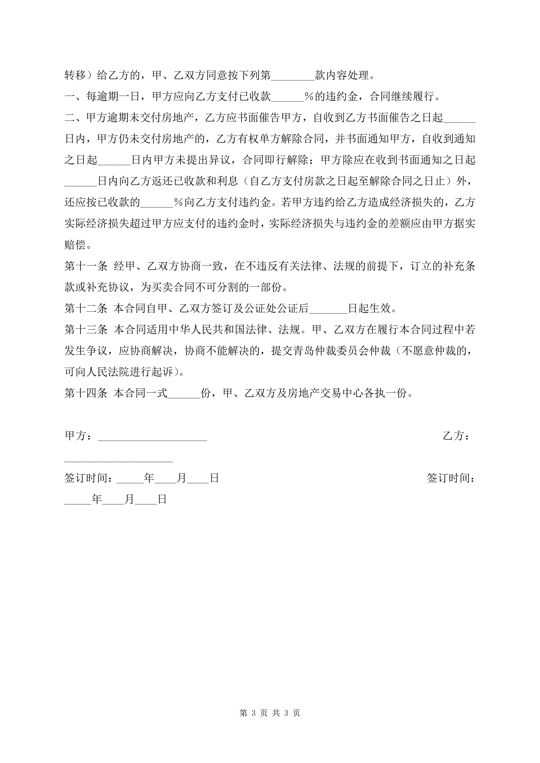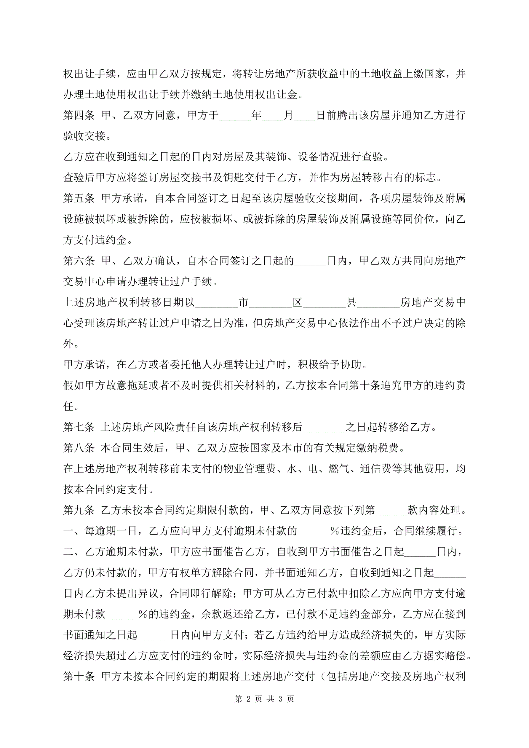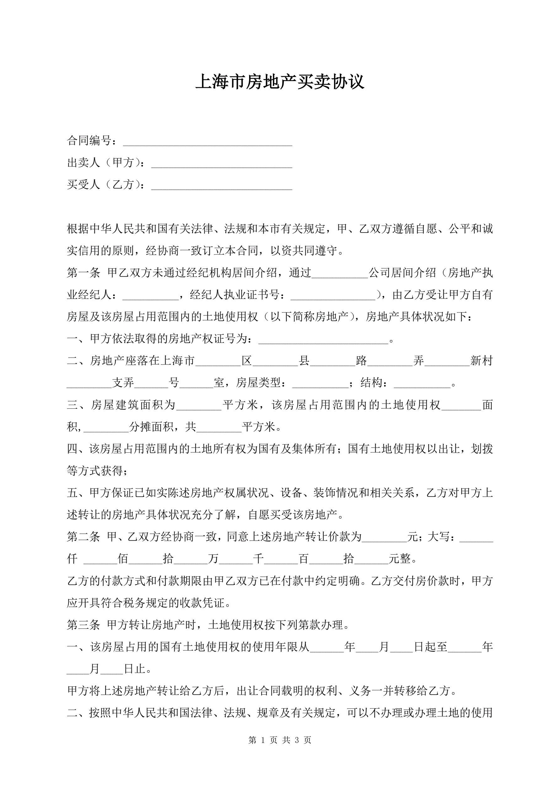 上海市房地产买卖协议