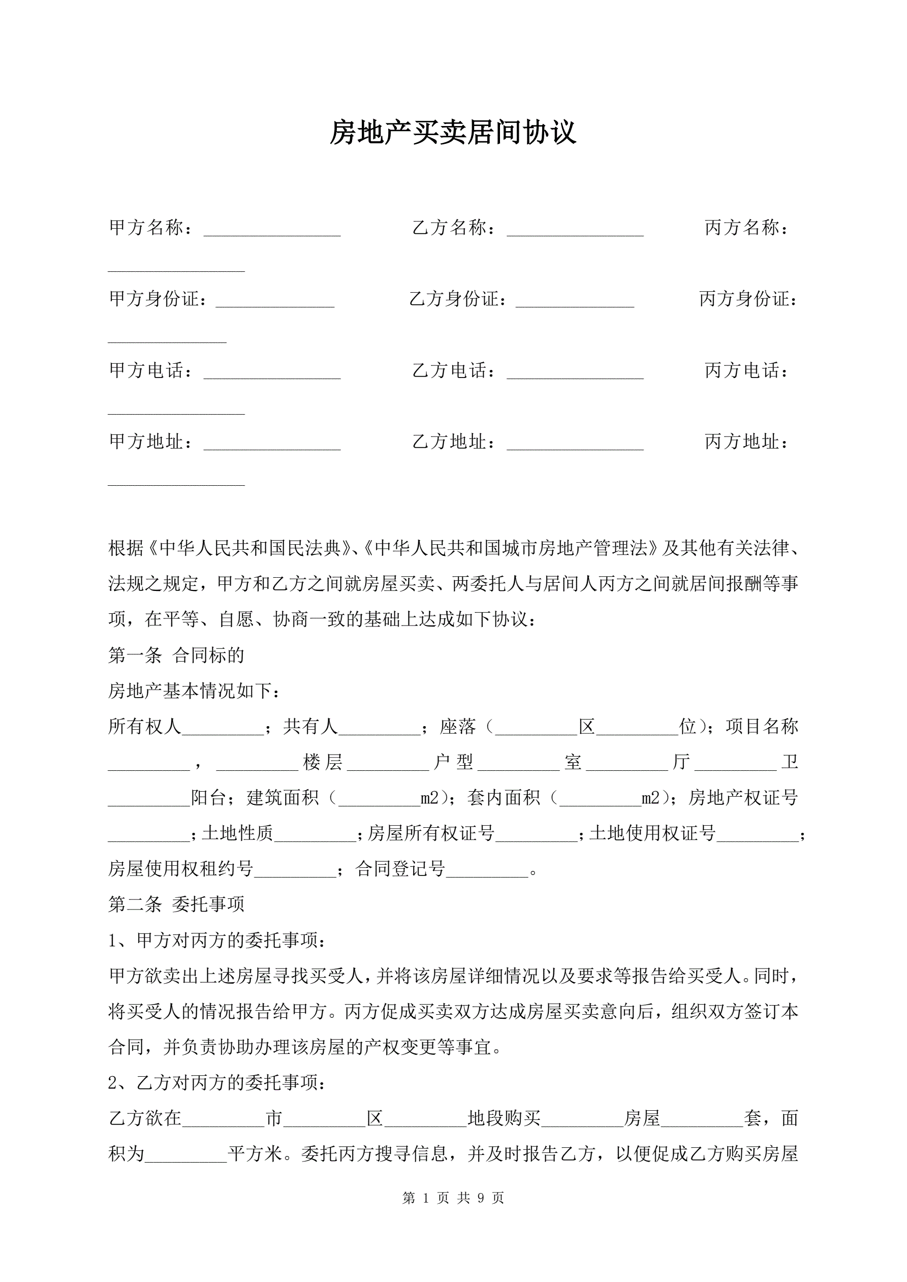 房地产买卖居间协议