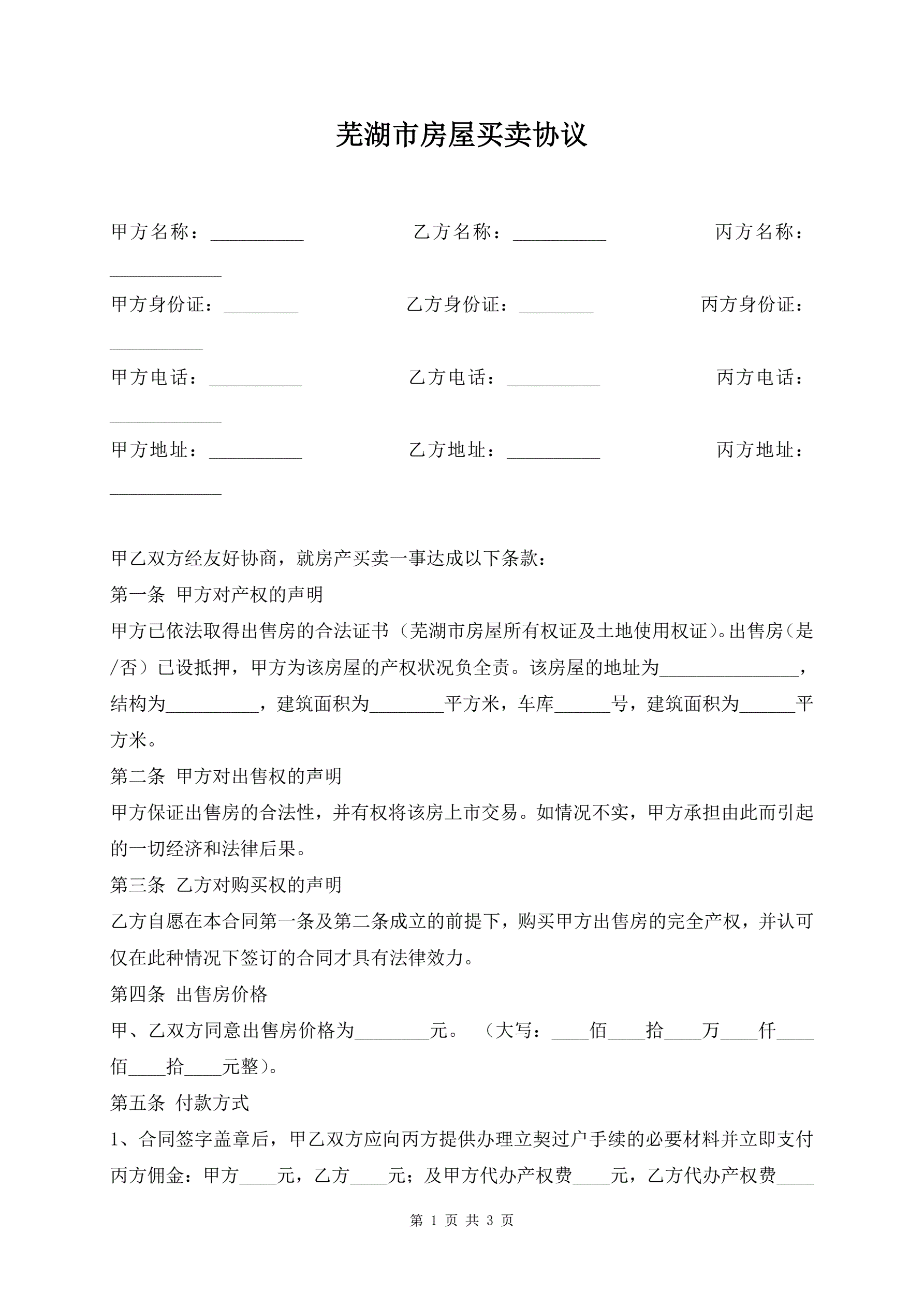 芜湖市房屋买卖协议