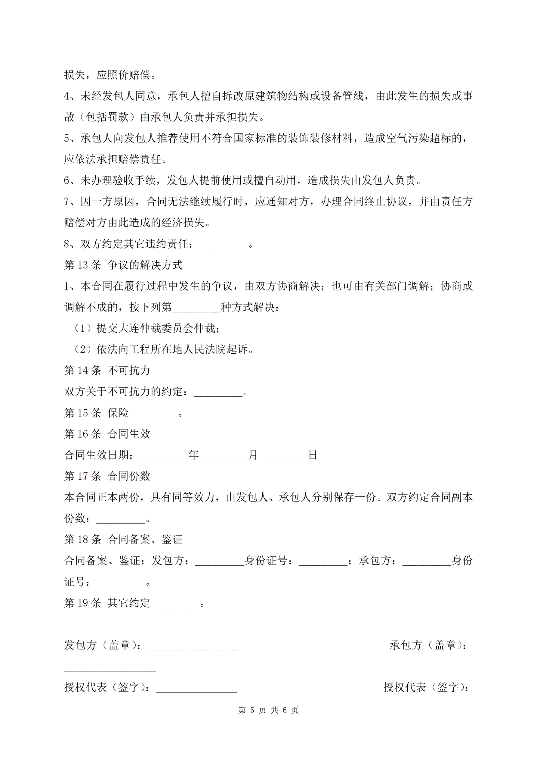 >热门版大连市住宅室内装饰装修施工合同