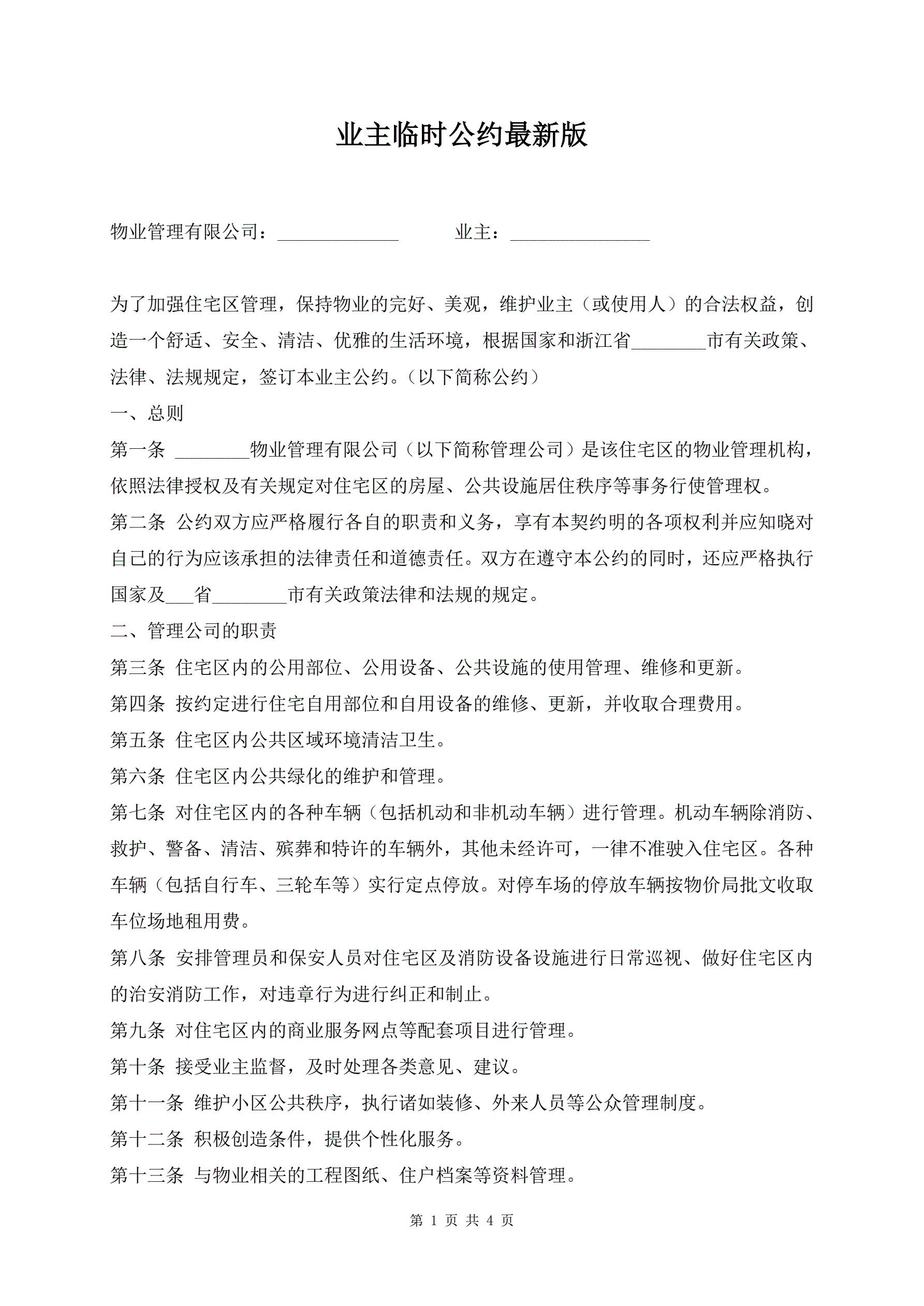 >业主临时公约最新版