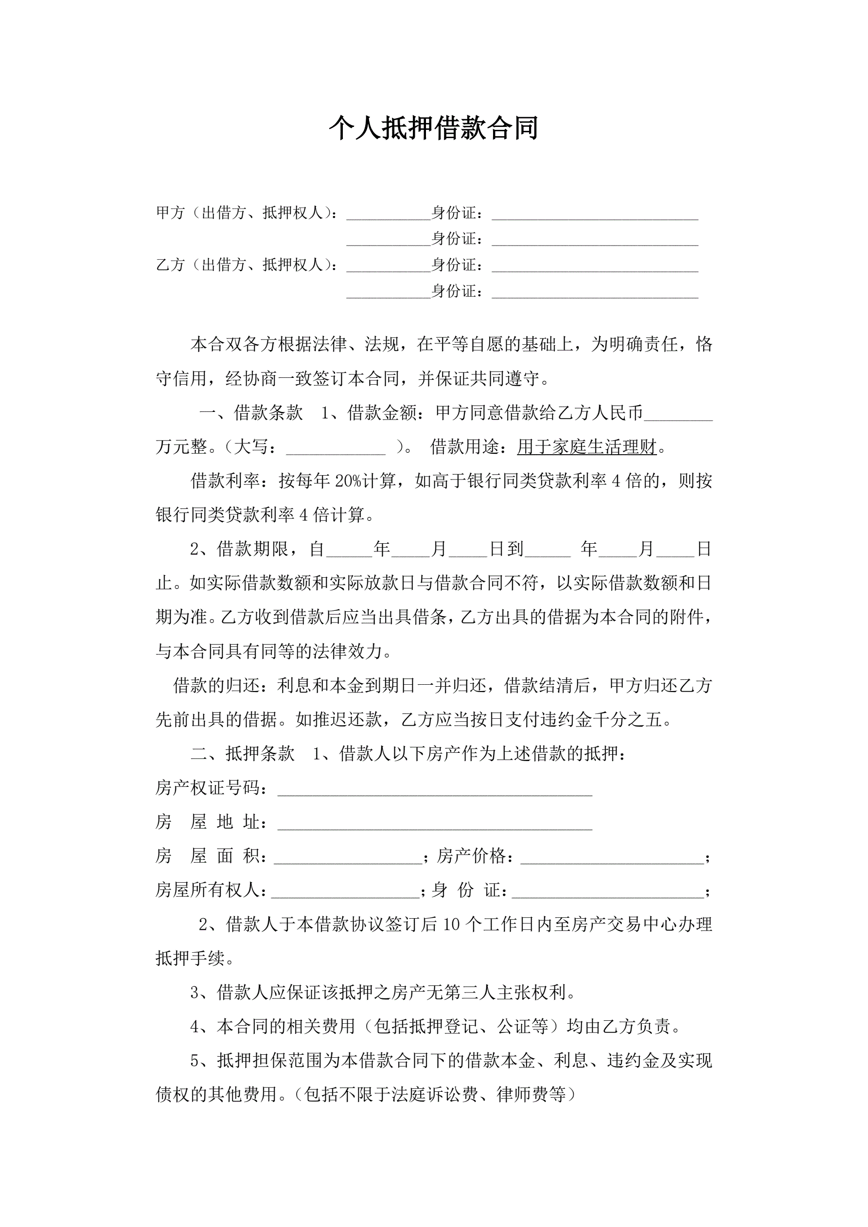 >个人房产抵押借款样本2页