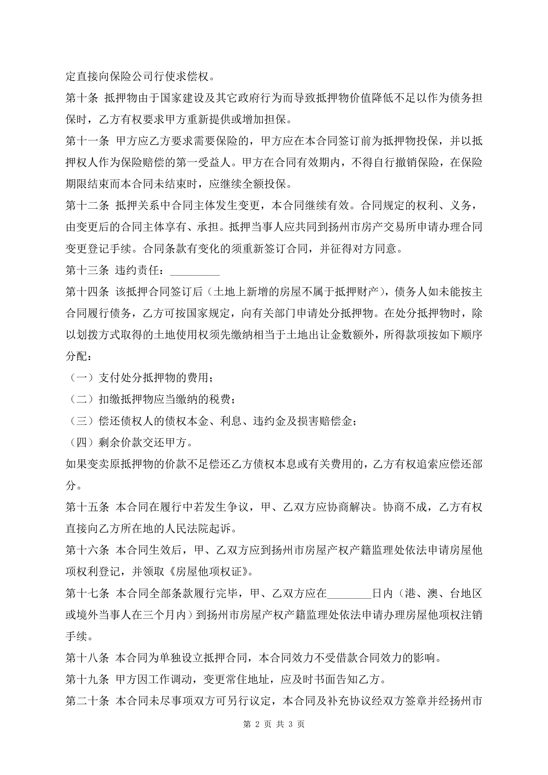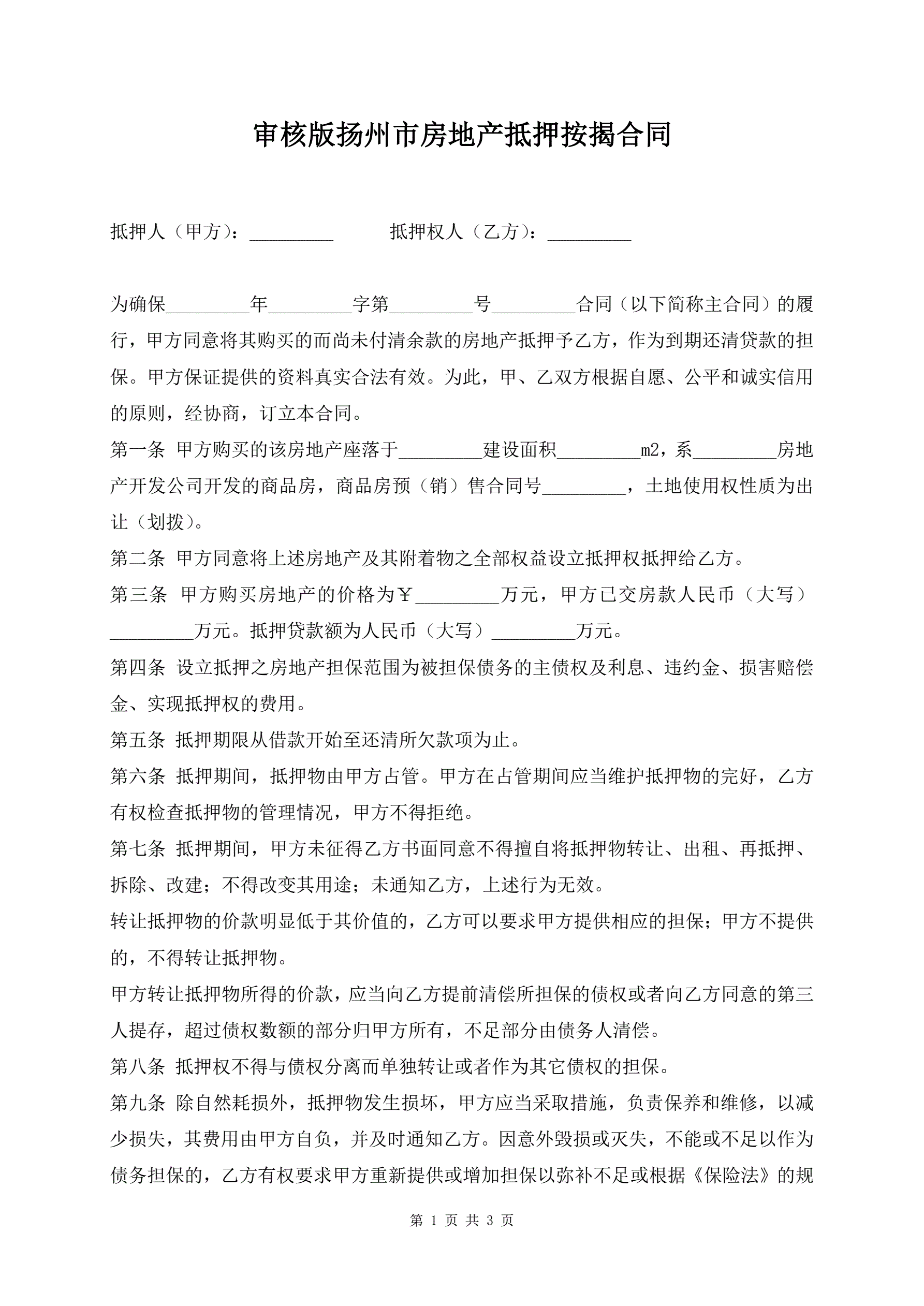 >审核版扬州市房地产抵押按揭合同