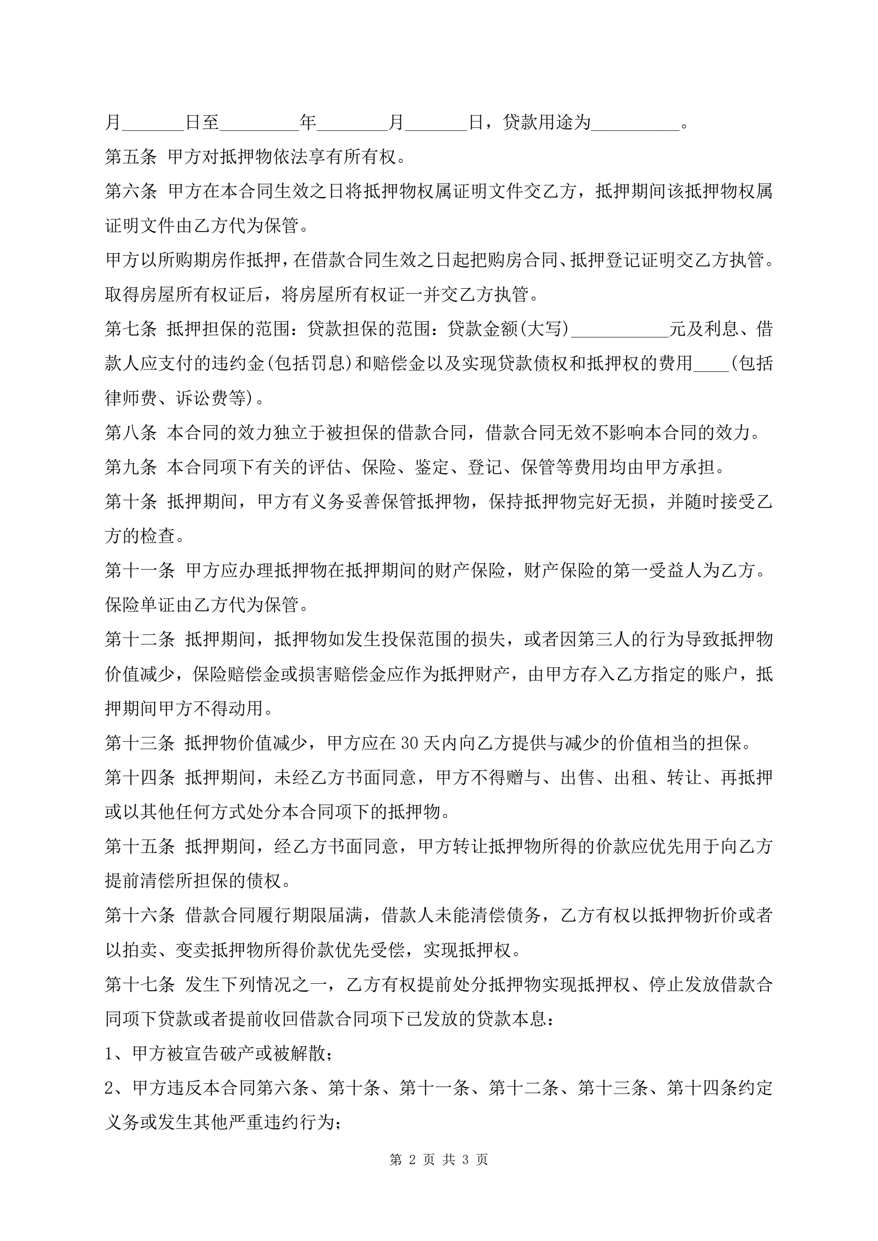 个人住房贷款抵押协议