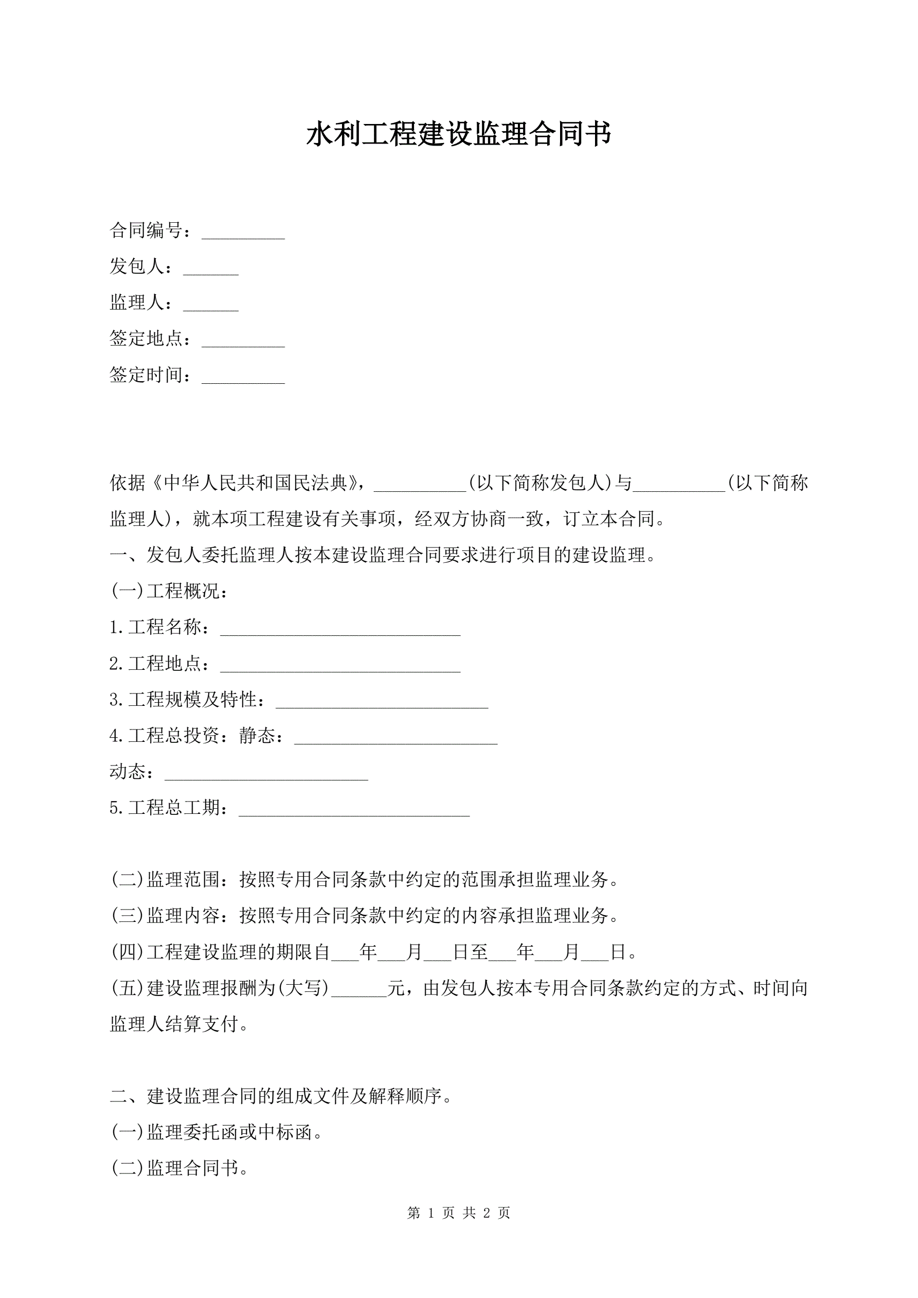 >水利工程建设监理合同书