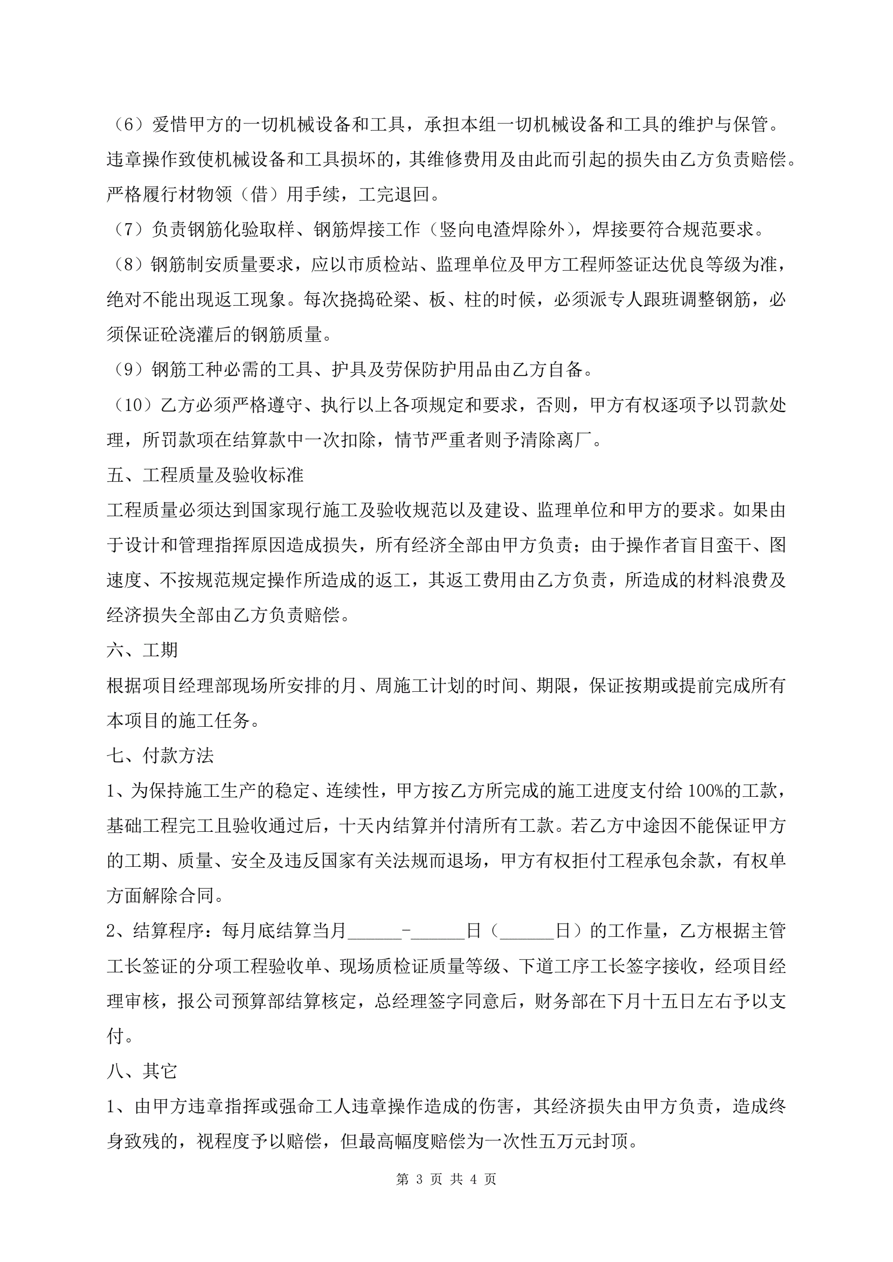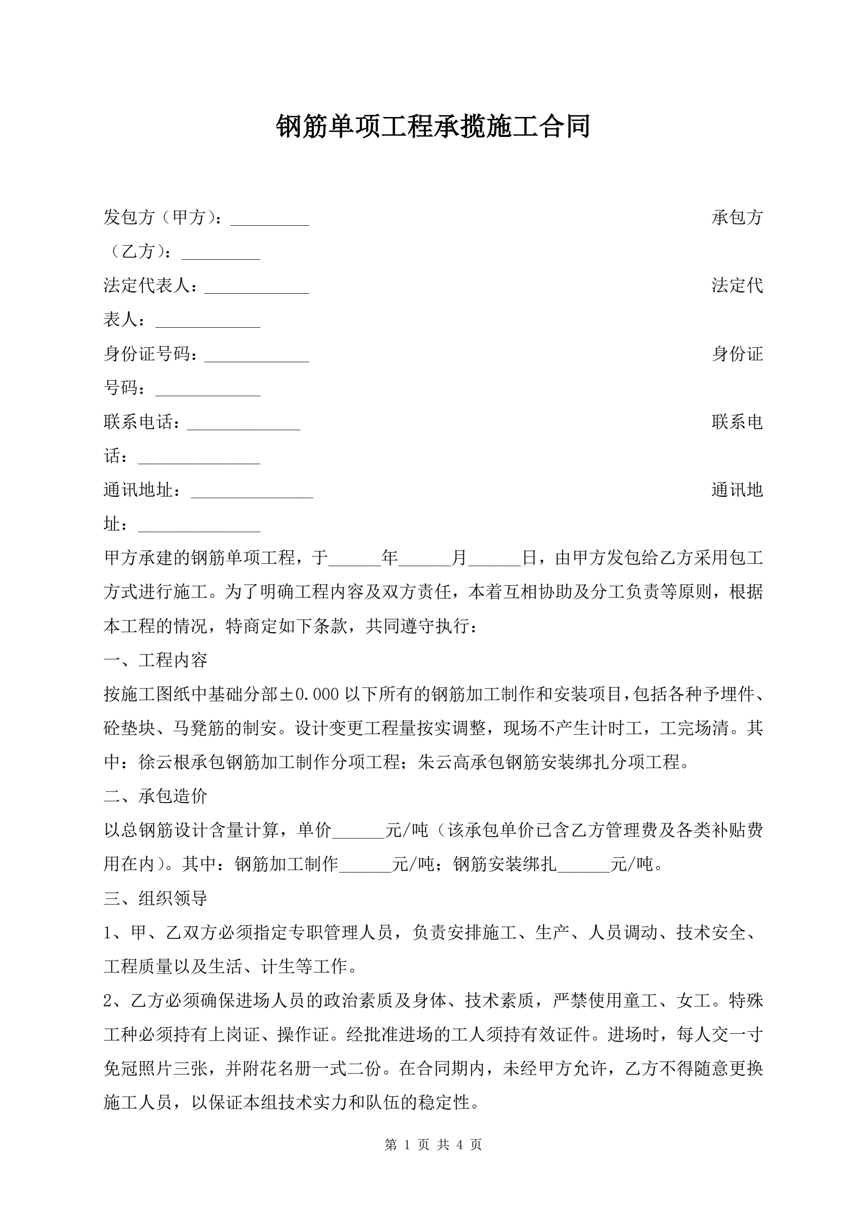 >钢筋单项工程承揽施工合同