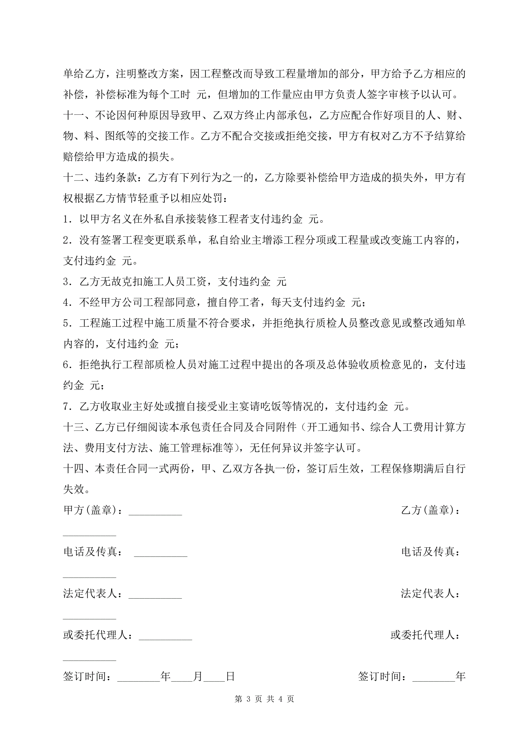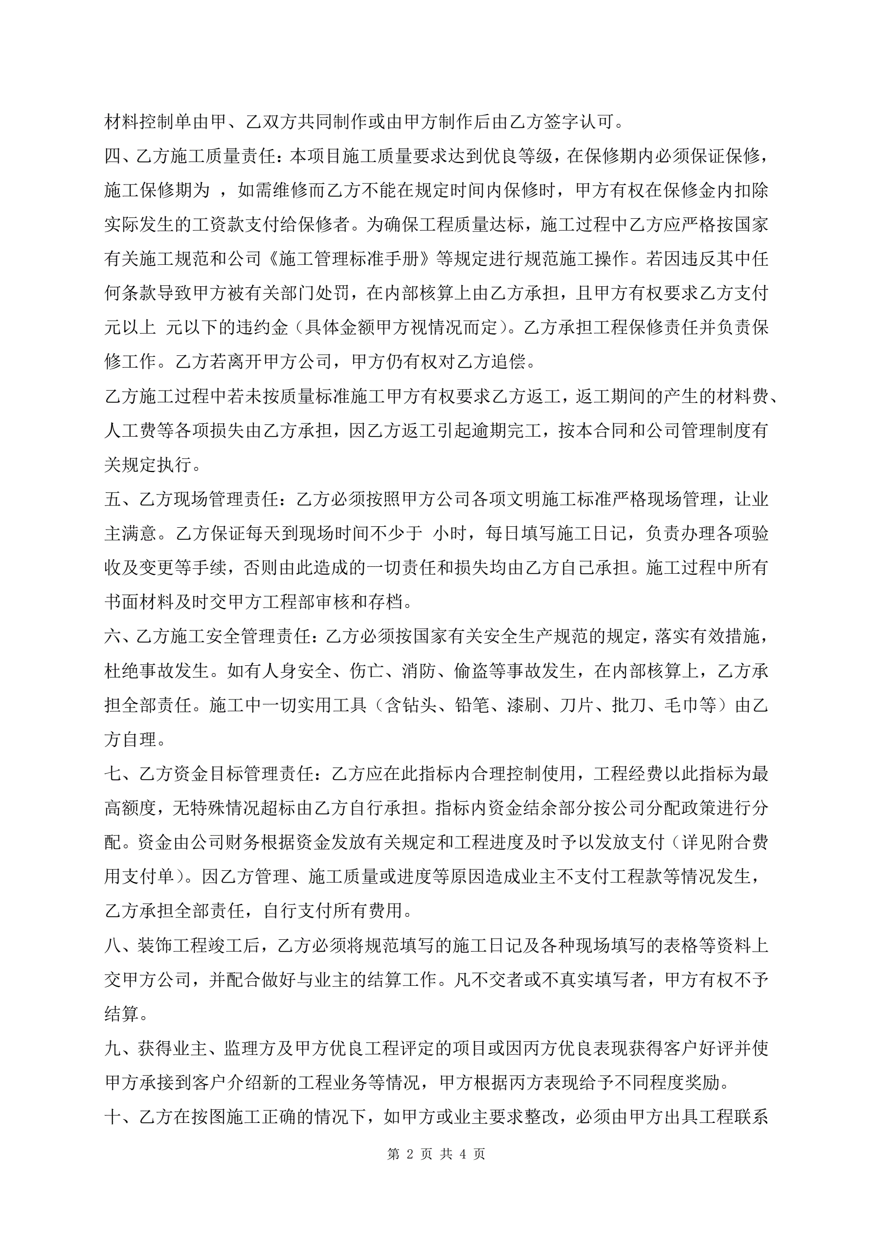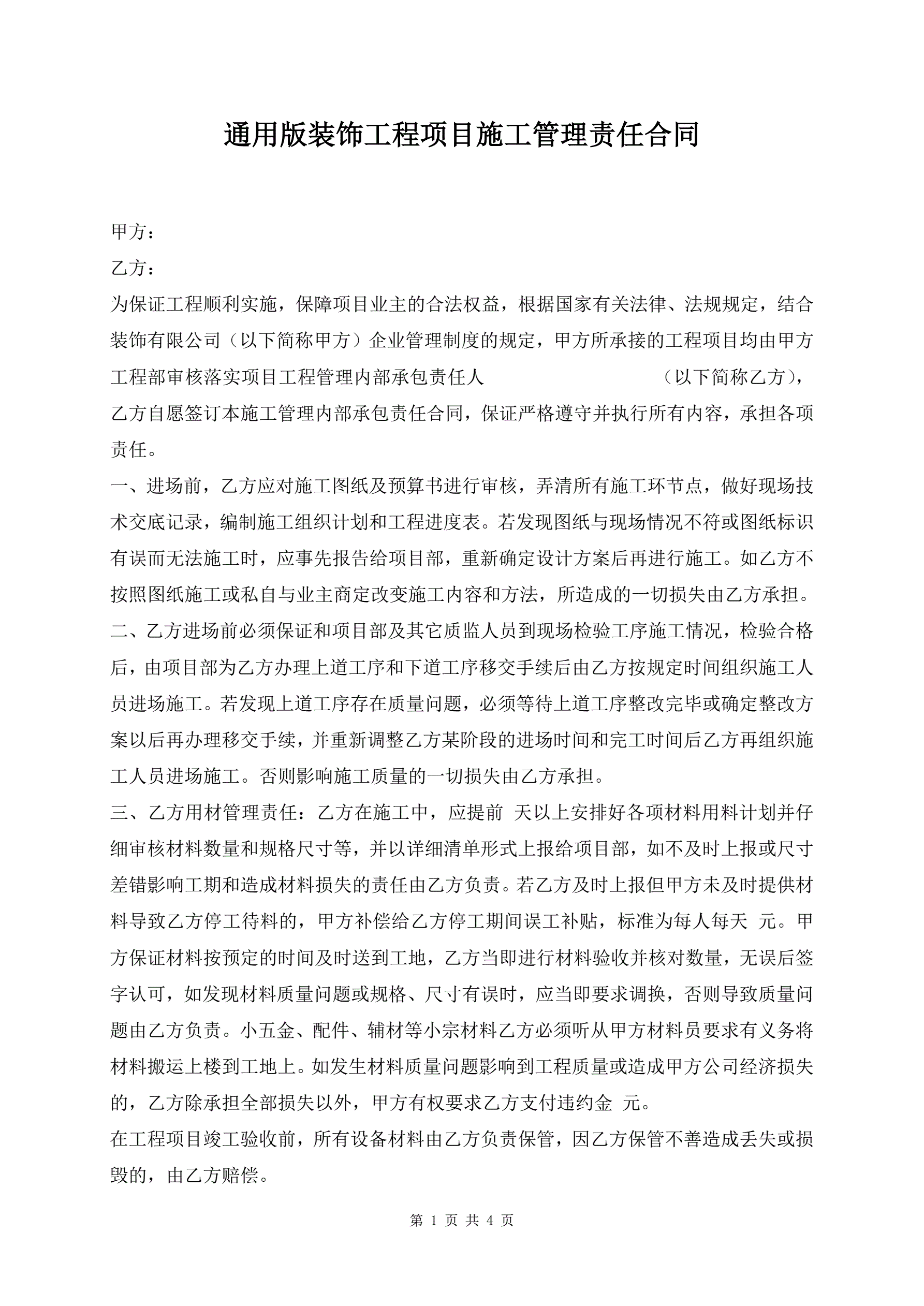 >通用版装饰工程项目施工管理责任合同