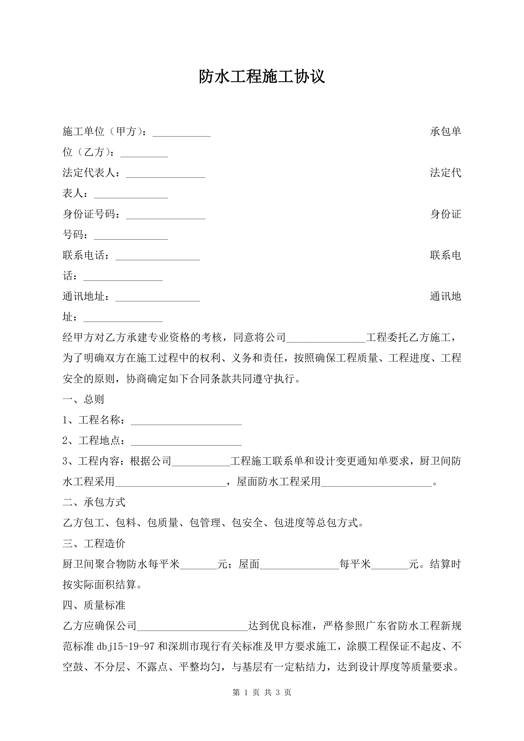 >防水工程施工协议