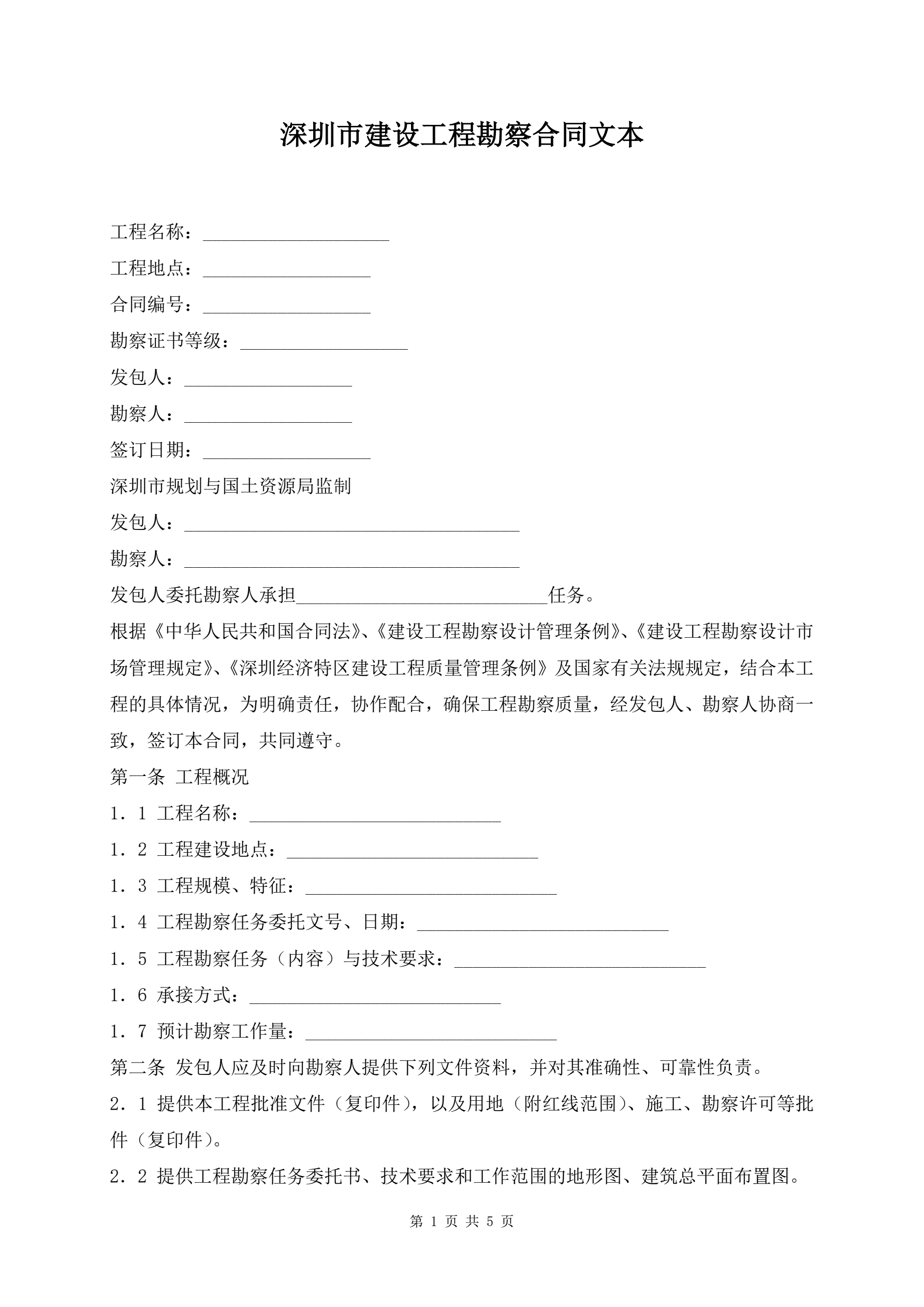 >深圳市建设工程勘察合同文本