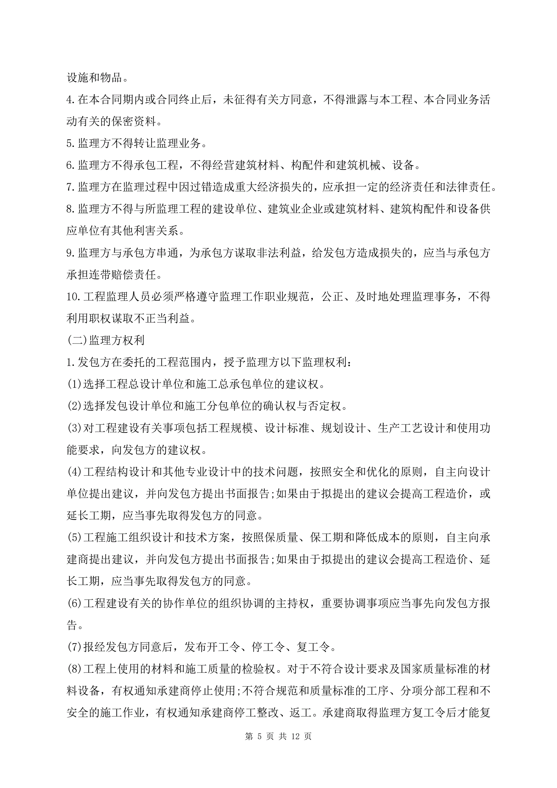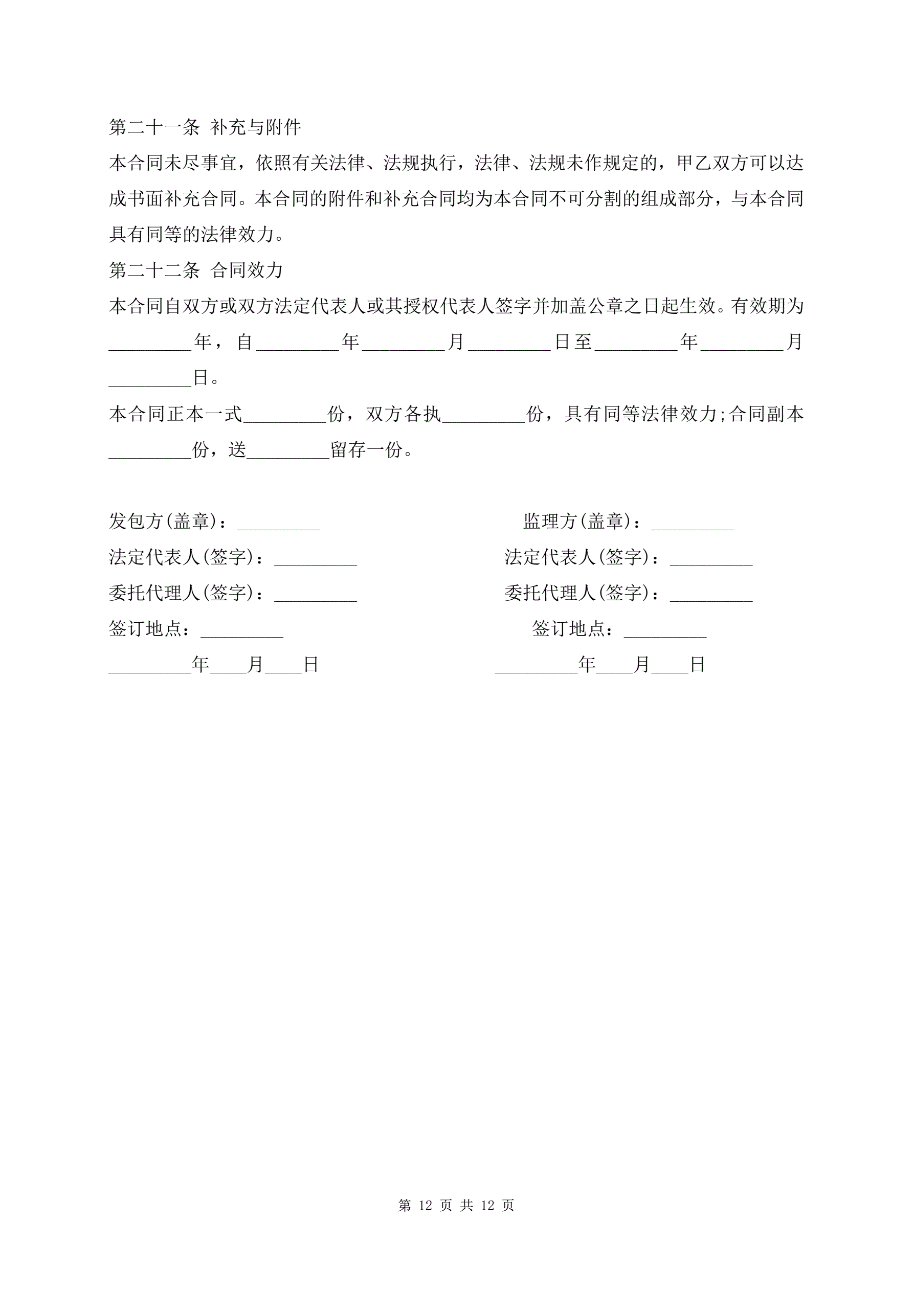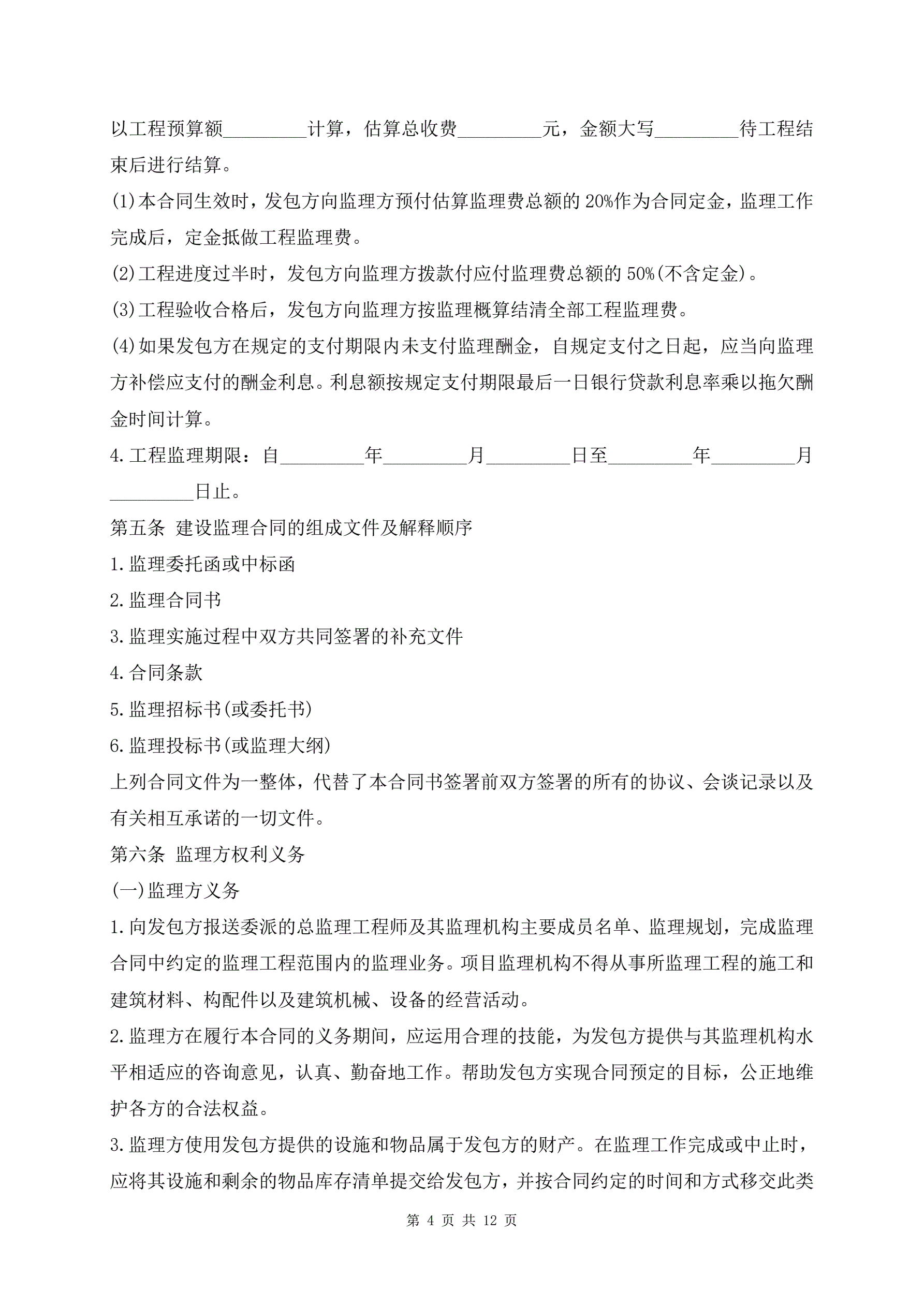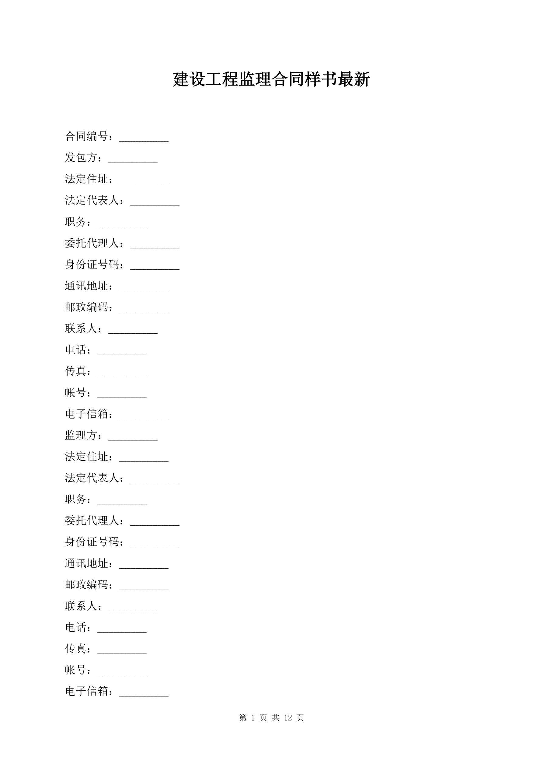 建设工程监理合同样书最新