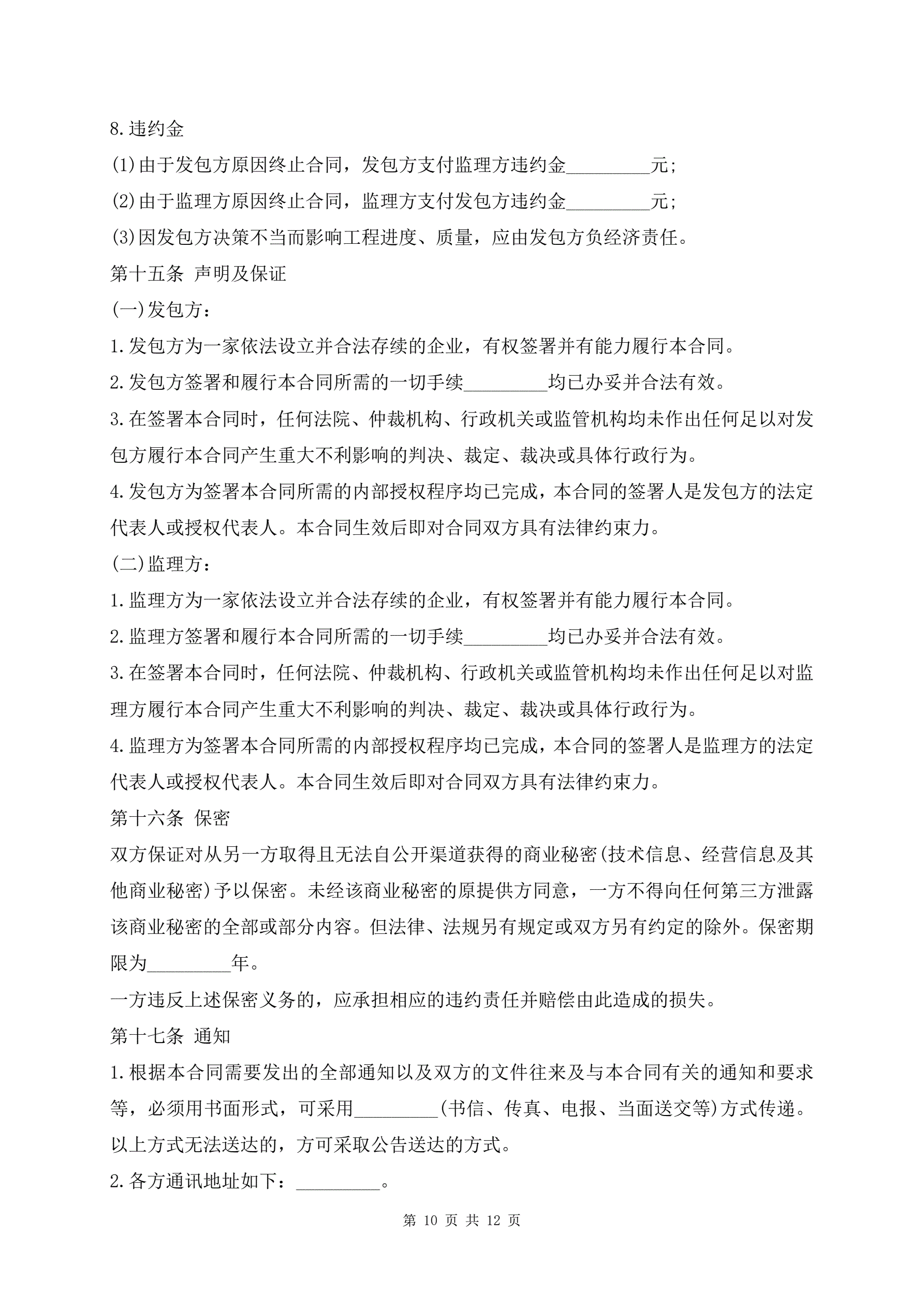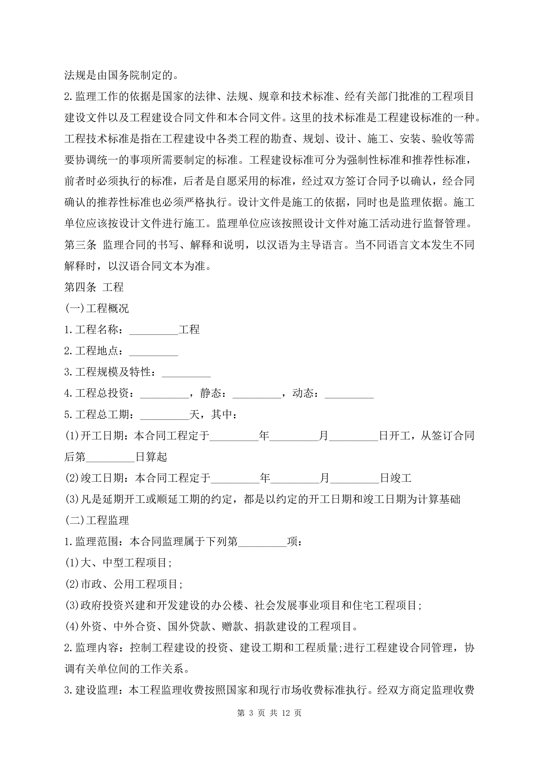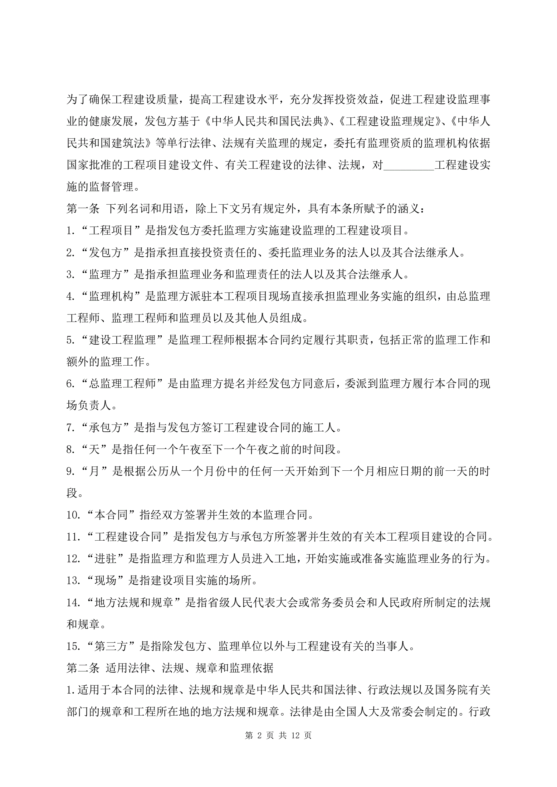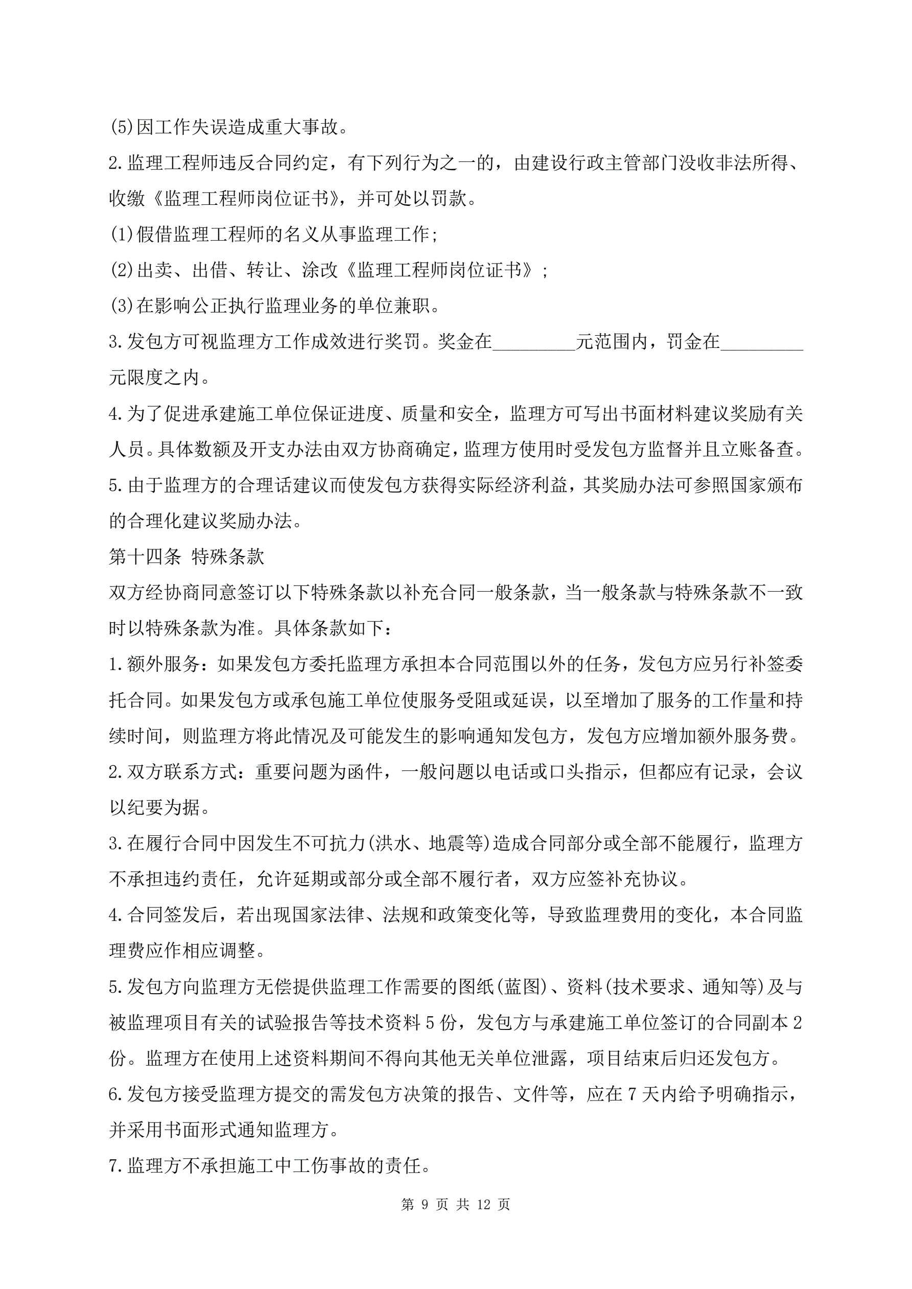 建设工程监理合同样书最新