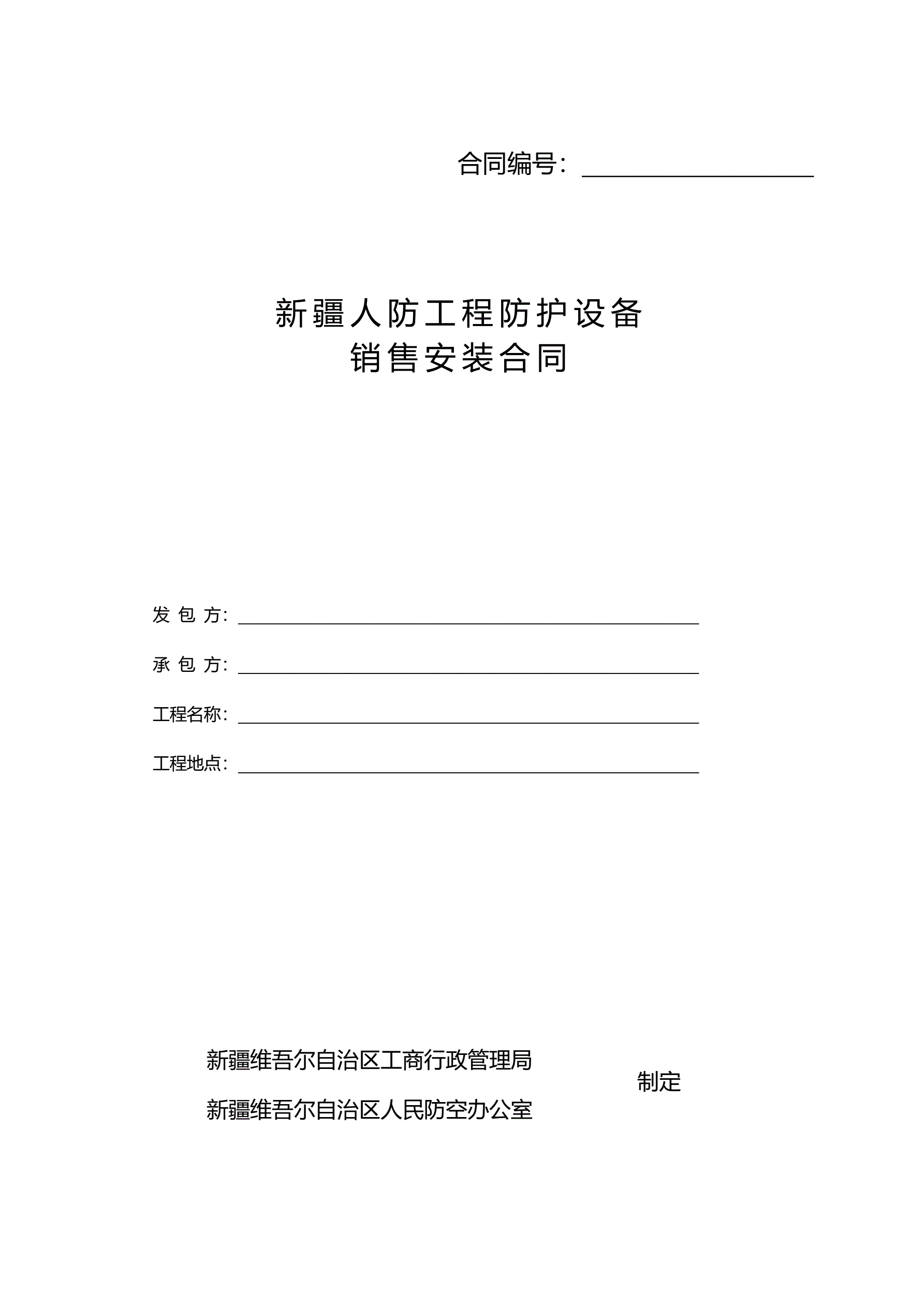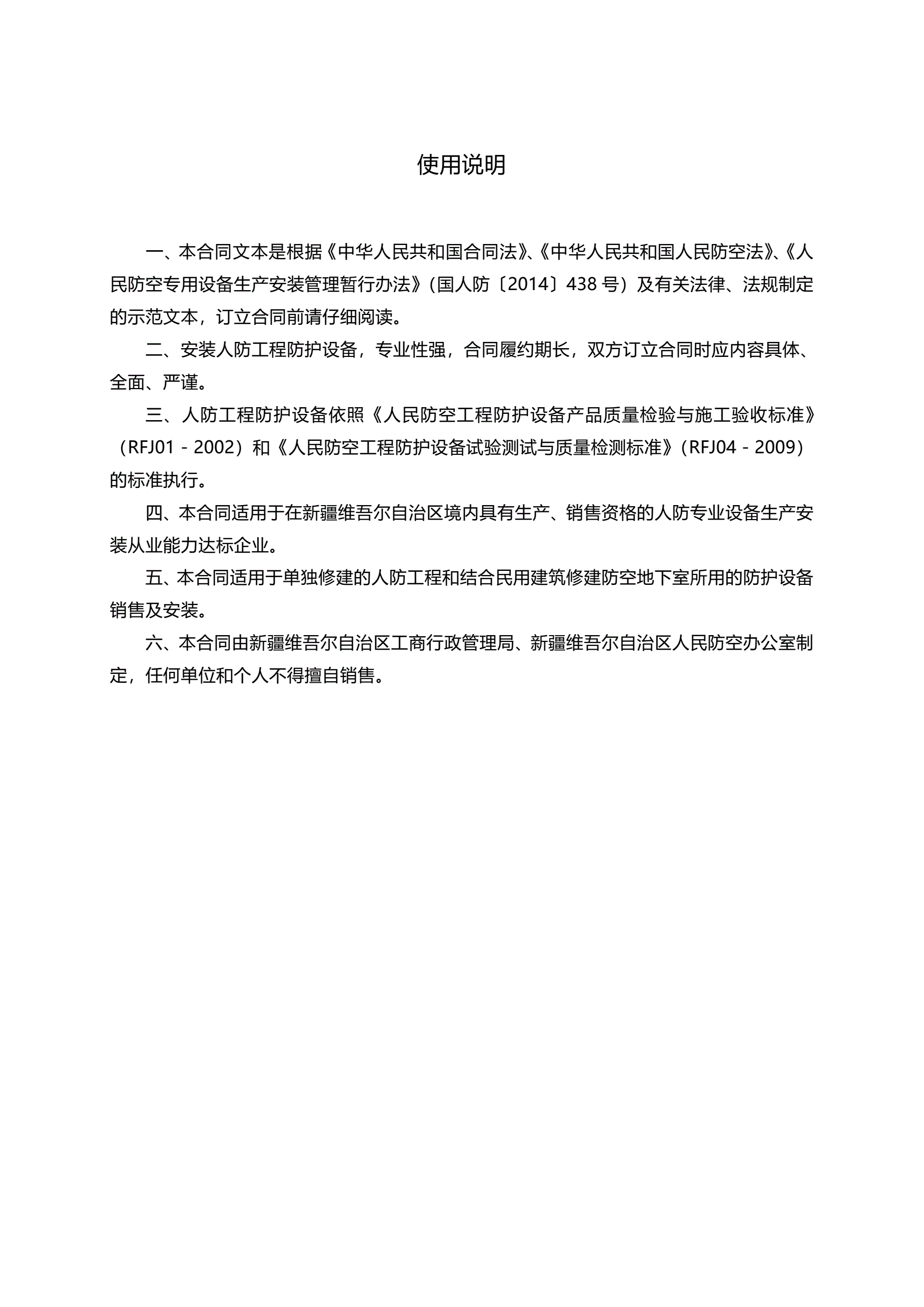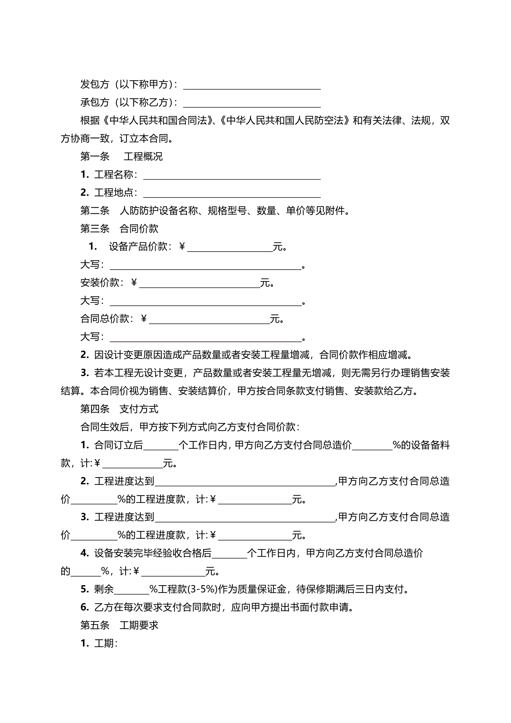 >新疆人防工程防护设备销售安装合同