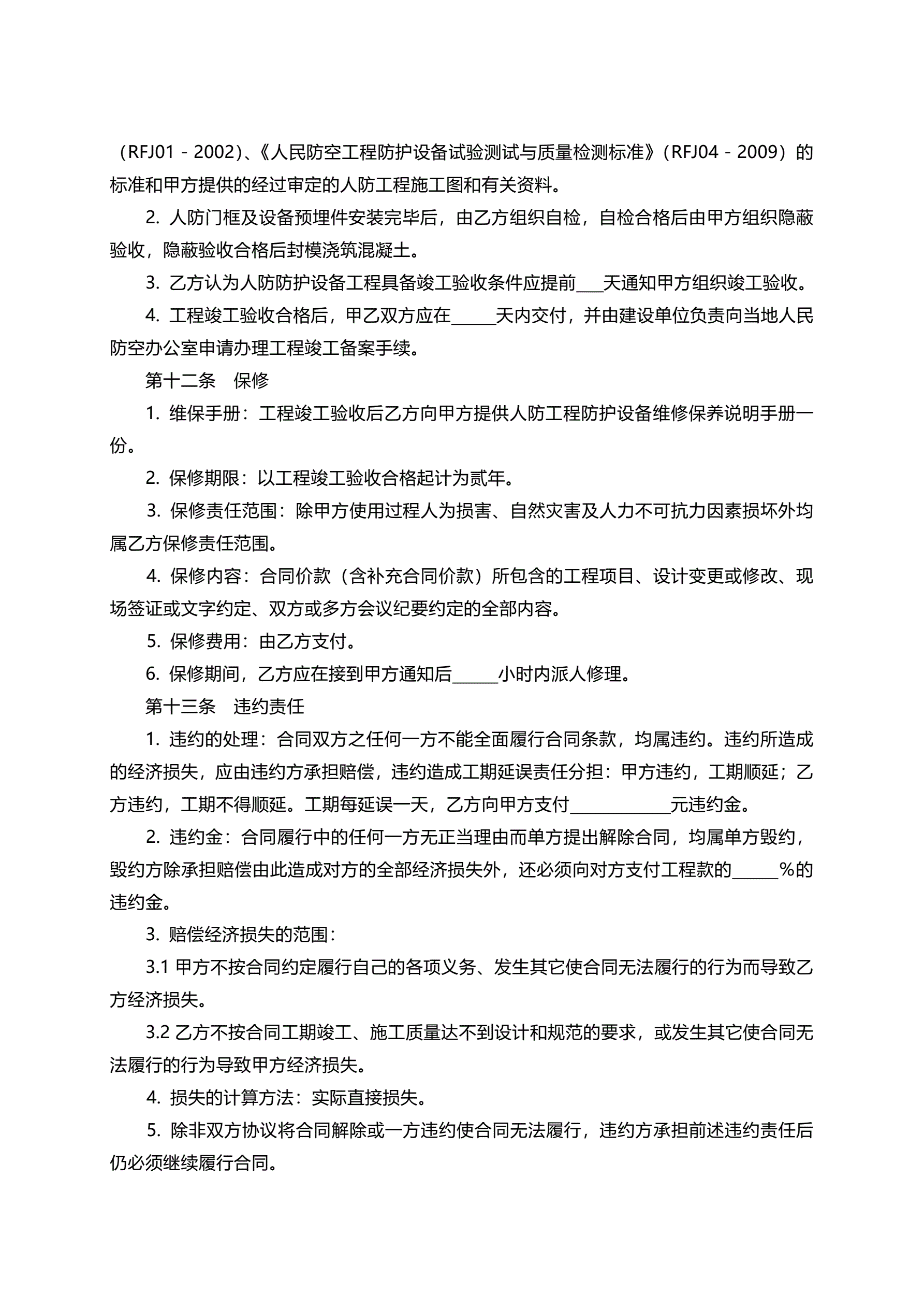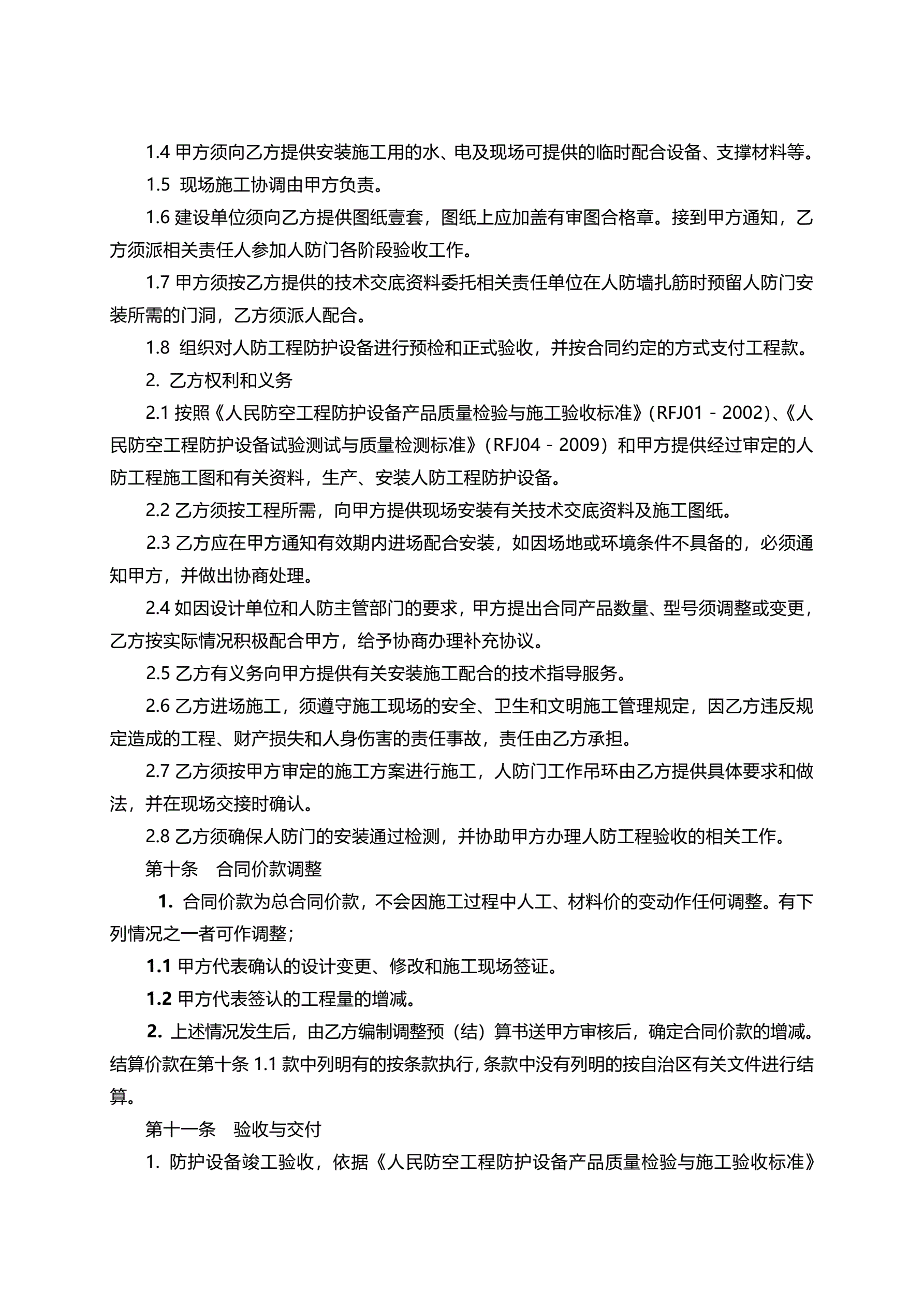 新疆人防工程防护设备销售安装合同