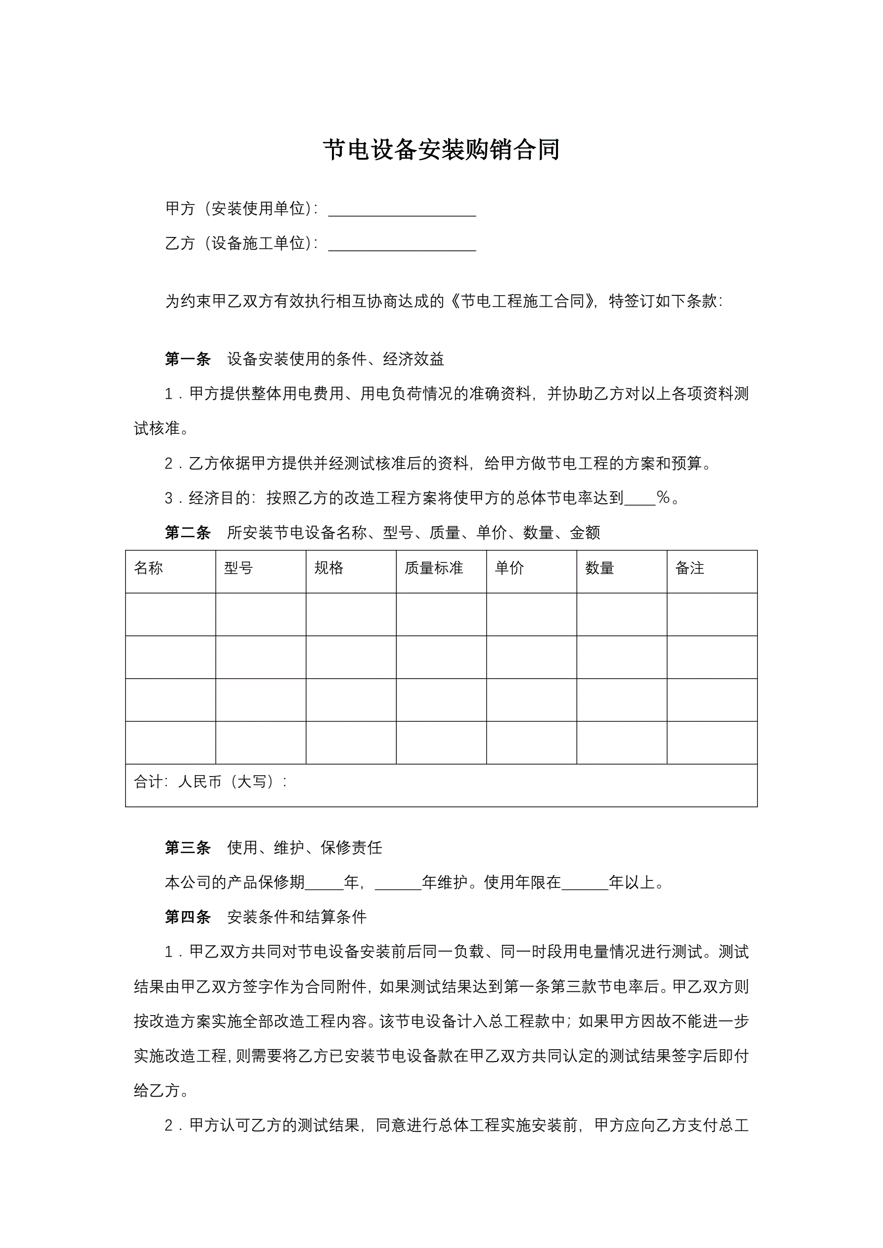 节电设备安装购销合同