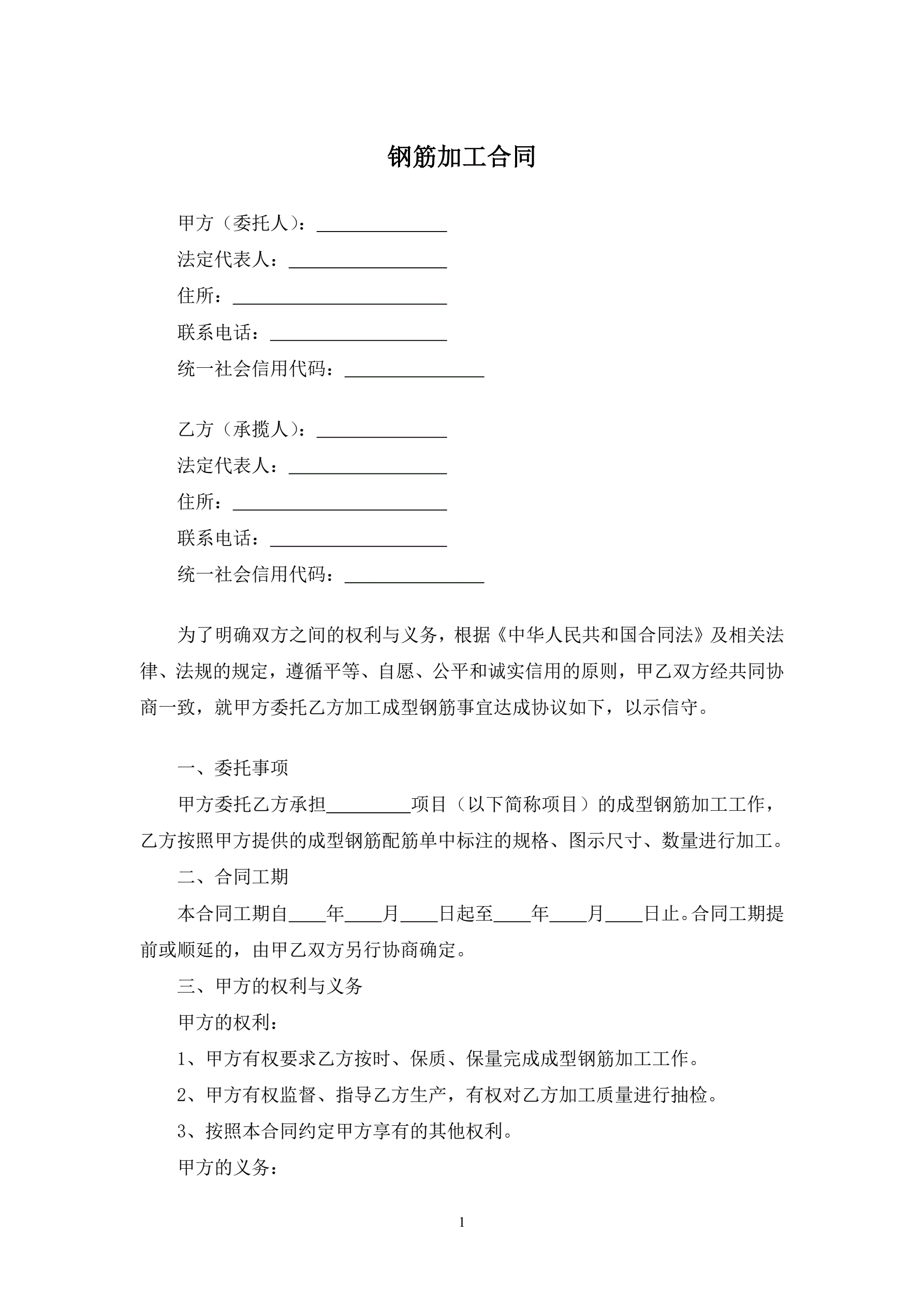 >钢筋加工合同
