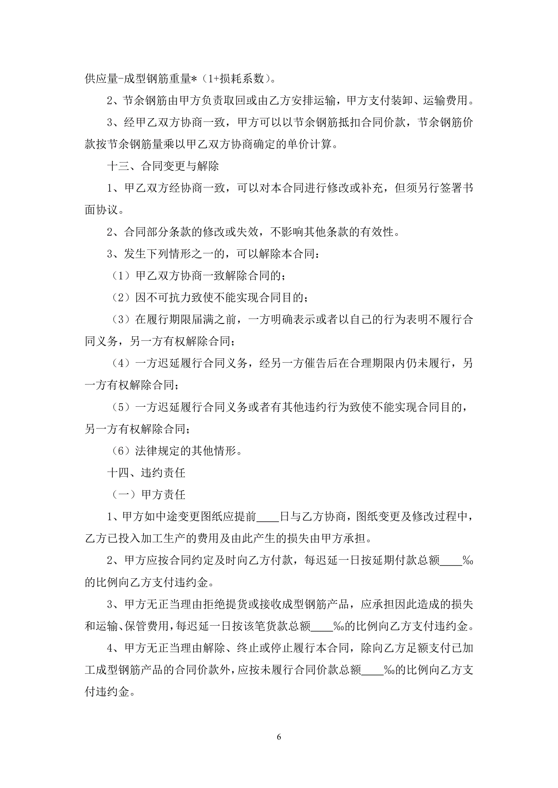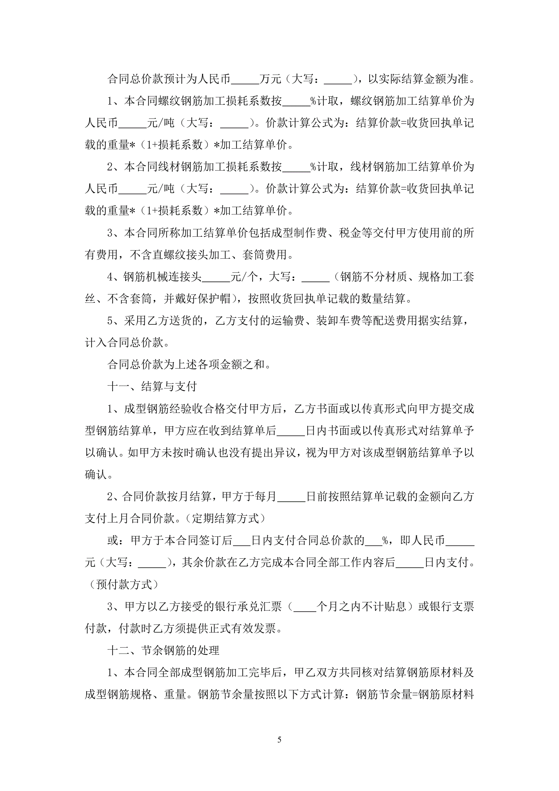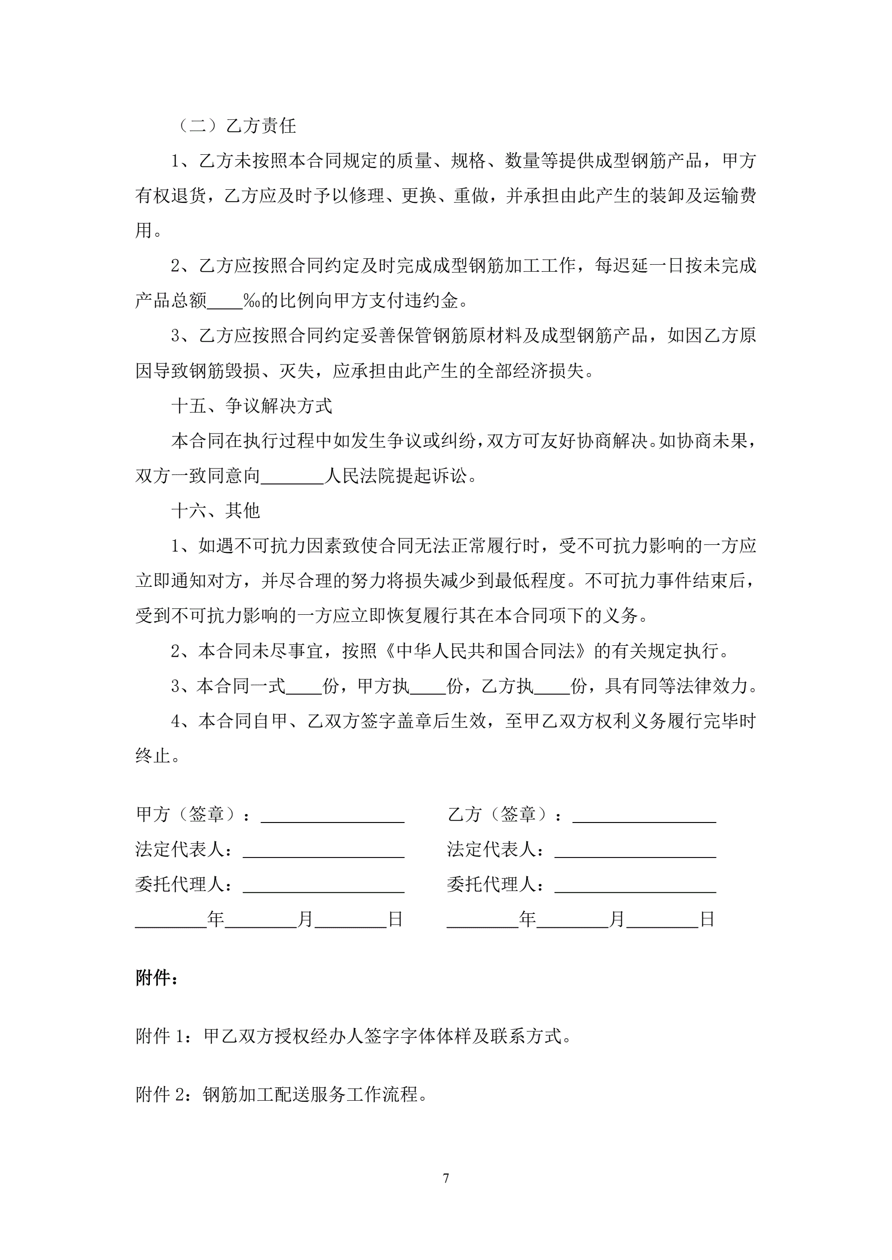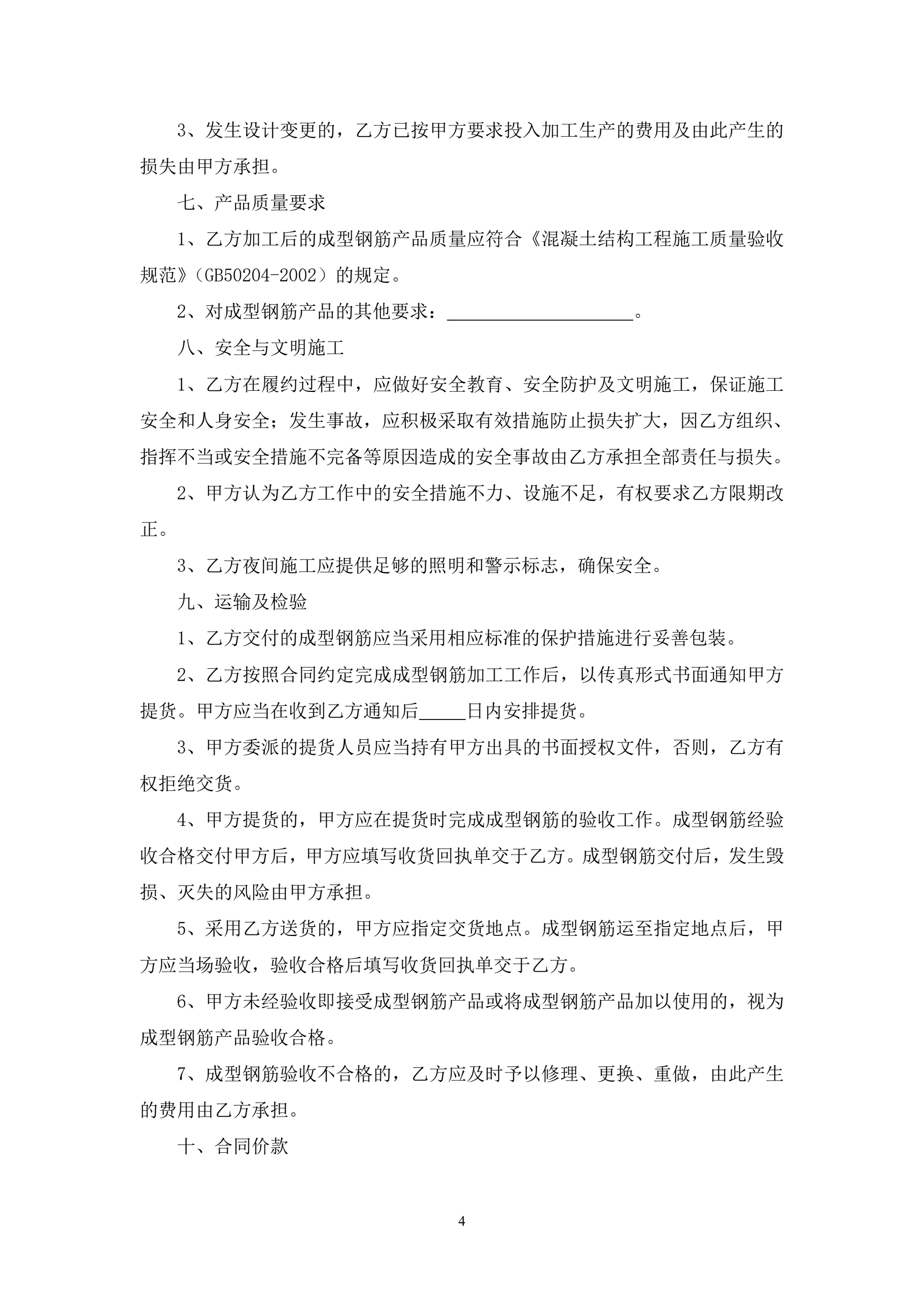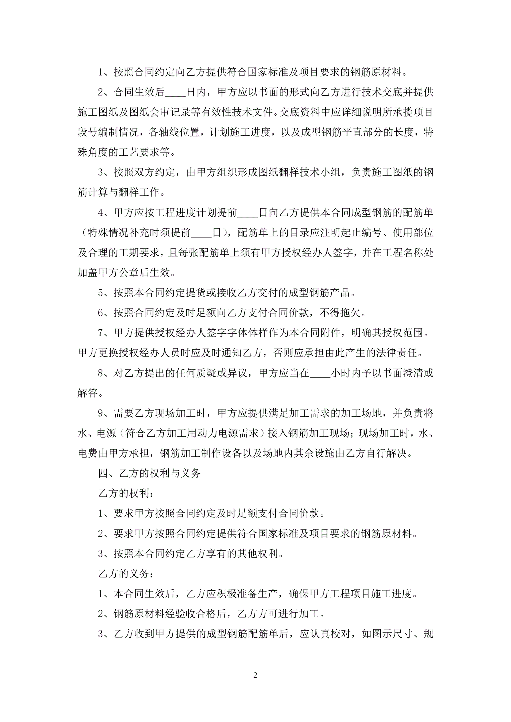 钢筋加工合同