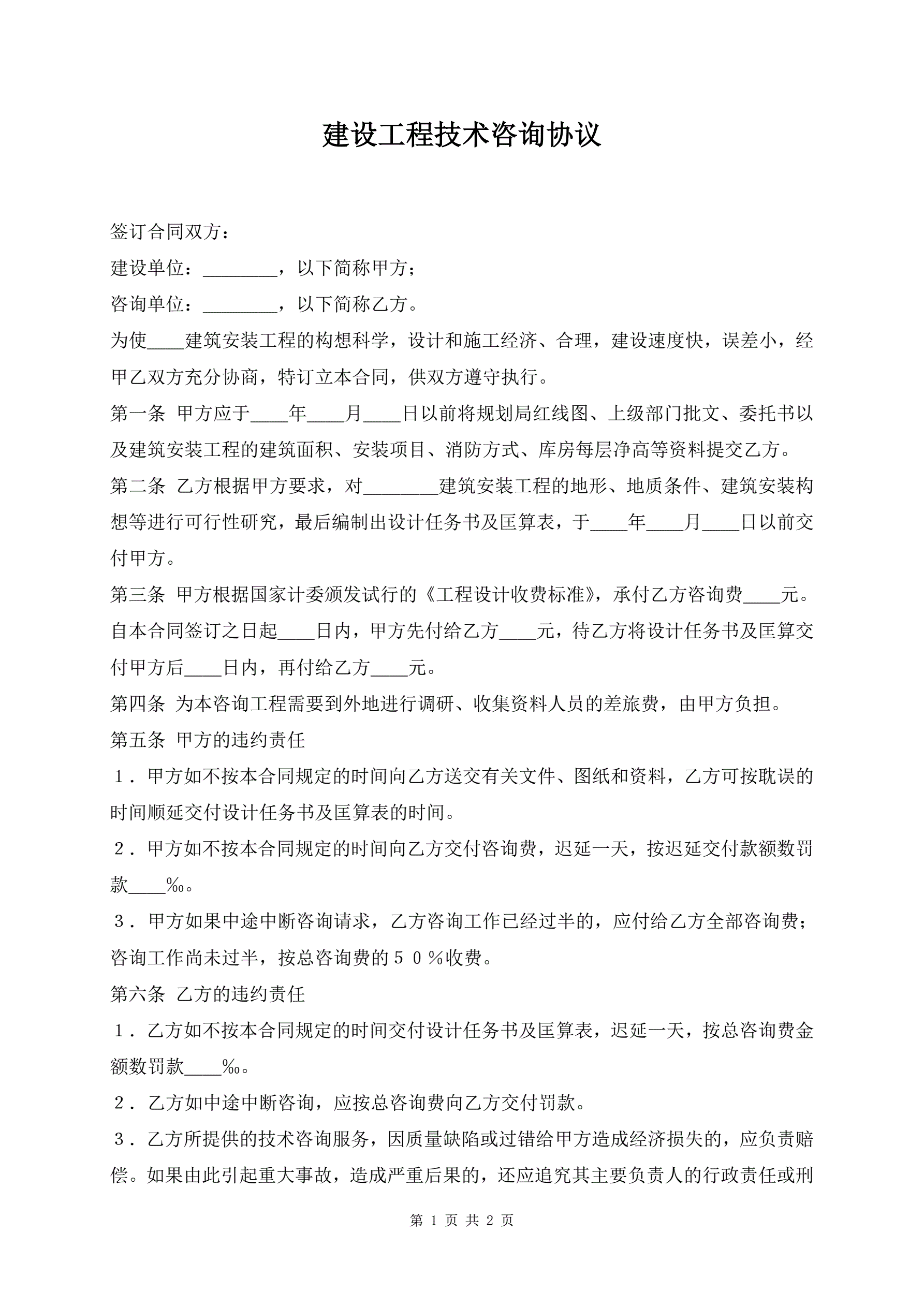 建设工程技术咨询协议