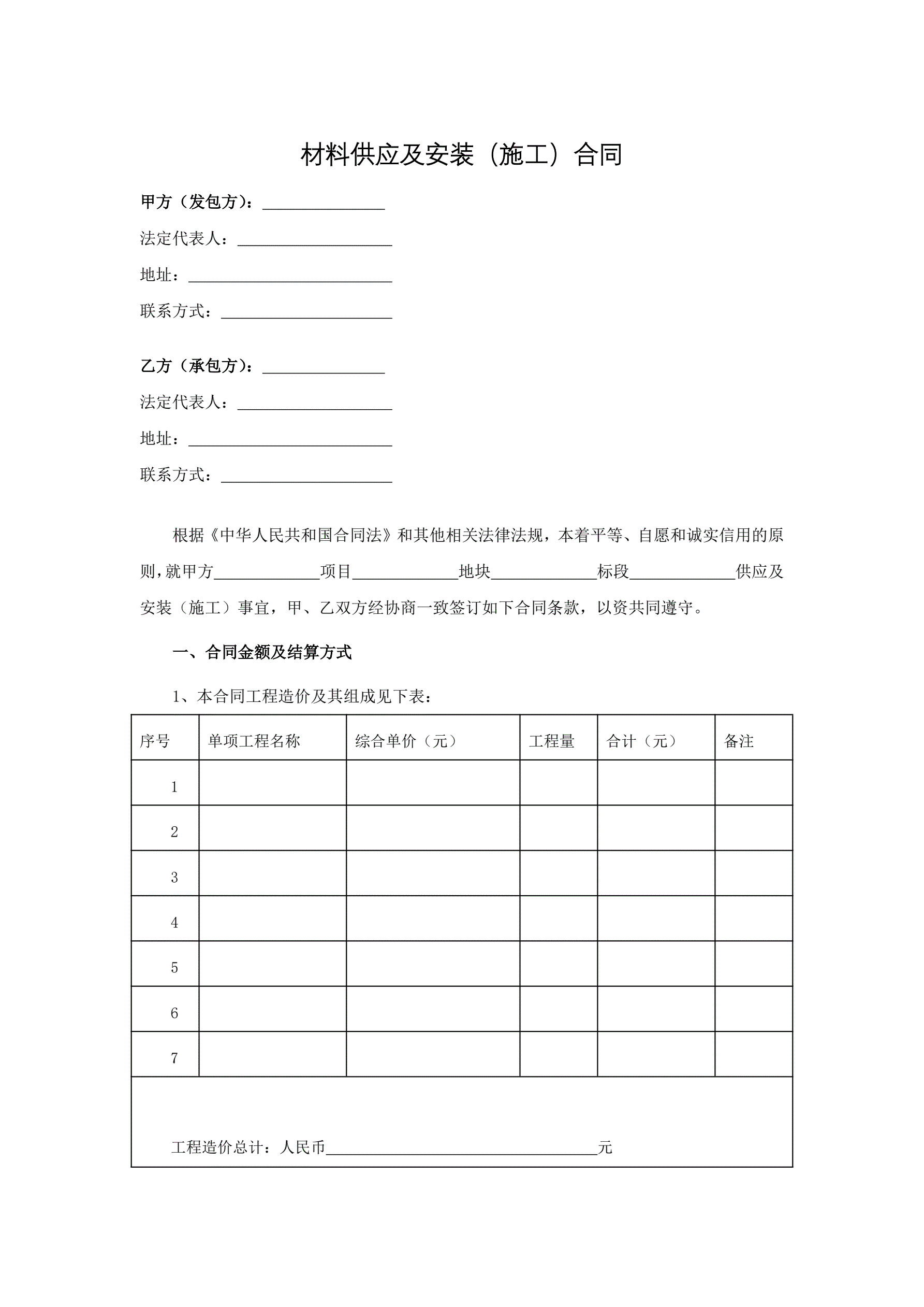 >材料供应及安装