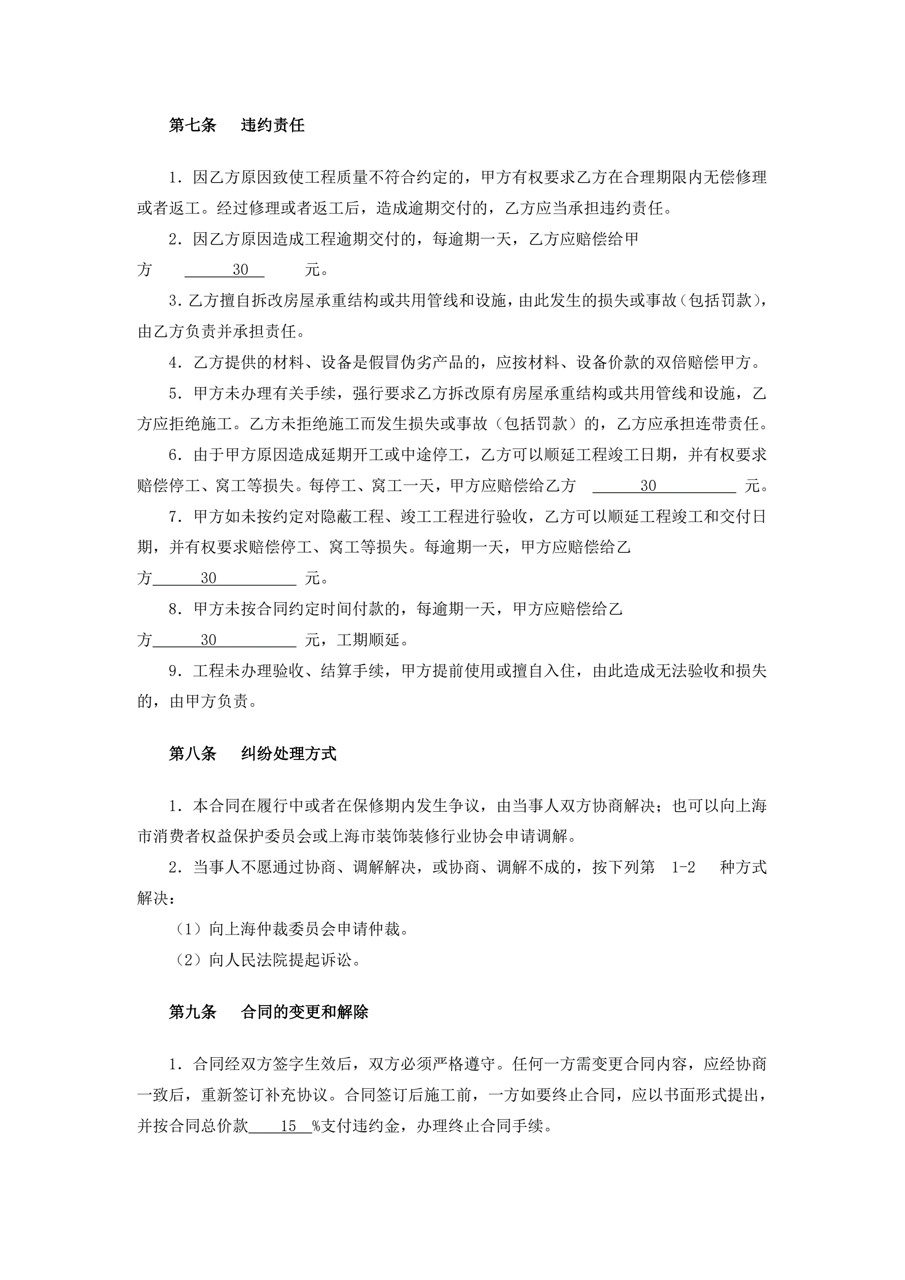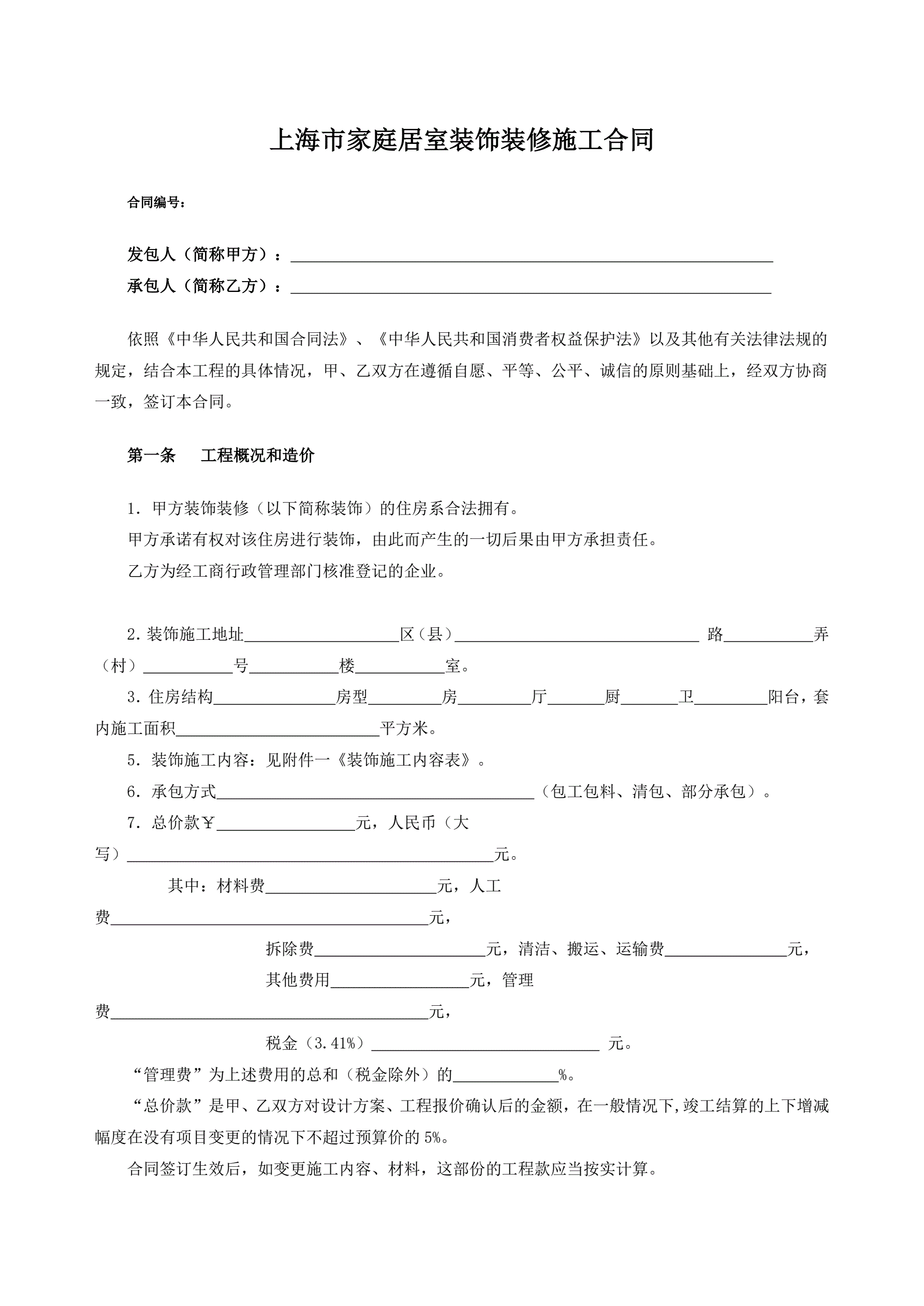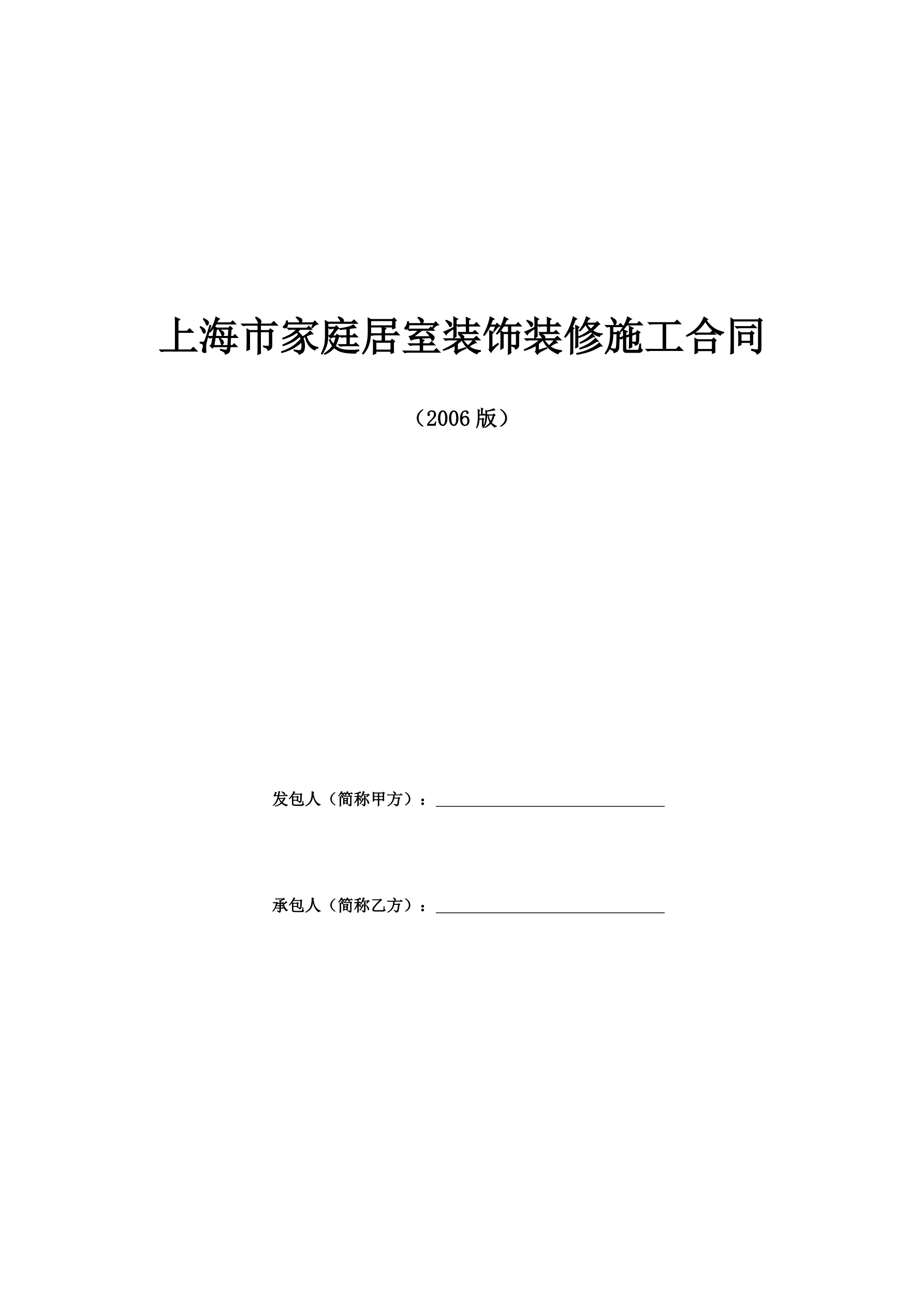 上海家居装饰装修施工合同示范文本