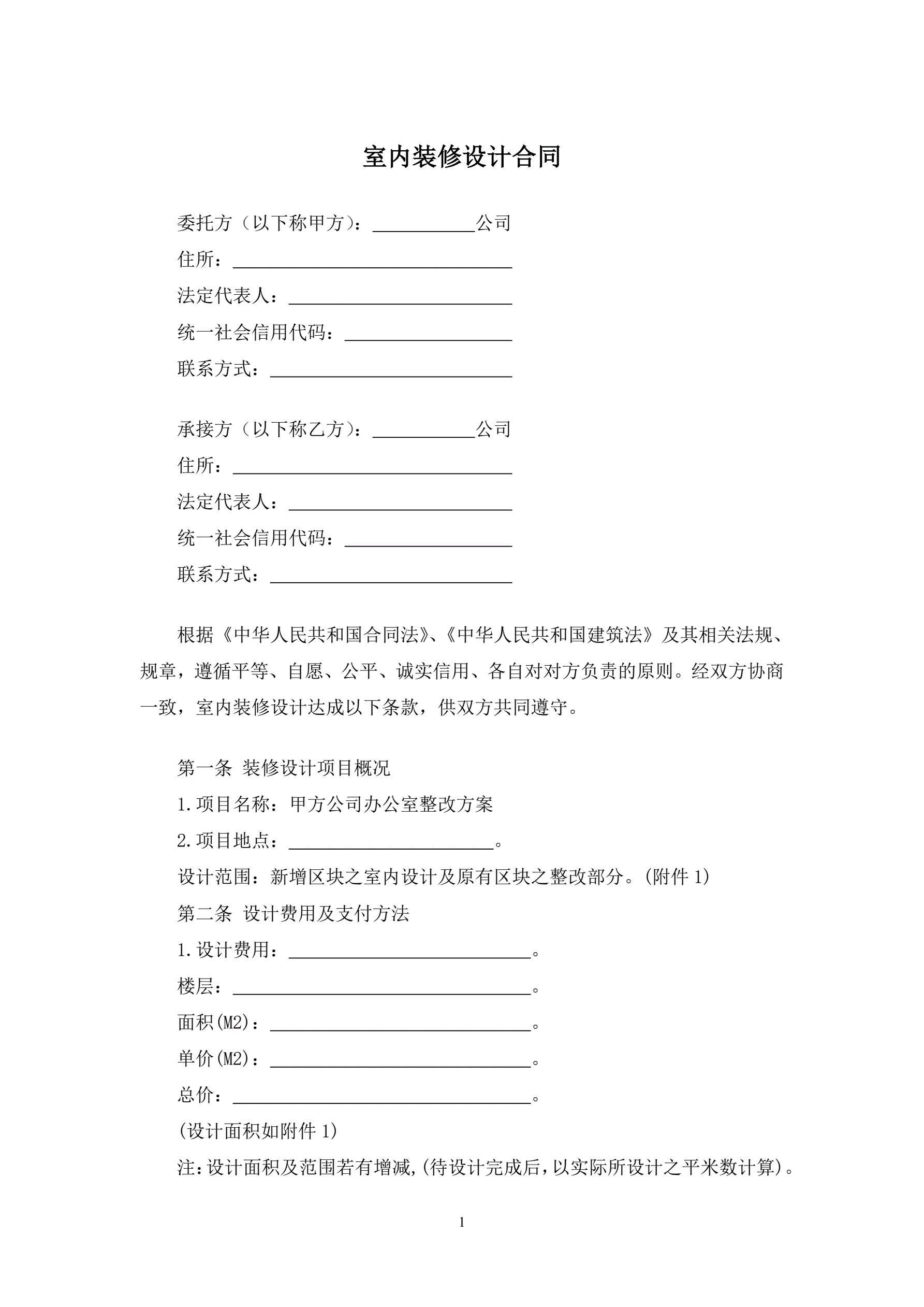 室内装修设计合同